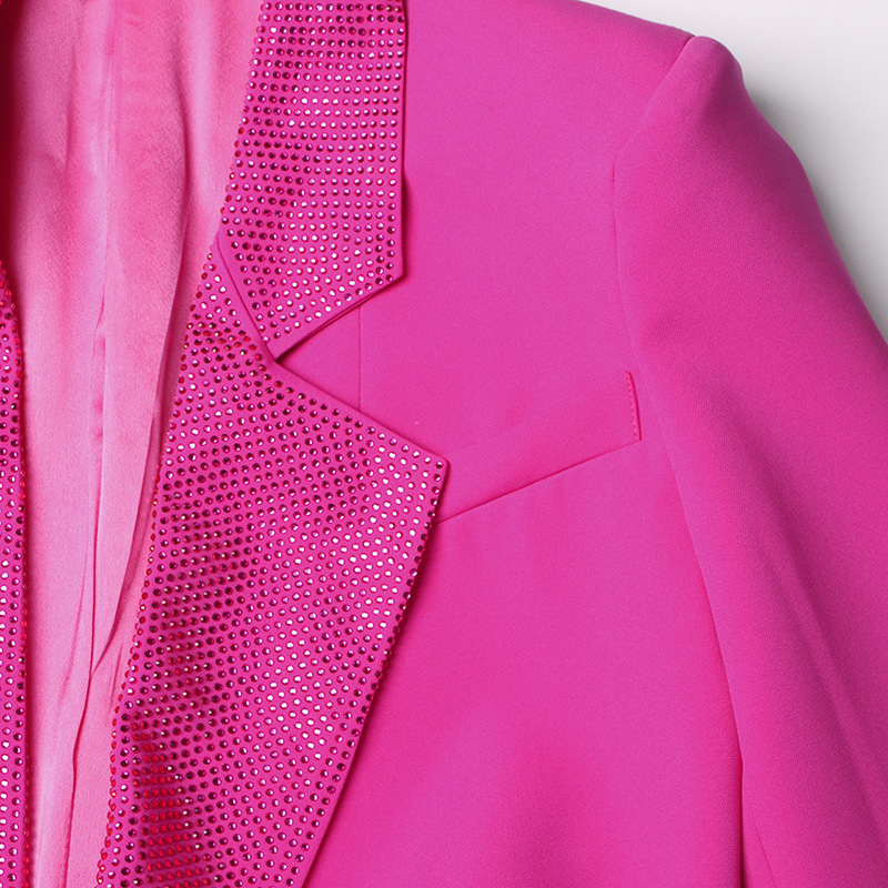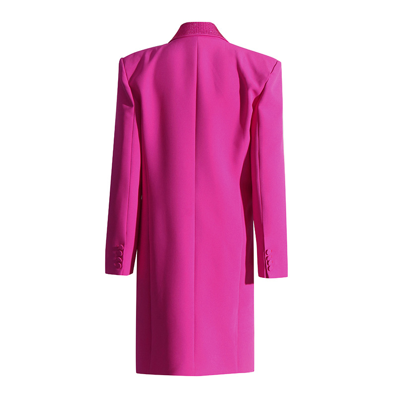 Office Autumn Patchwork Diamond Embedded Loose Long Sleeve Long Blazer for Women