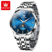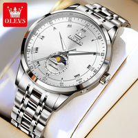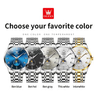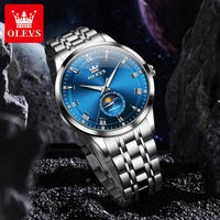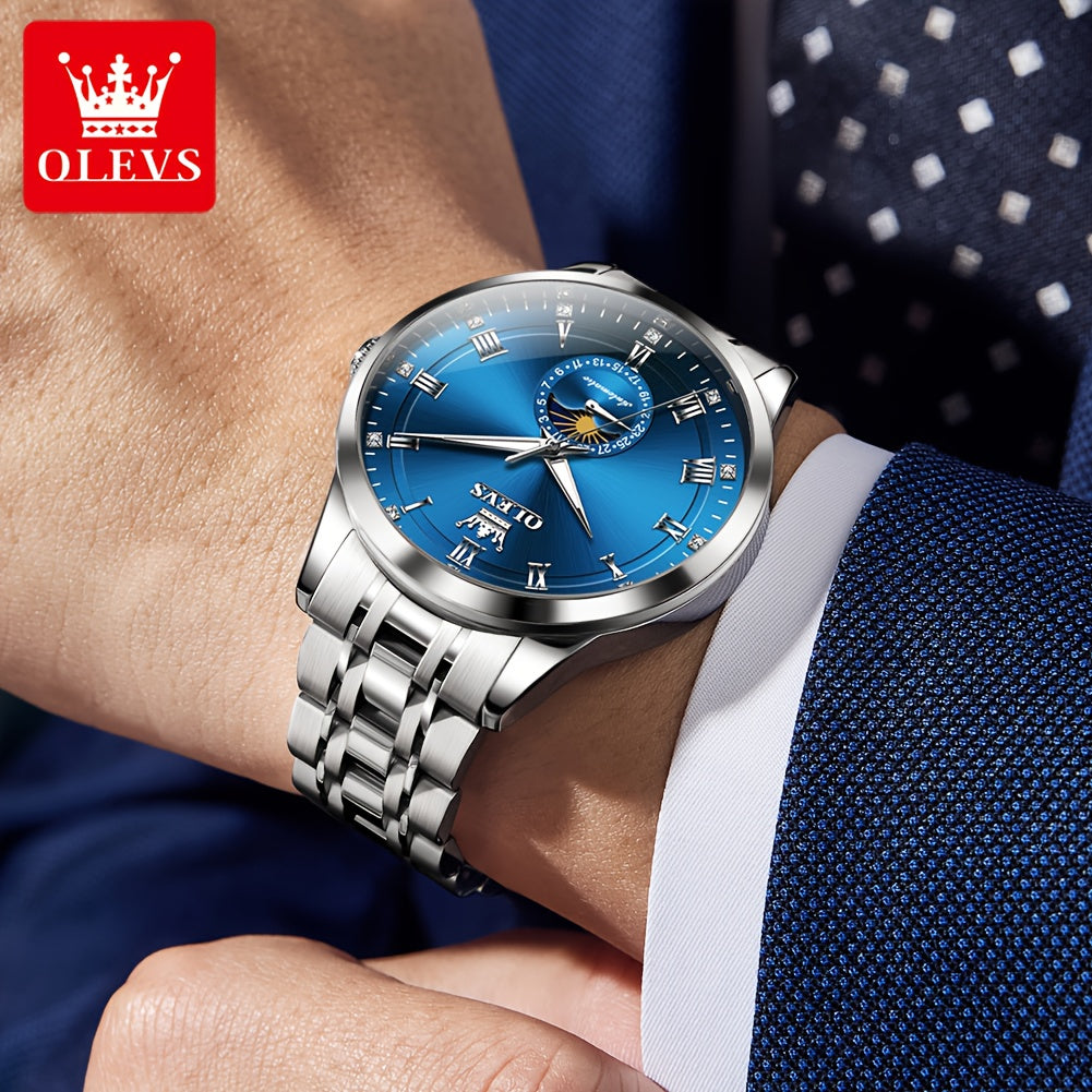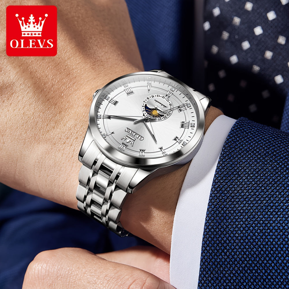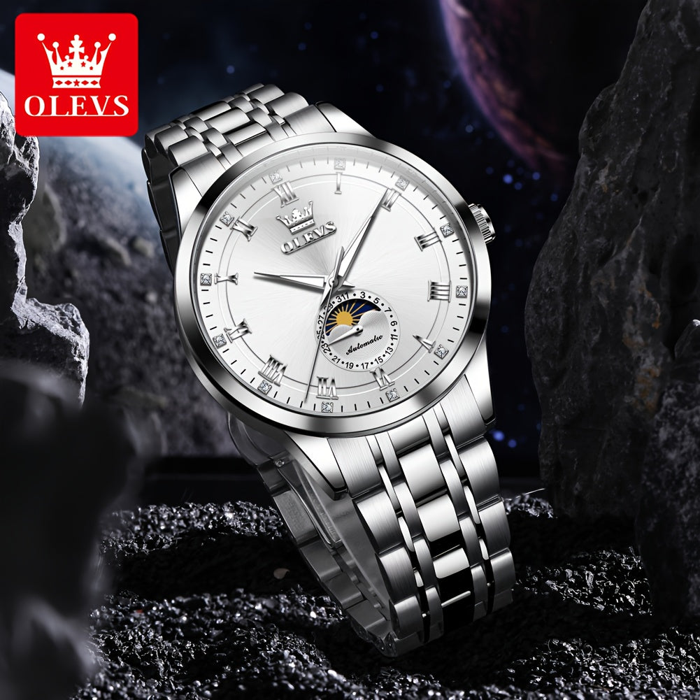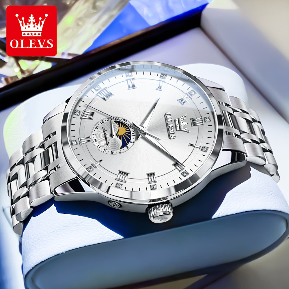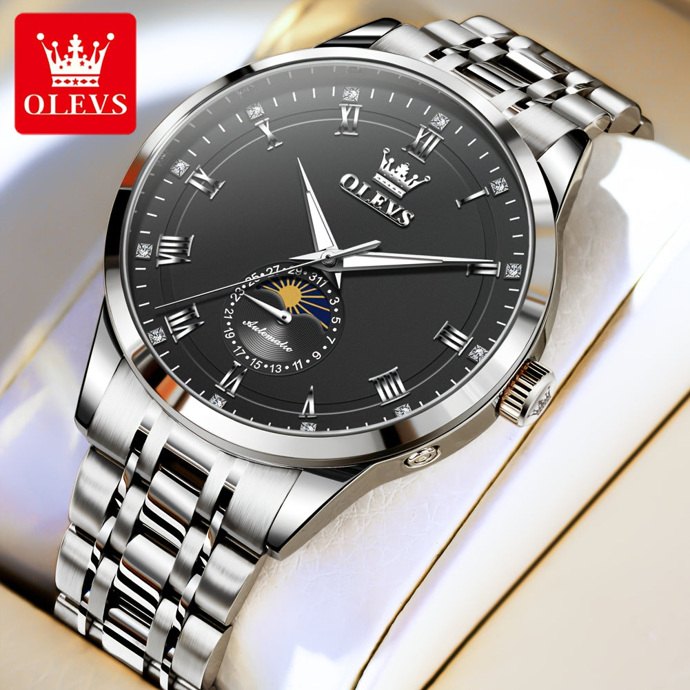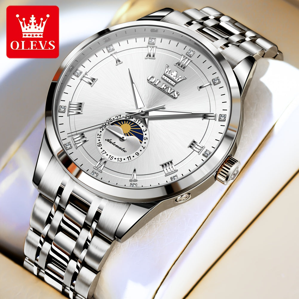 OLEVS Brand Moon Phase Stainless Steel Automatic Mechanical Watches for Men Best Selling Original Fashion Trend Luxury Business Men's Wrist Watches, Mechanical Watches for Men High Quality, Formal Timepiece, Office Accessory, Sophisticated Dial, Modern Cl