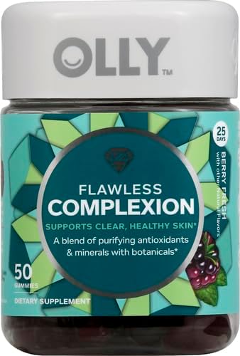 OLLY Flawless Complexion Gummy, Clear and Healthy Skin Support, Vitamins E, A, Zinc, Chewable Supplement, Berry - 50 Count (Pack of 1)