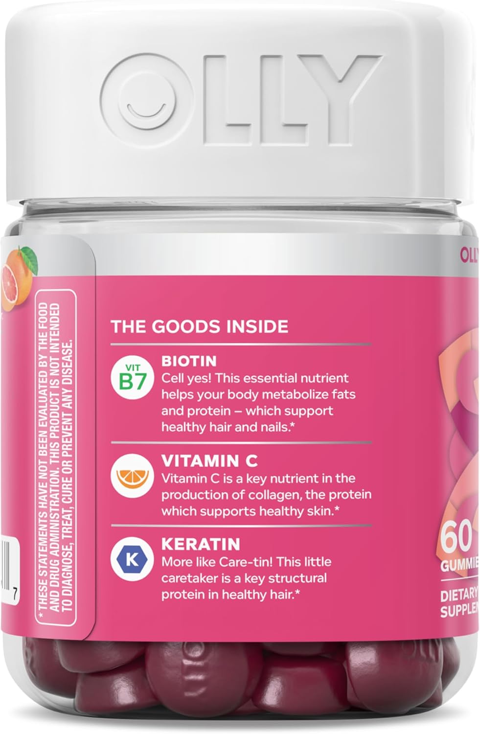 OLLY Undeniable Beauty Gummy, For Hair, Skin, Nails, Biotin, Vitamin C, Keratin, Chewable Supplement, Grapefruit, 30 Day Supply - 60 Count