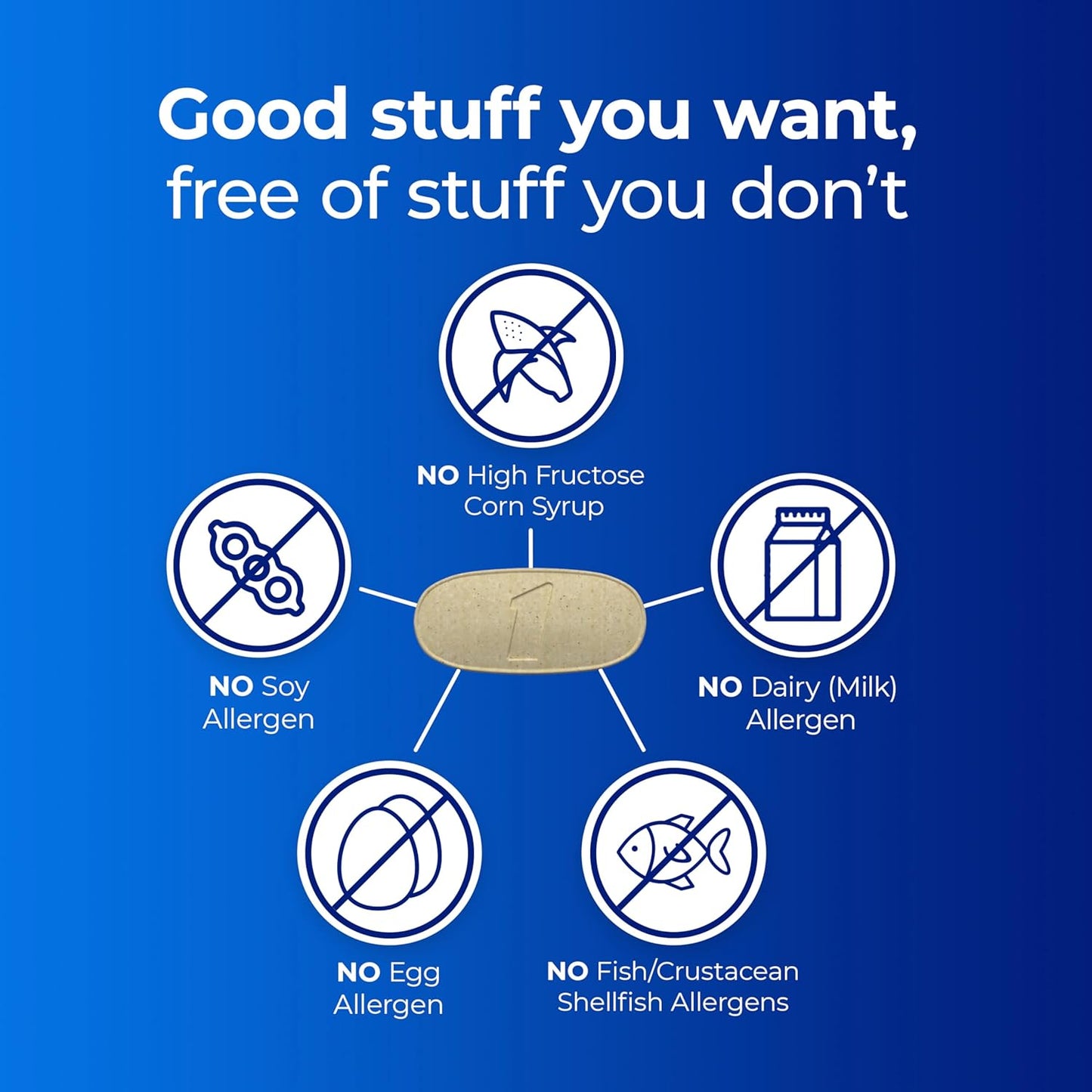One a day Men's Health Formula Multivitamins are free of gluten, wheat, dairy, artificial colors, and artificial sweeteners