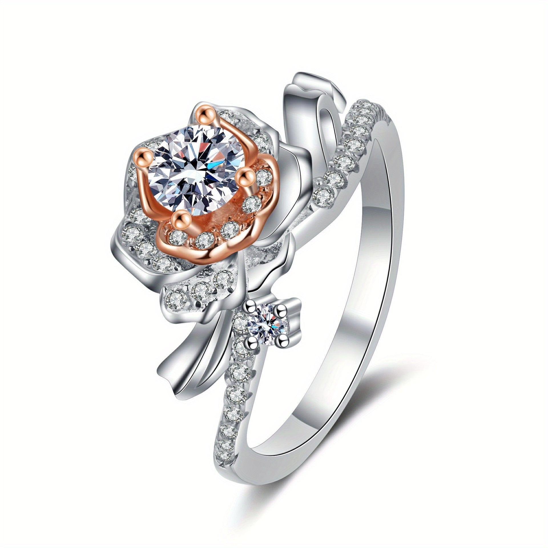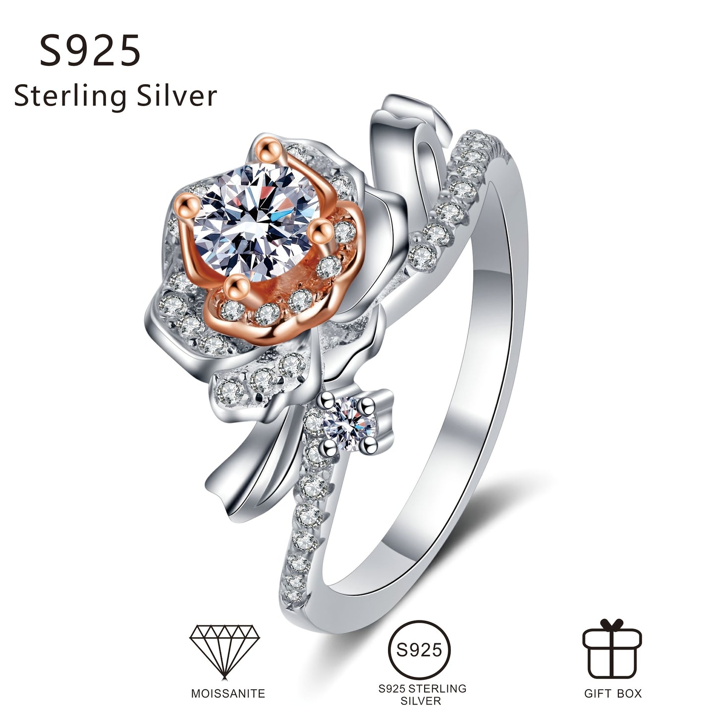 One Piece Dropshipping 925 Sterling Silver Ring for Women Rose Flower Rose Golden Two-Tone Platinum Plated 0.5 Carat Moissanite Ring