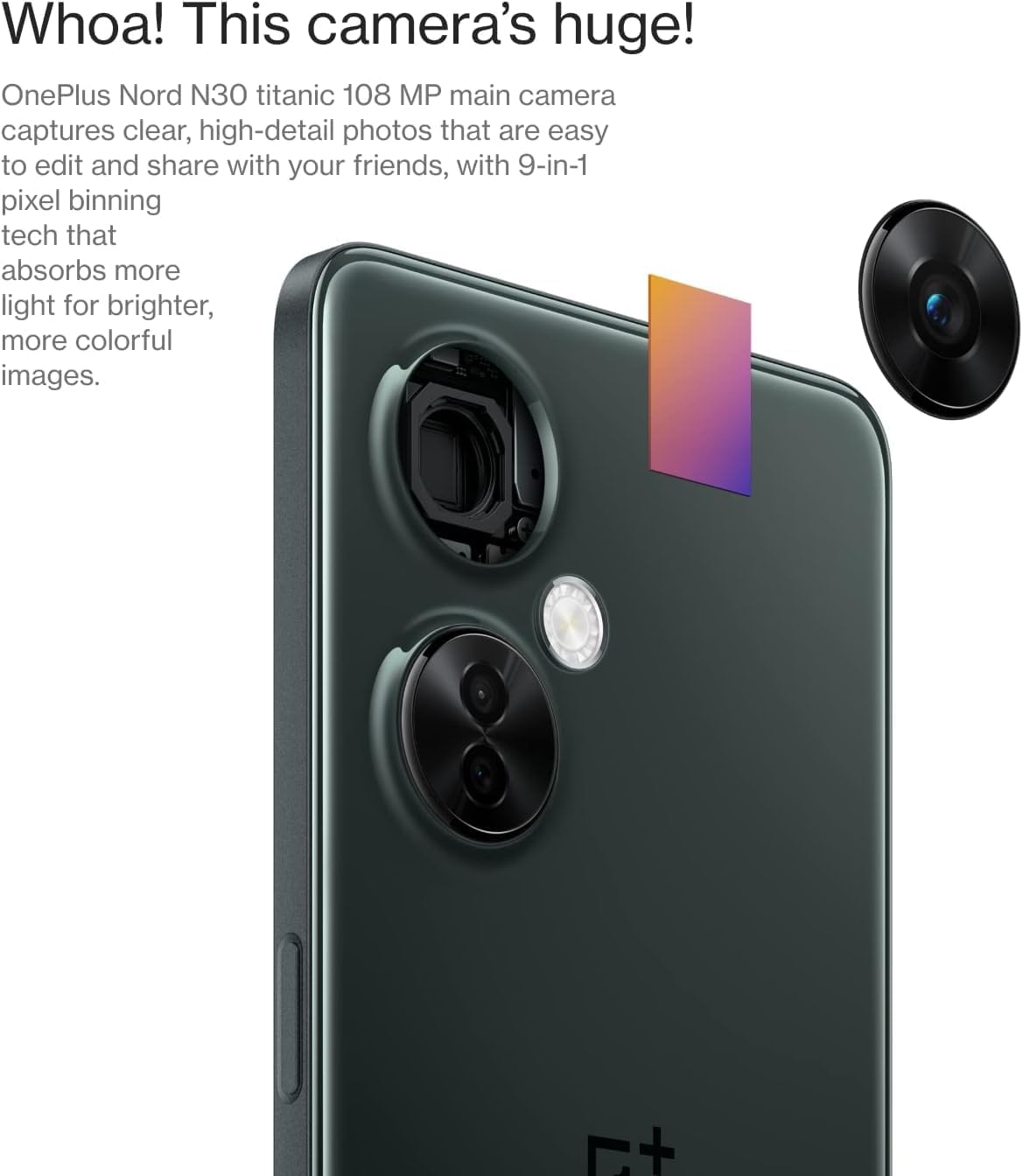 OnePlus Nord N30 5G Dual SIM (128GB, 8GB) 6.72" 120Hz LCD, 108MP Camera, Snapdragon, 3.5mm Jack (US Model Fully Unlocked for T-Mobile, AT&T, Verizon, Global 4G LTE) (w/ 50W Charger & 256GB SD, Gray)