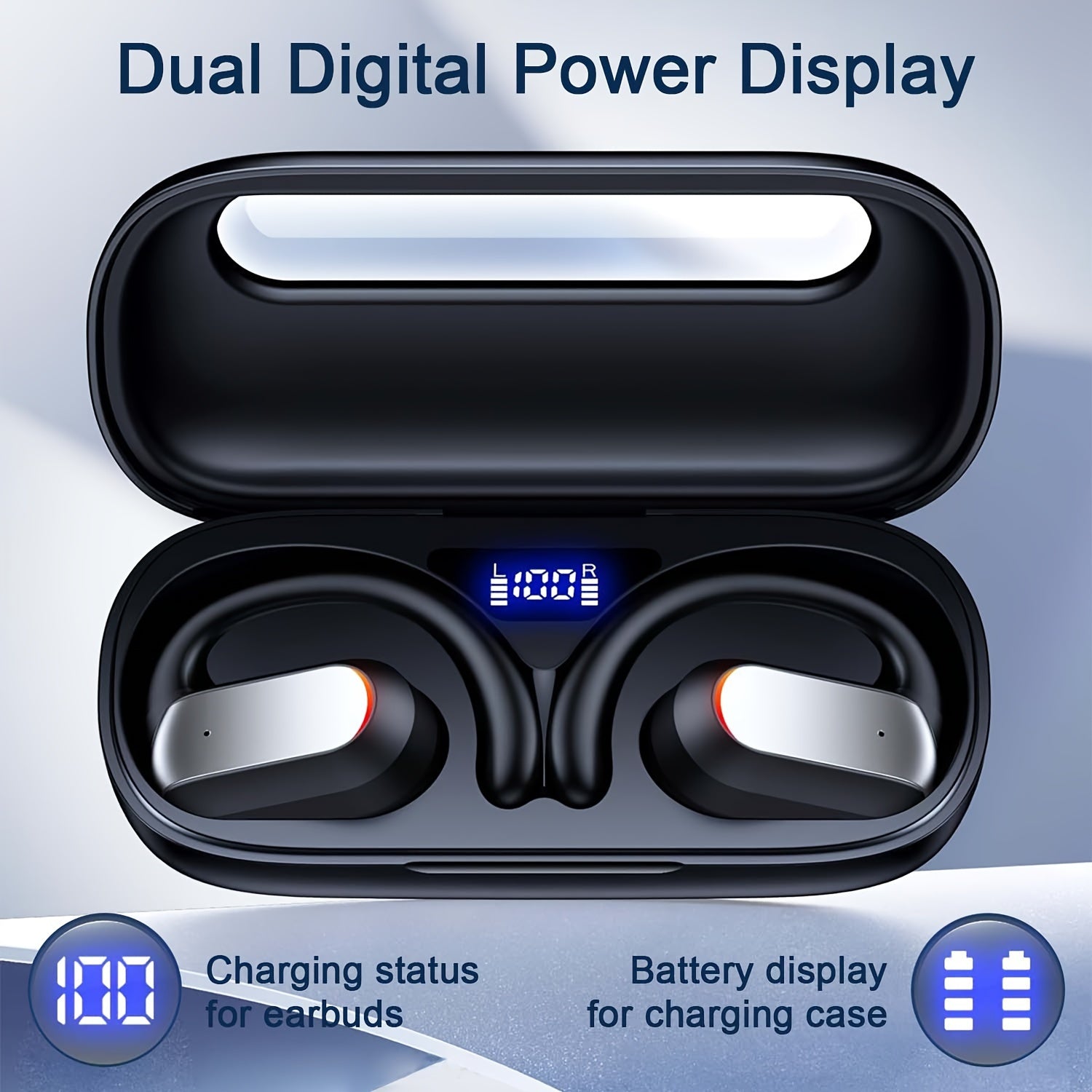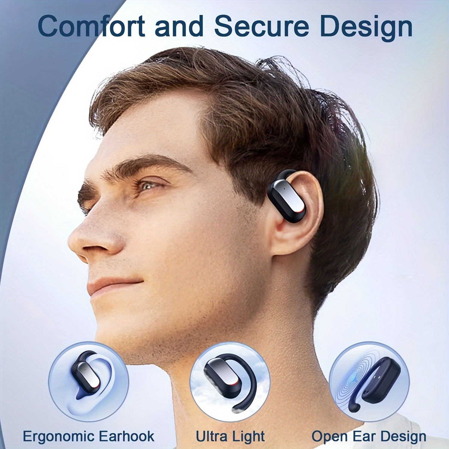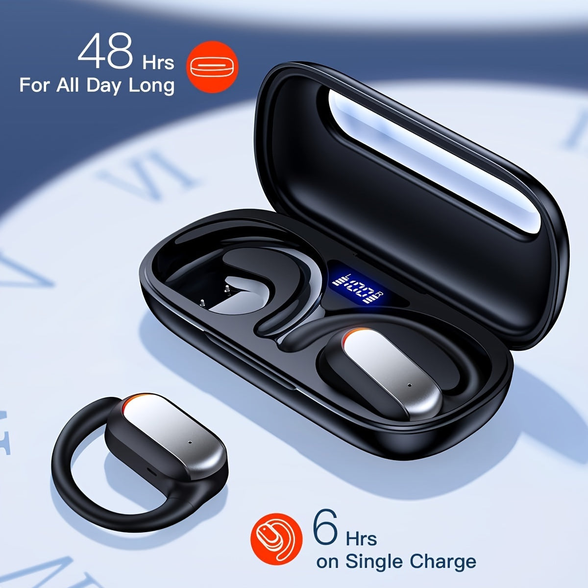 Open-ear Headphones Wireless Headphones 48 Hours Of Playback Time Wireless 5.4 Earbuds With Earhook Stereo Headphones With 16 Mm Speakers Air-conductive Touch Control Headphones For Fitness Running Sports Black