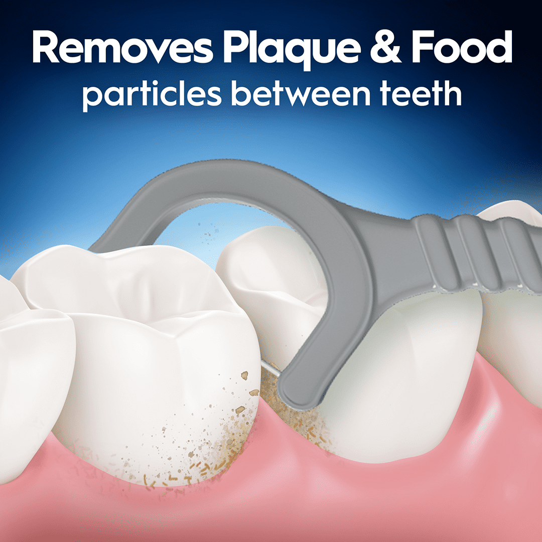 Instructions: Hold handle, guide floss between teeth using a gentle back-and-forth motion. Move floss up and down against tooth to help remove plaque and food particles above and just below the gumline. Rinse floss as necessary (repeat for each tooth). Pick Instructions: Place tip of pick between teeth at the gumline. Use a gentle in and out motion to help remove plaque and food particles and stimulate gums. Rinse as necessary.