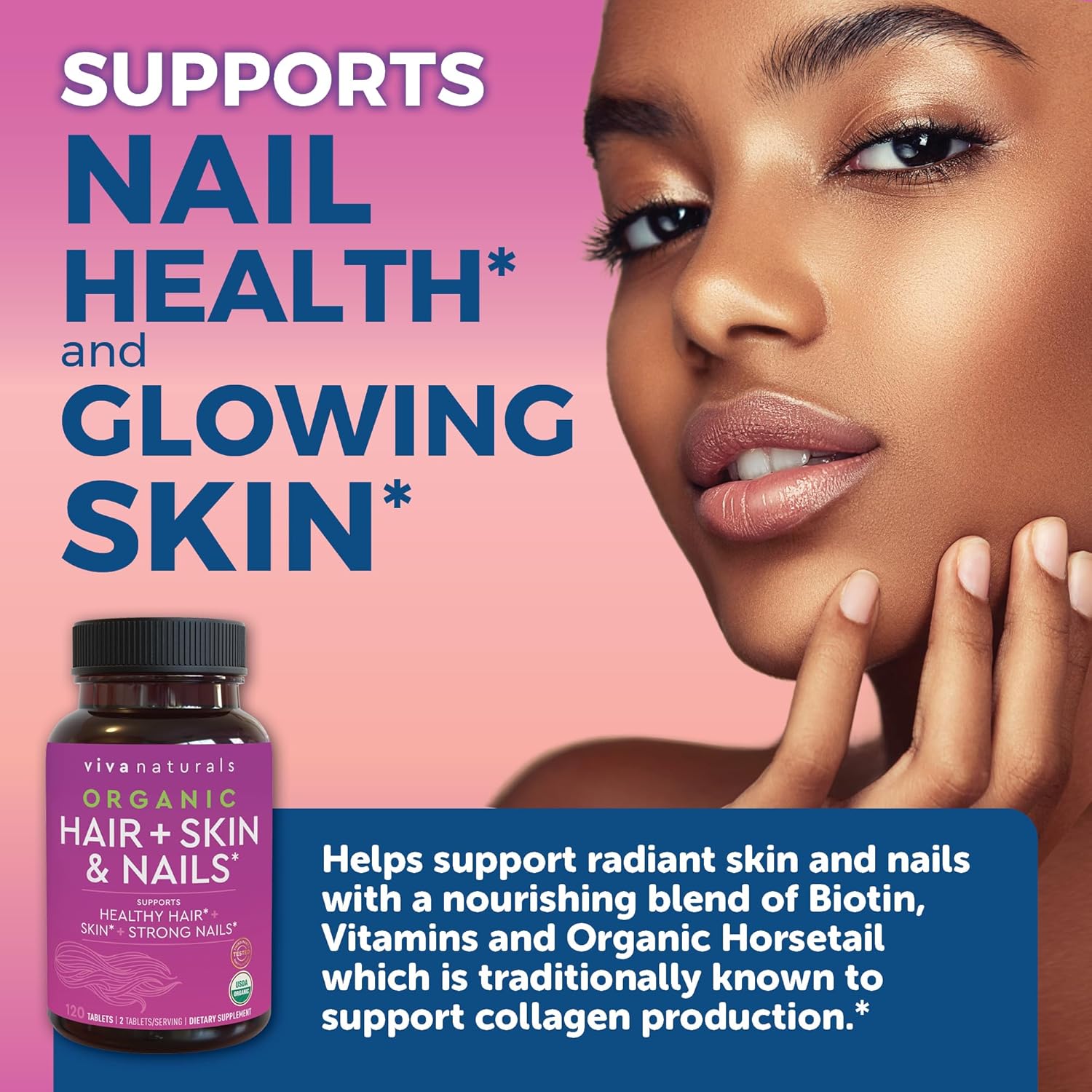 Organic Hair Skin Nails Vitamins for Women with Biotin 5000mcg and Vitamin E, Vegetarian-Friendly Supplements That Help Produce Keratin -120 Count