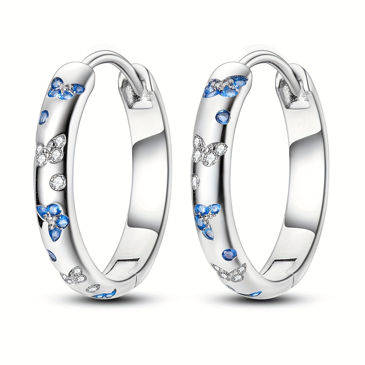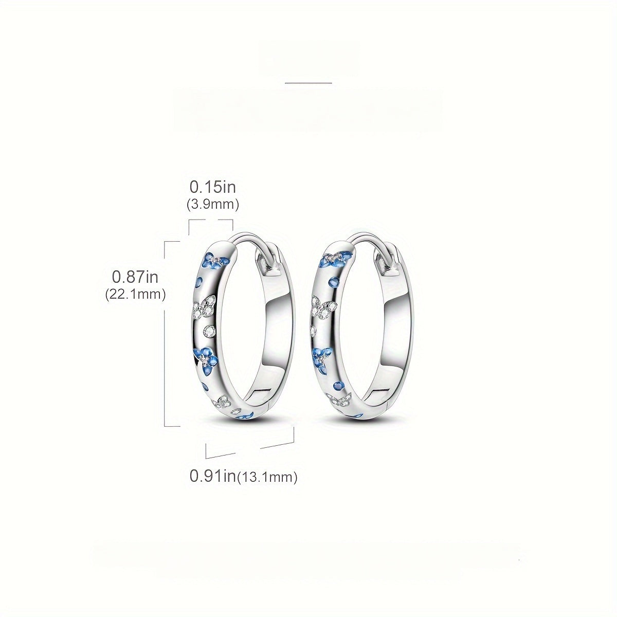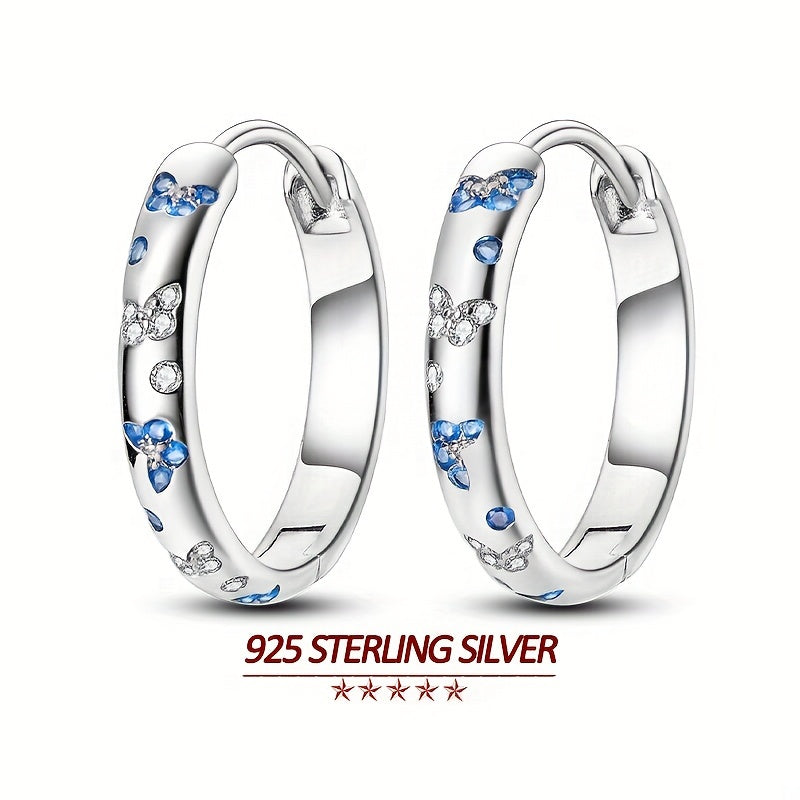 Original 925 Pure Silvery Low Allergy High Quality Women's Ring Earrings Plated with 18K White Golden Butterfly Style Blue and White Zirconia Elegant and Luxurious Women's Ring Earrings 5g