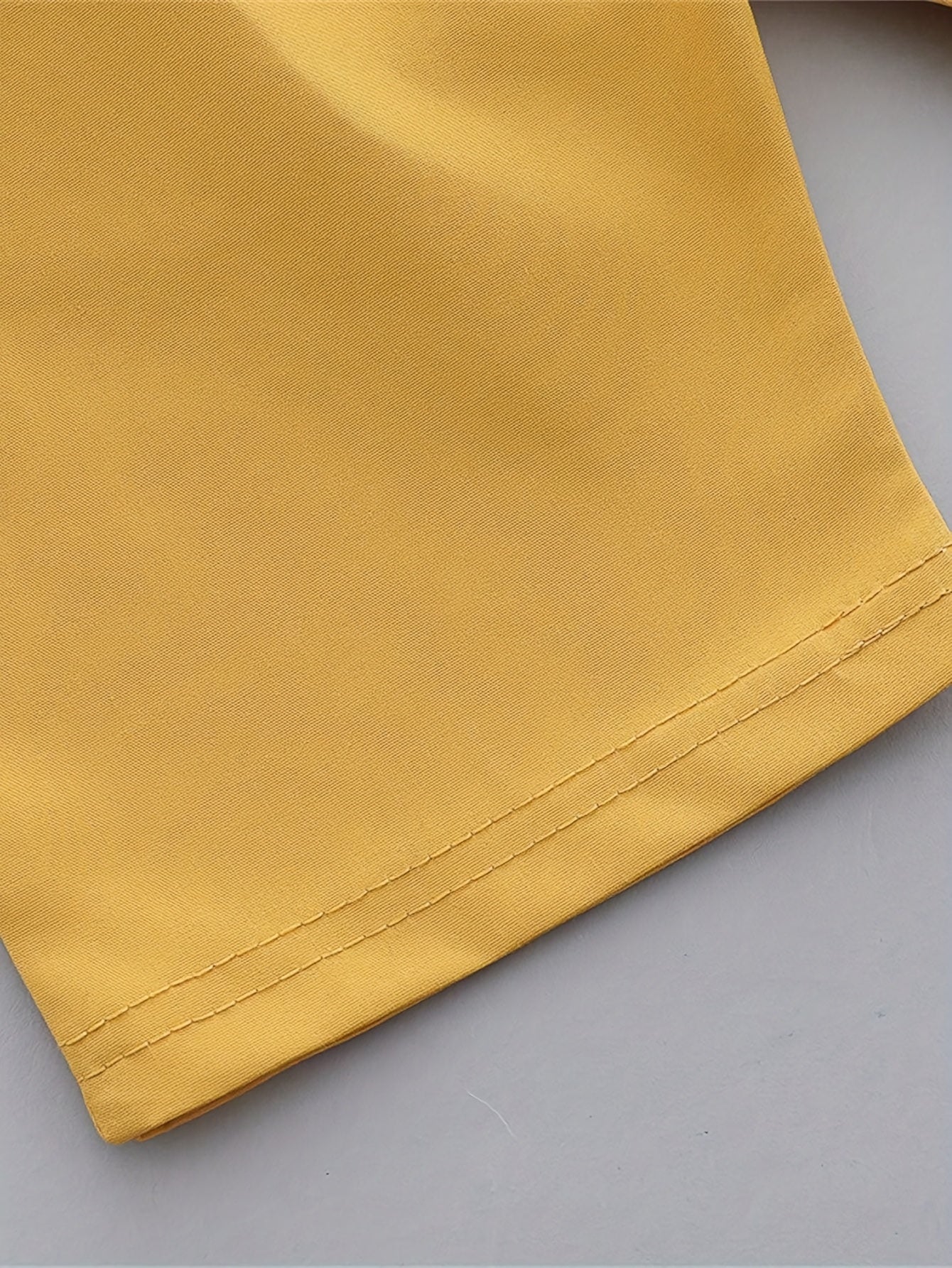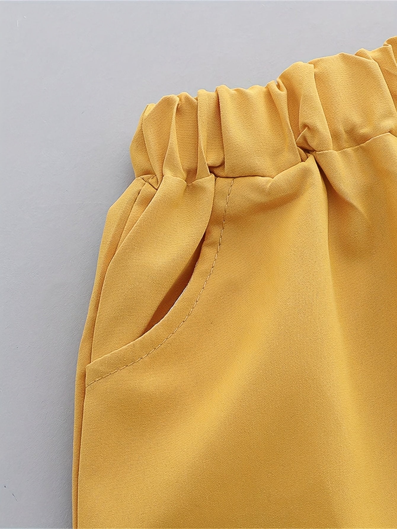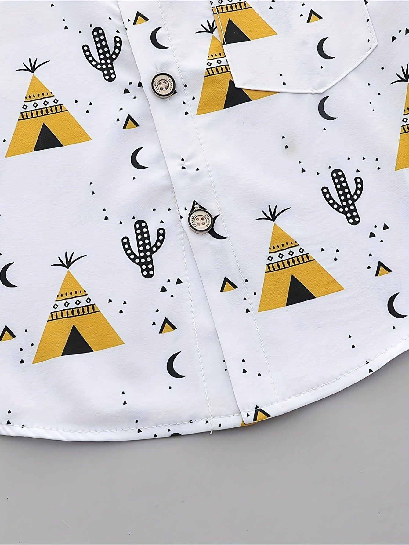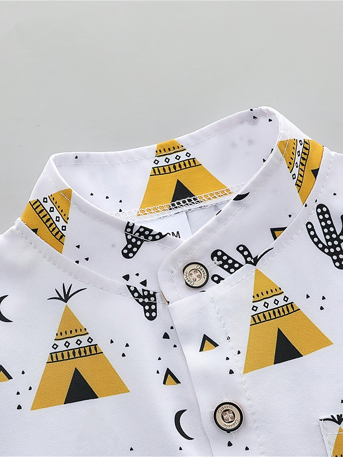 Outdoor Adventures, Boys' Summer Pyramid and Cactus Print Short Sleeve Shirt and Yellow Shorts Set - Casual, Machine Washable Polyester, Perfect for Outdoor