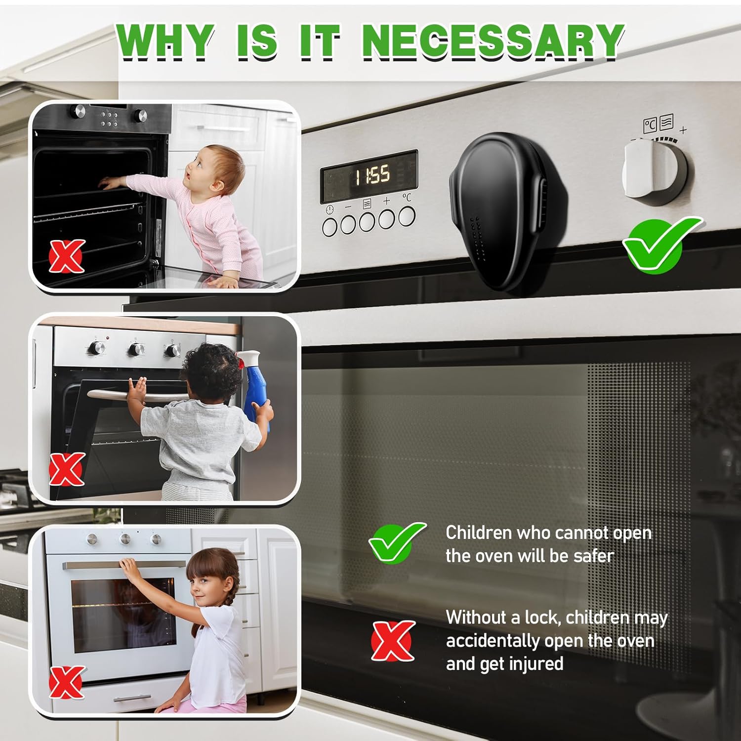 - Easy to Install + Multi-Function : Connecting our child safety oven is both fast and simple. No screws or drill bits required, and comes with high-quality adhesive. Peel off the protective tape from the oven locks and install it in the desired position for optimal performance. It won't harm your oven. In addition, it is not only suitable for ovens, but also for cabinets, microwaves, stoves, doors, etc., to prevent your baby from opening various dangerous areas, making the home safer and allowing your baby to grow up healthy