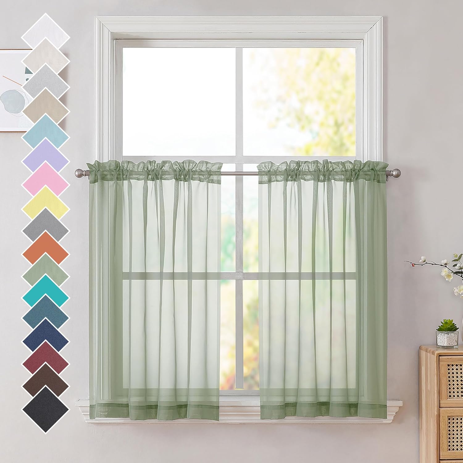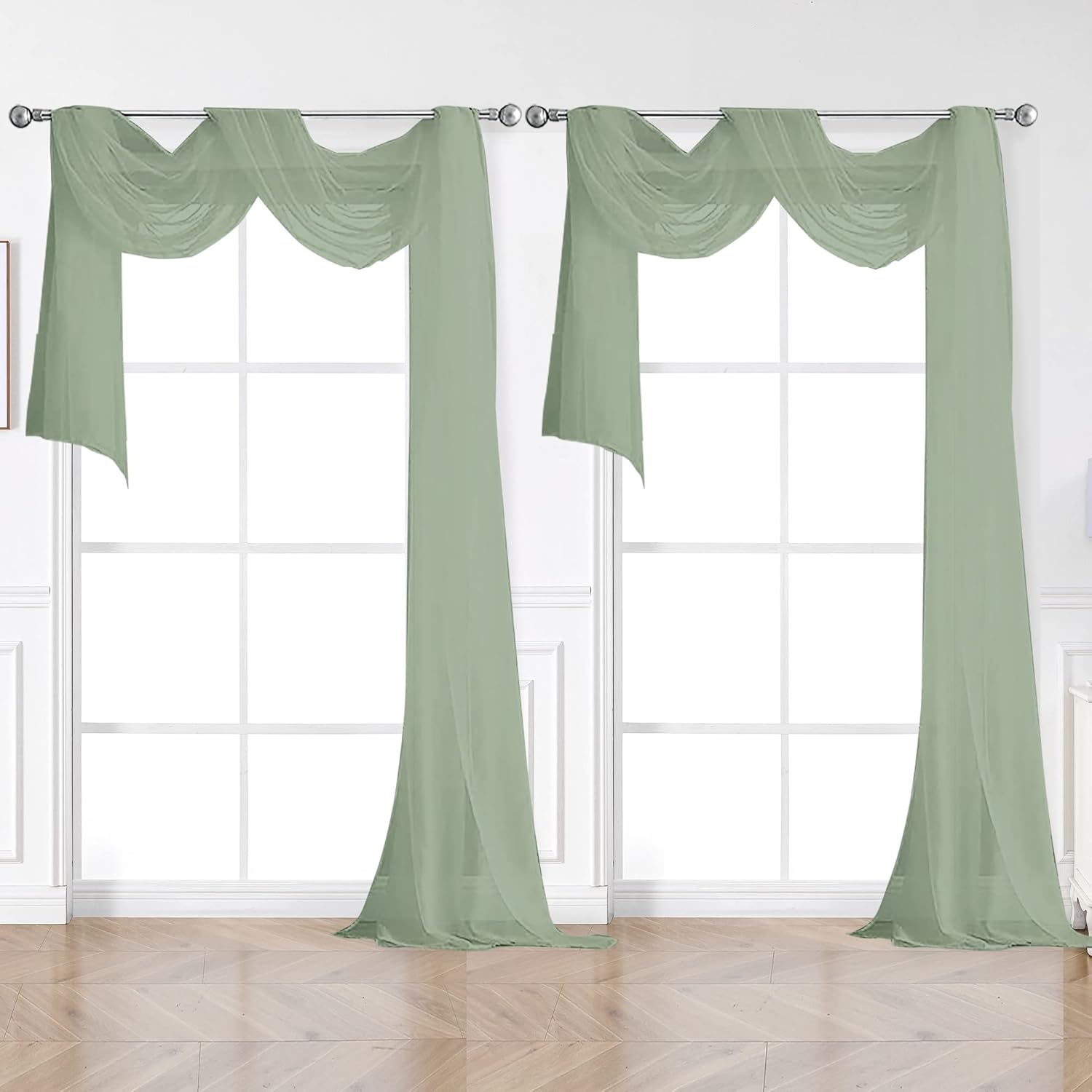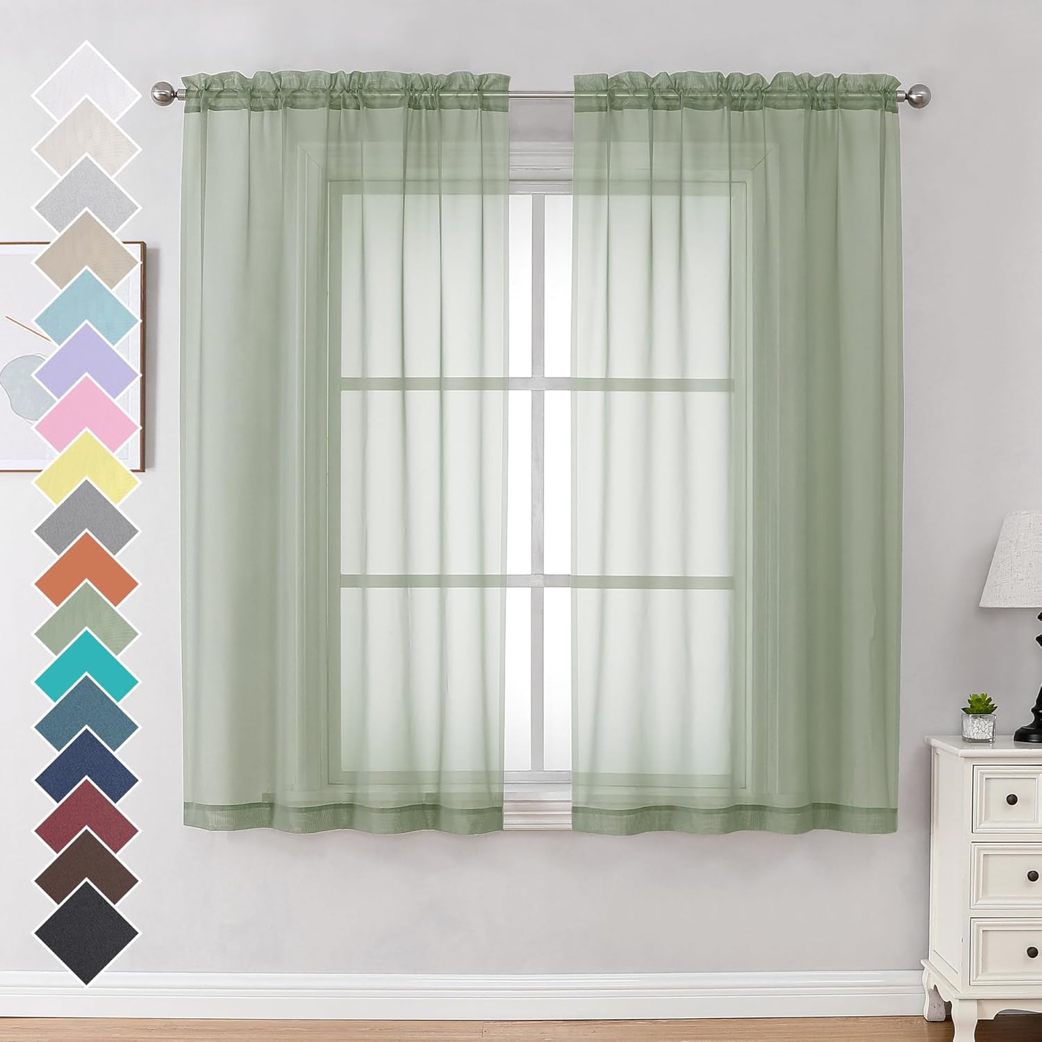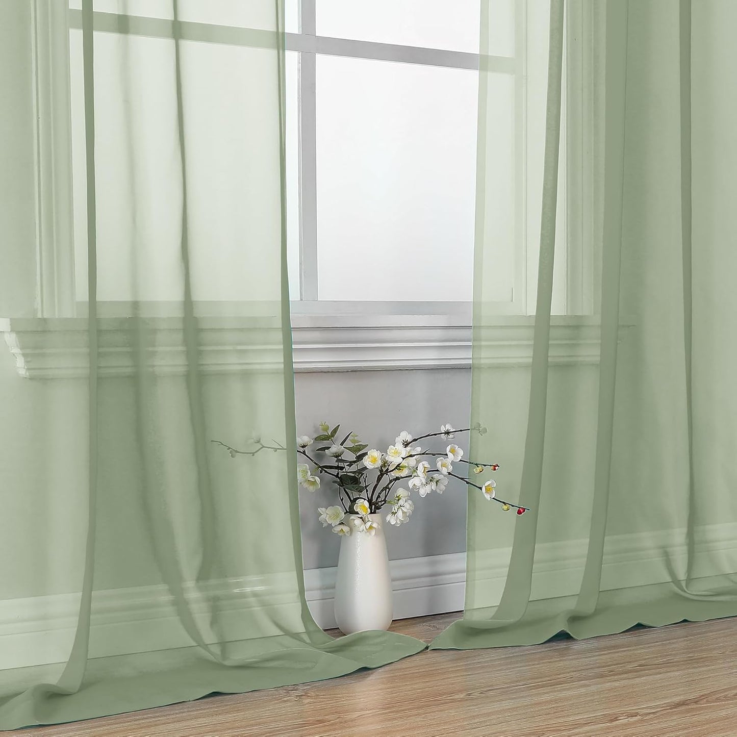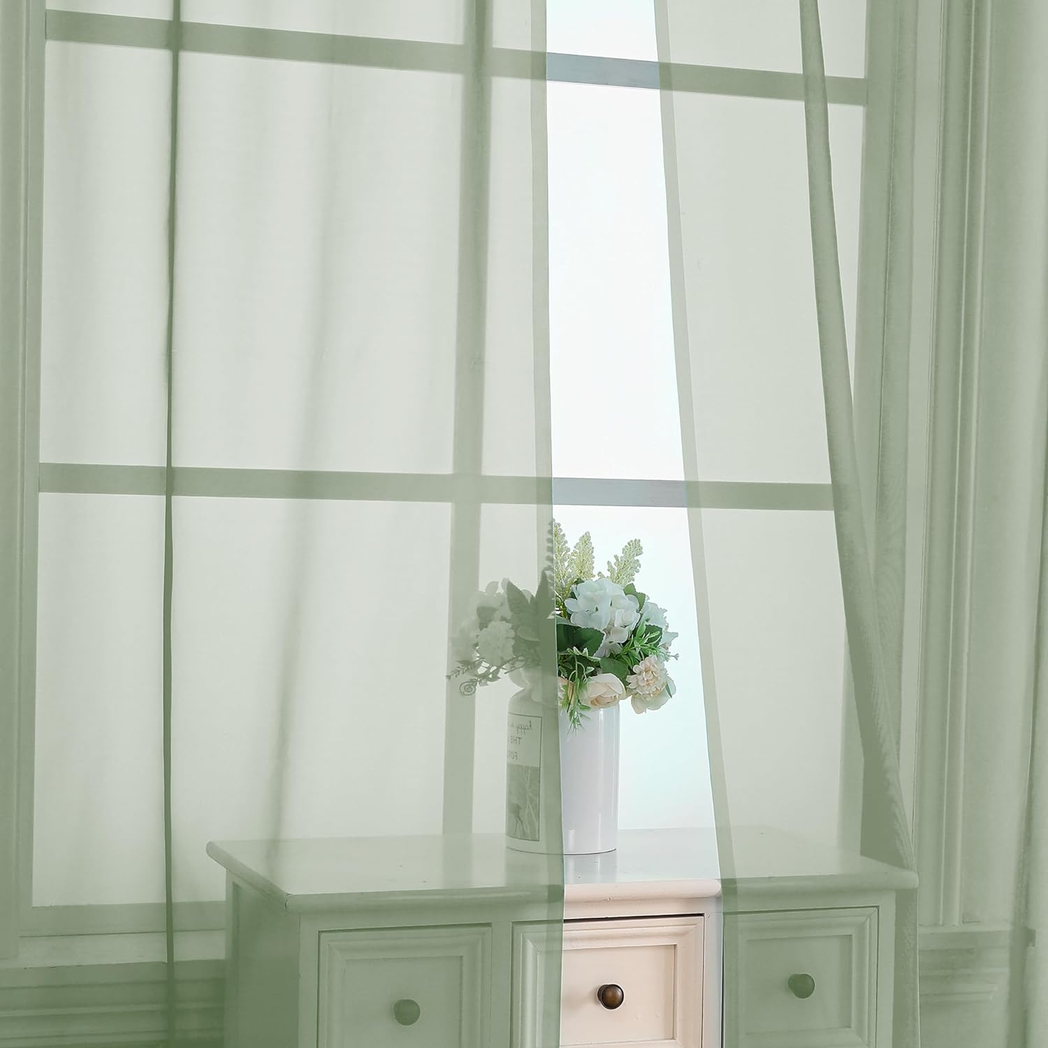 OVZME Bedroom Curtains 2 Panel Sets 84" Inch Length - Transparent Light Weight Soft Window Treatment Panels for Study Room/Living Room/Guest Room, Sage Green, Per Panel W42 X L84 inches