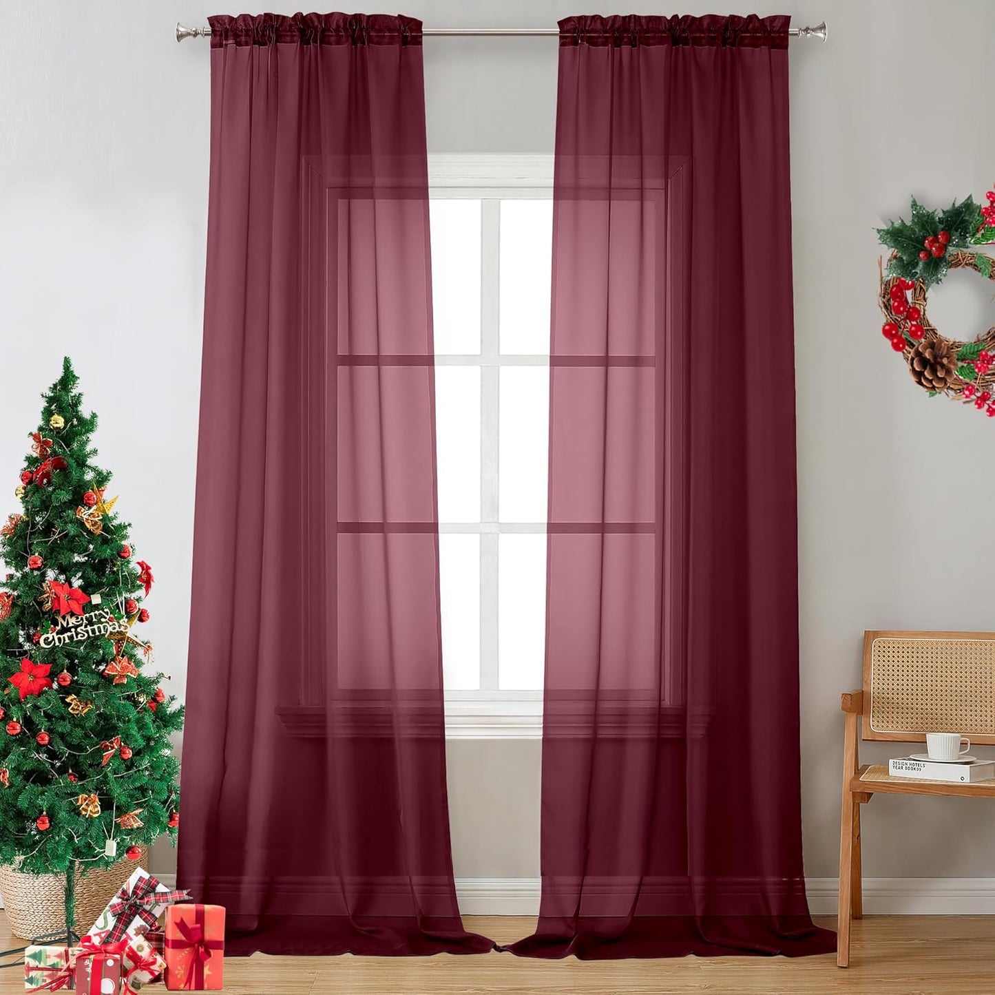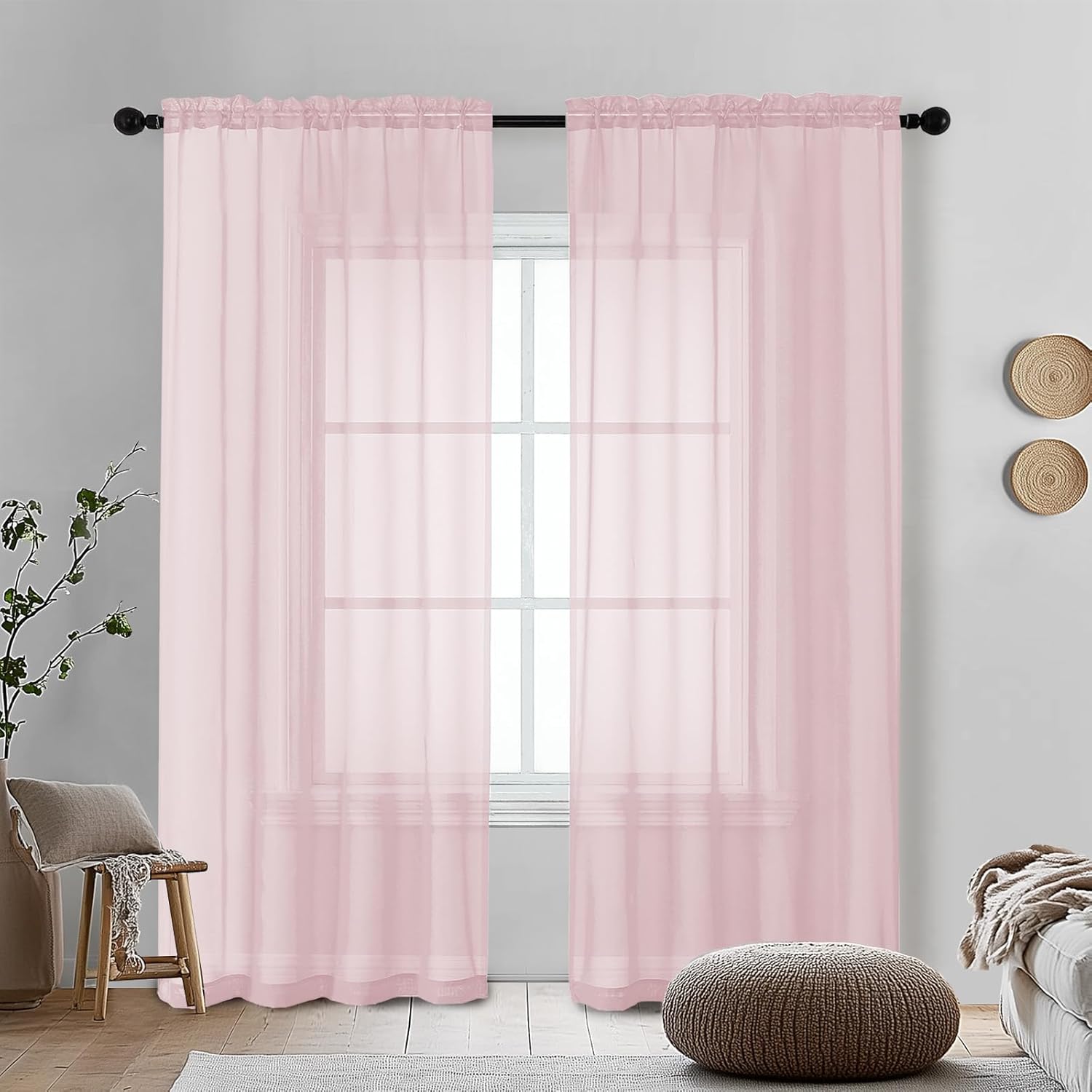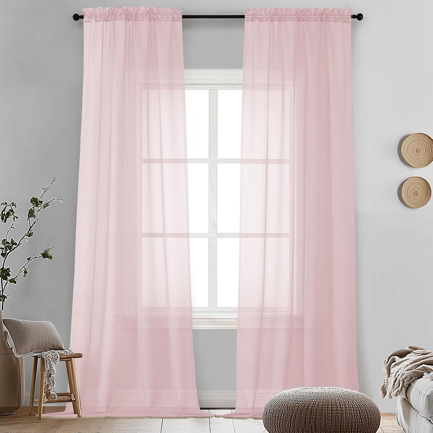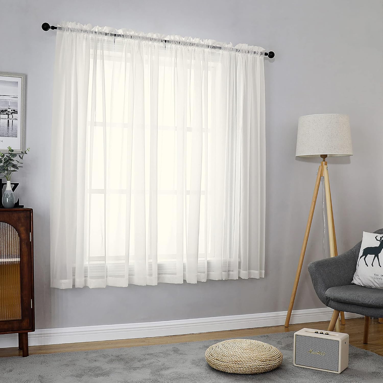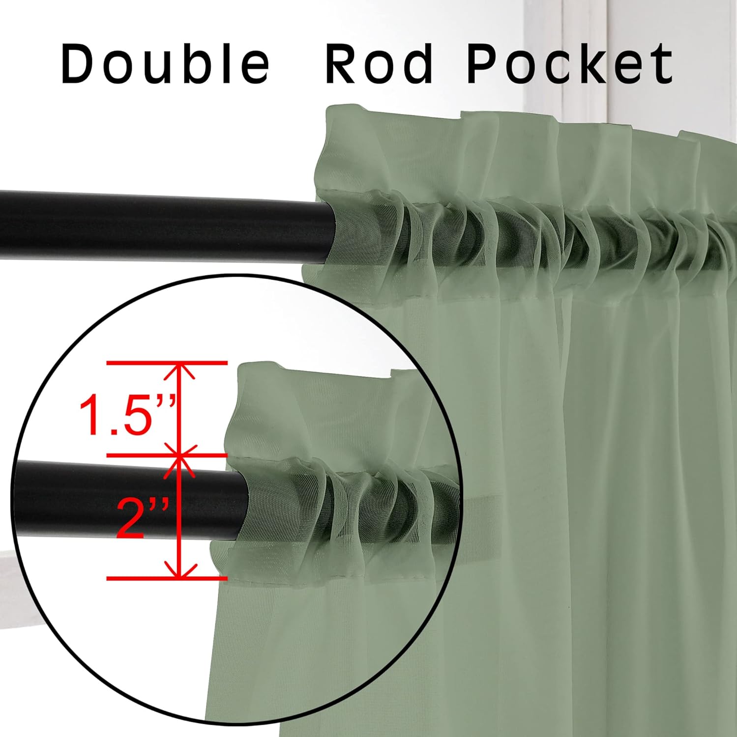 EASY to INSTALL & DECORATE: Matching dual rod pocket top, 2" diameter rod pocket design makes this sheer curtain easier to hang or slide and accommodate most of curtain rods. Also, it can offer classic elegant pleated style to decorate the proper part of a wall.