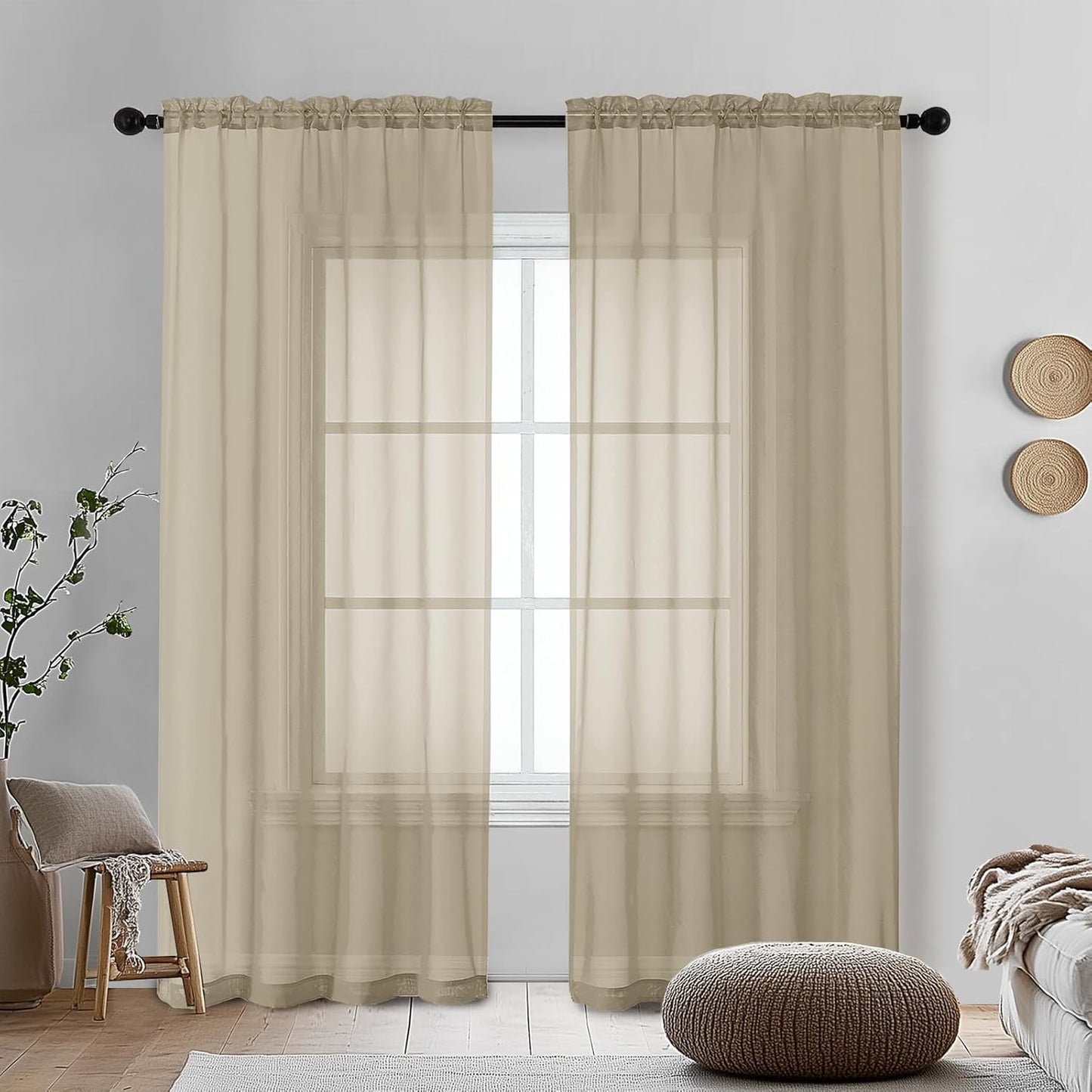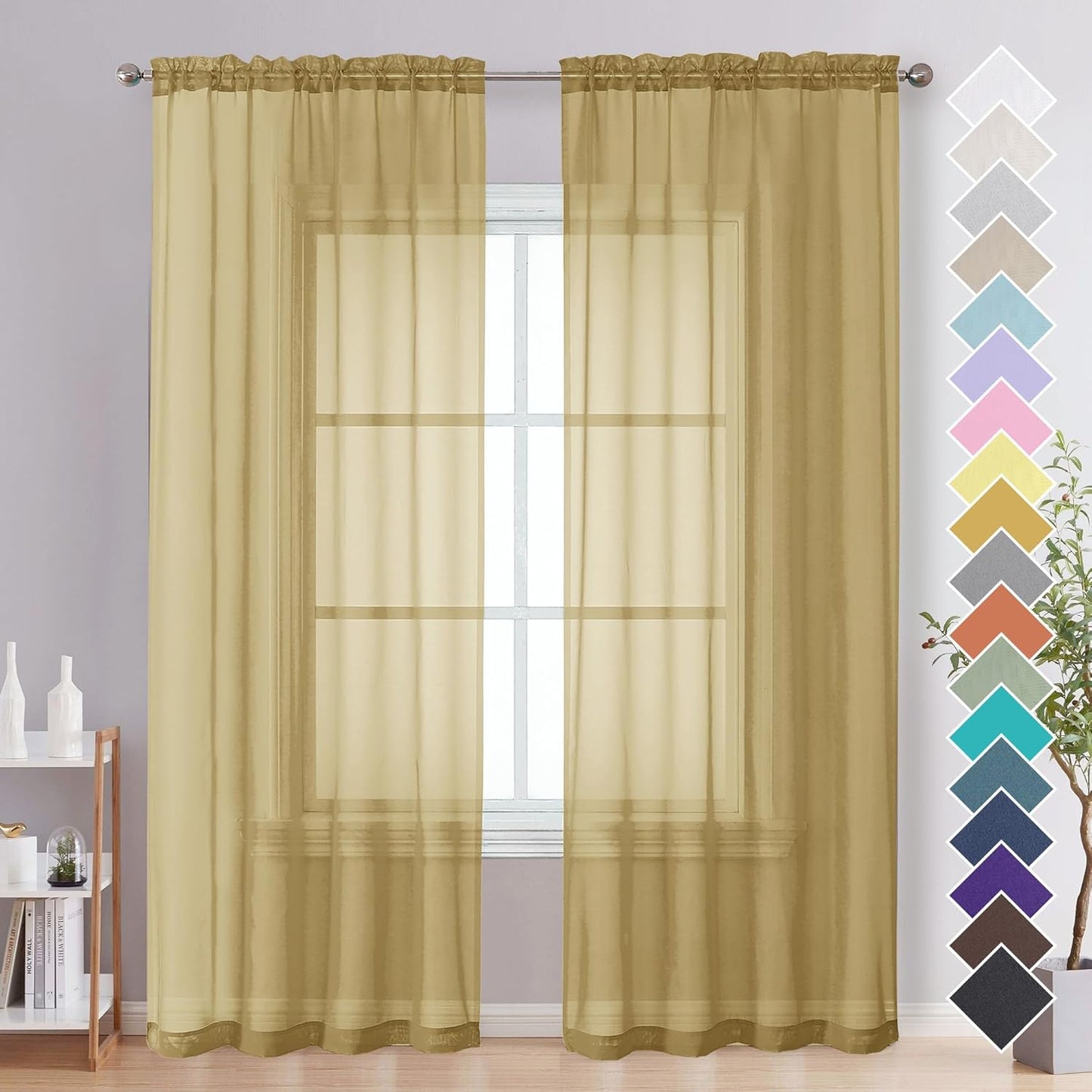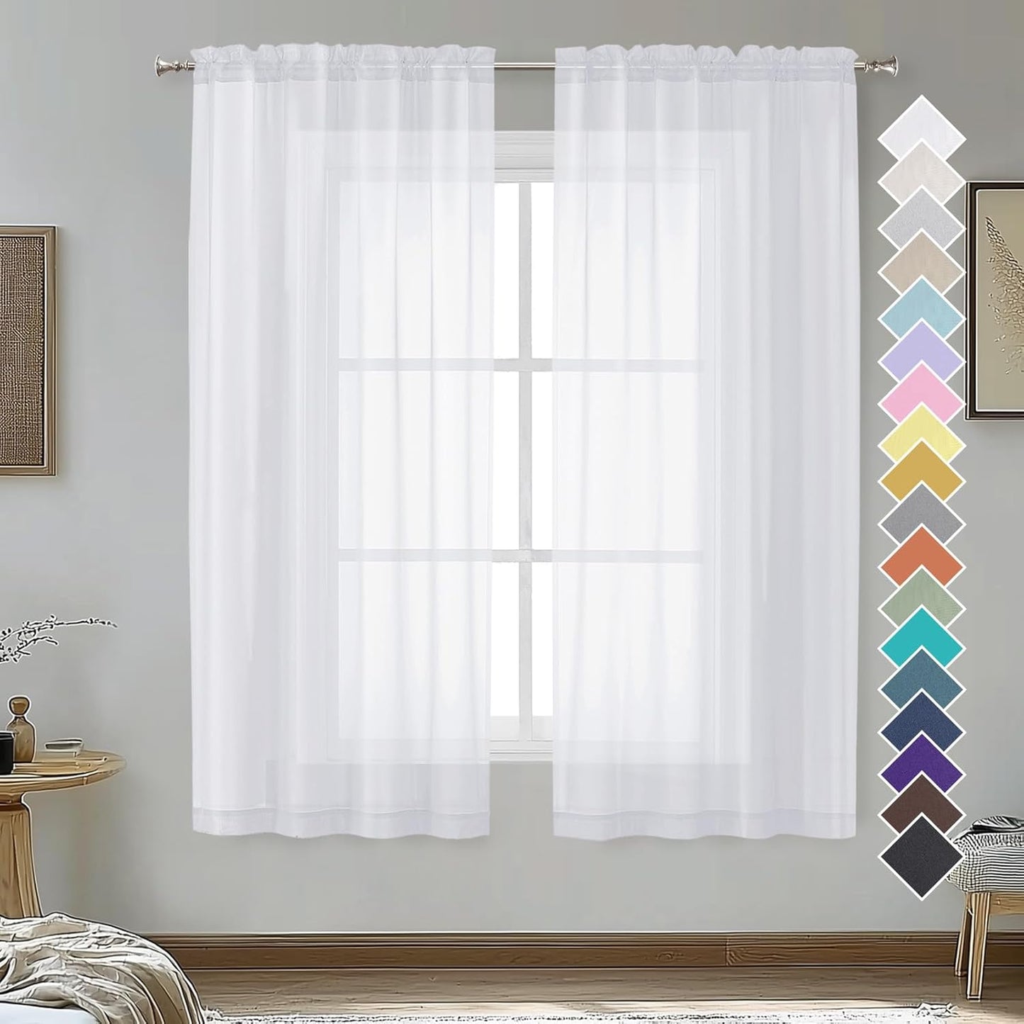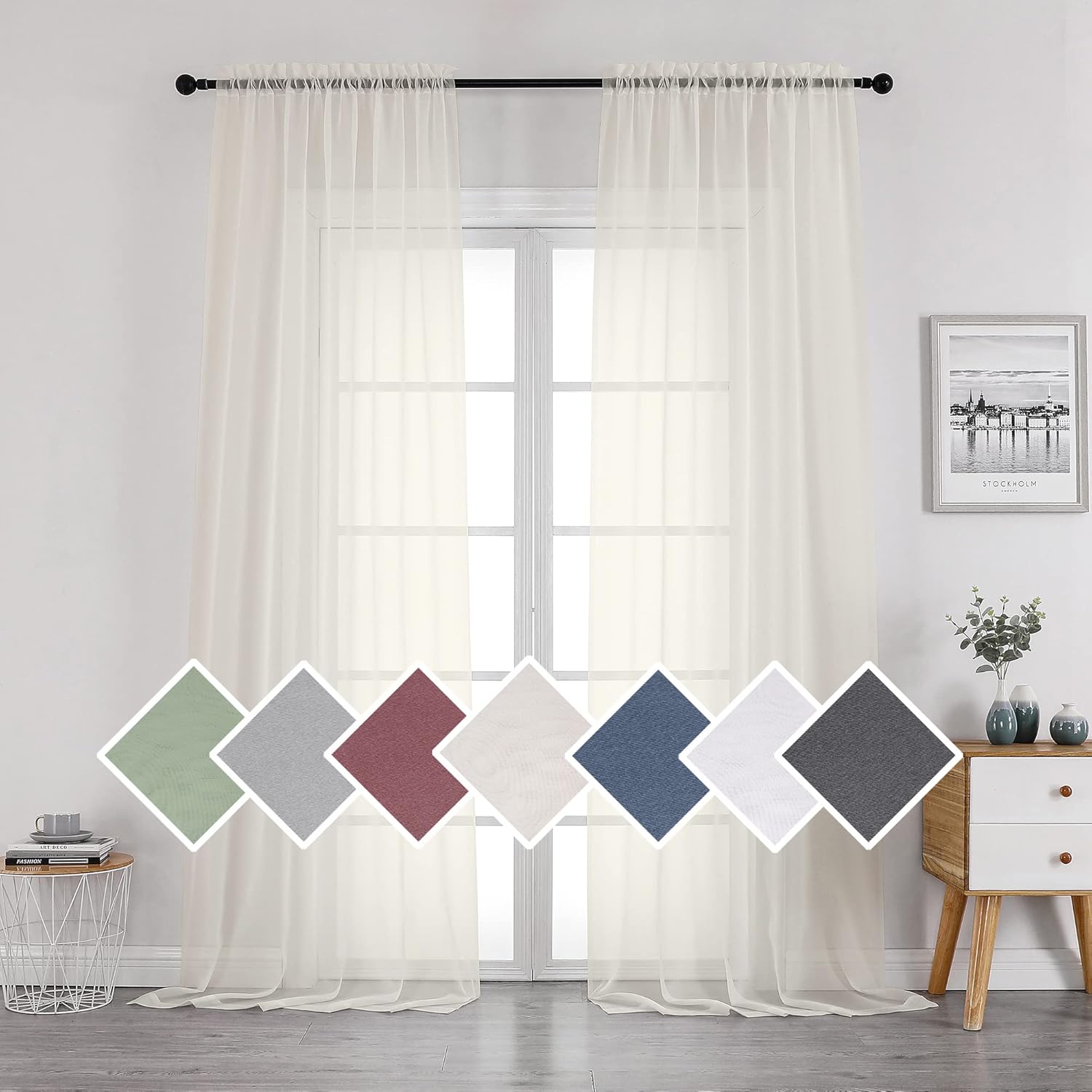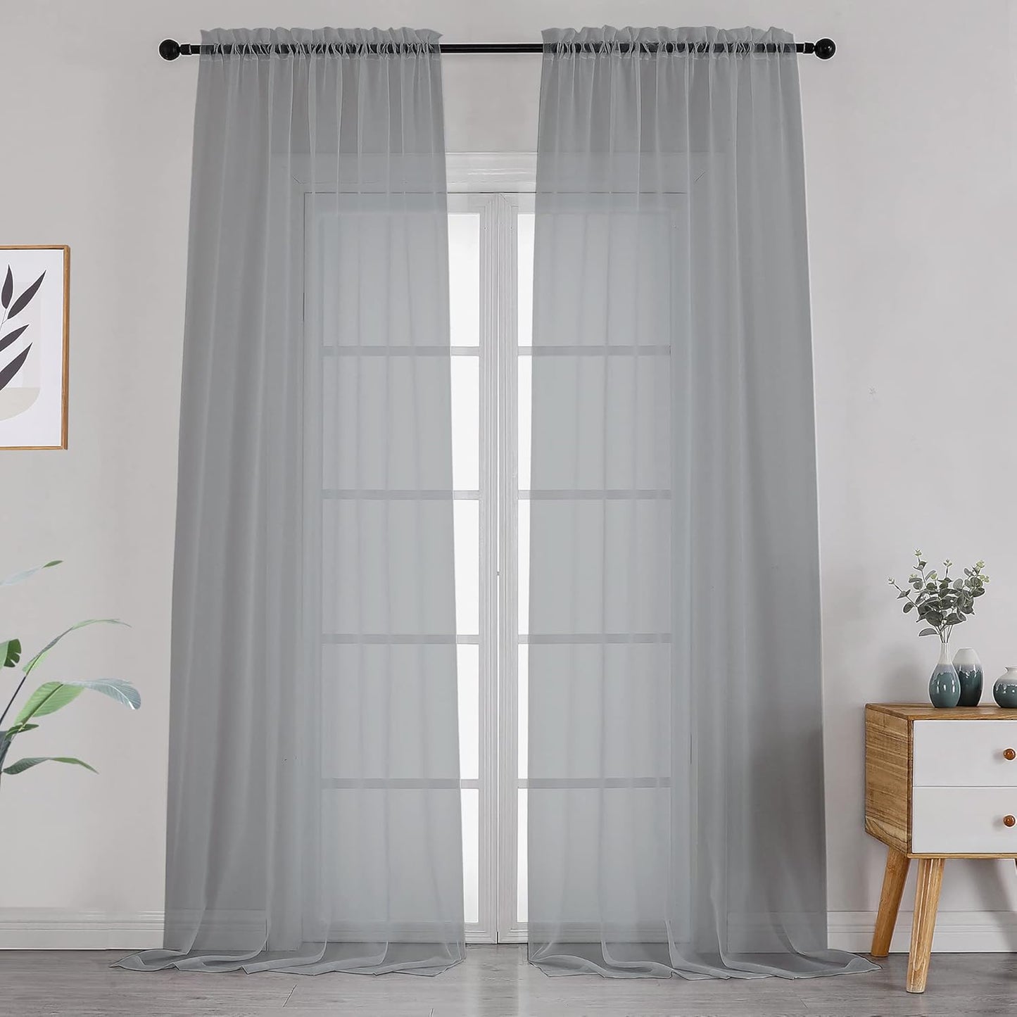 SOLD AS 2 PANELS: Each package includes sheer curtains 84 inch length 2 panels set; Each panel measures 42" width, total width is 84", not only wider than ordinary 38" width, but also affordable cost than other extra wide sheer curtains, 42 inches will allow these panels to decorate sufficiently over your windows.