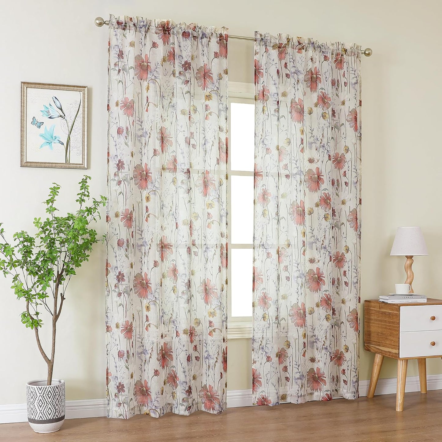 Elegant Printed Design: Different from the pure color sheer curtain, clearly printed without any visual flaws so that will bring vibrant scheme to your room. Blossoming rust, orange, purple, green floral with brown branches printed on ivory sheer drapery, was created by Lisa and Laura Studio. Contributes the fascination of watercolor to these curtain panels, providing a sense of rusticity and aesthetics