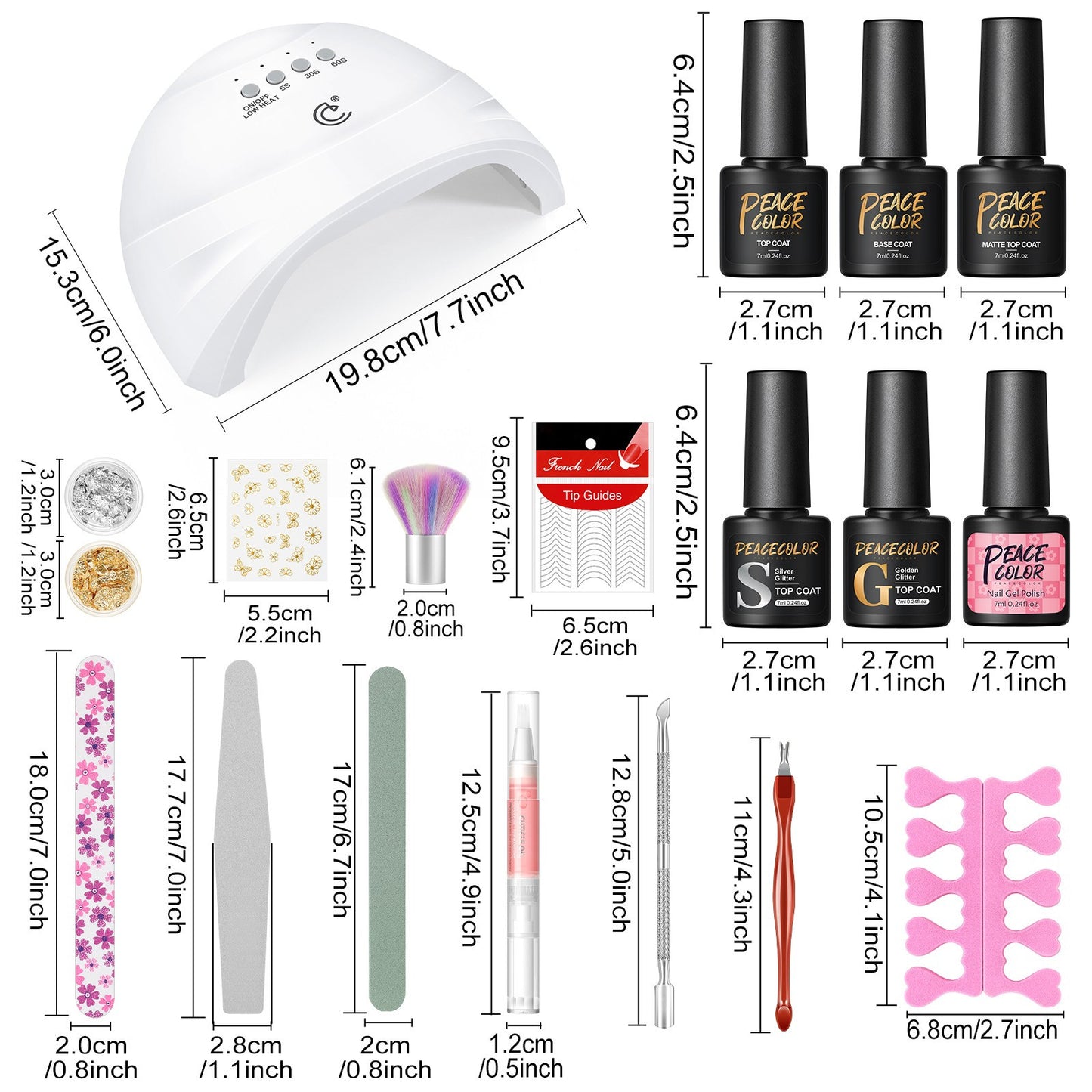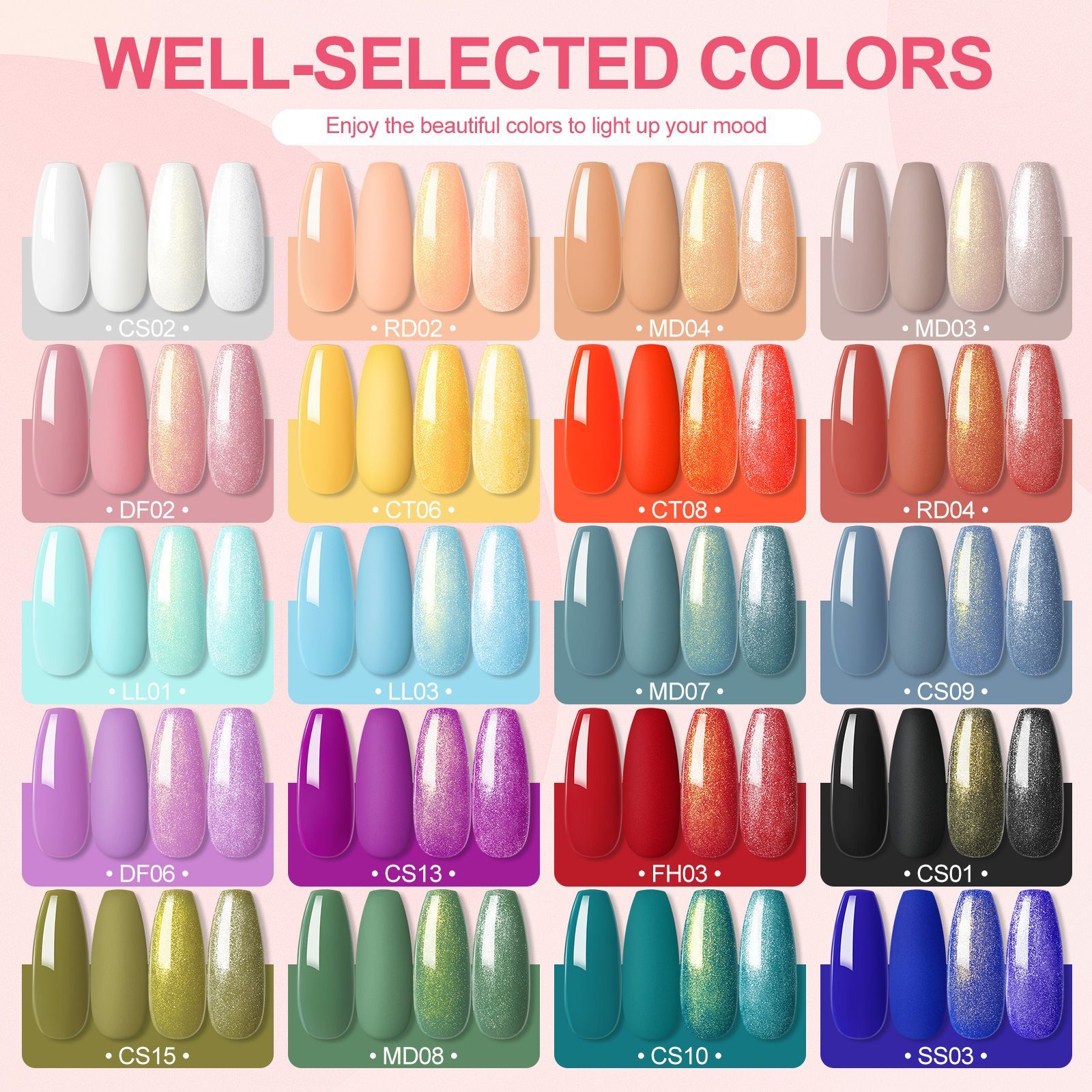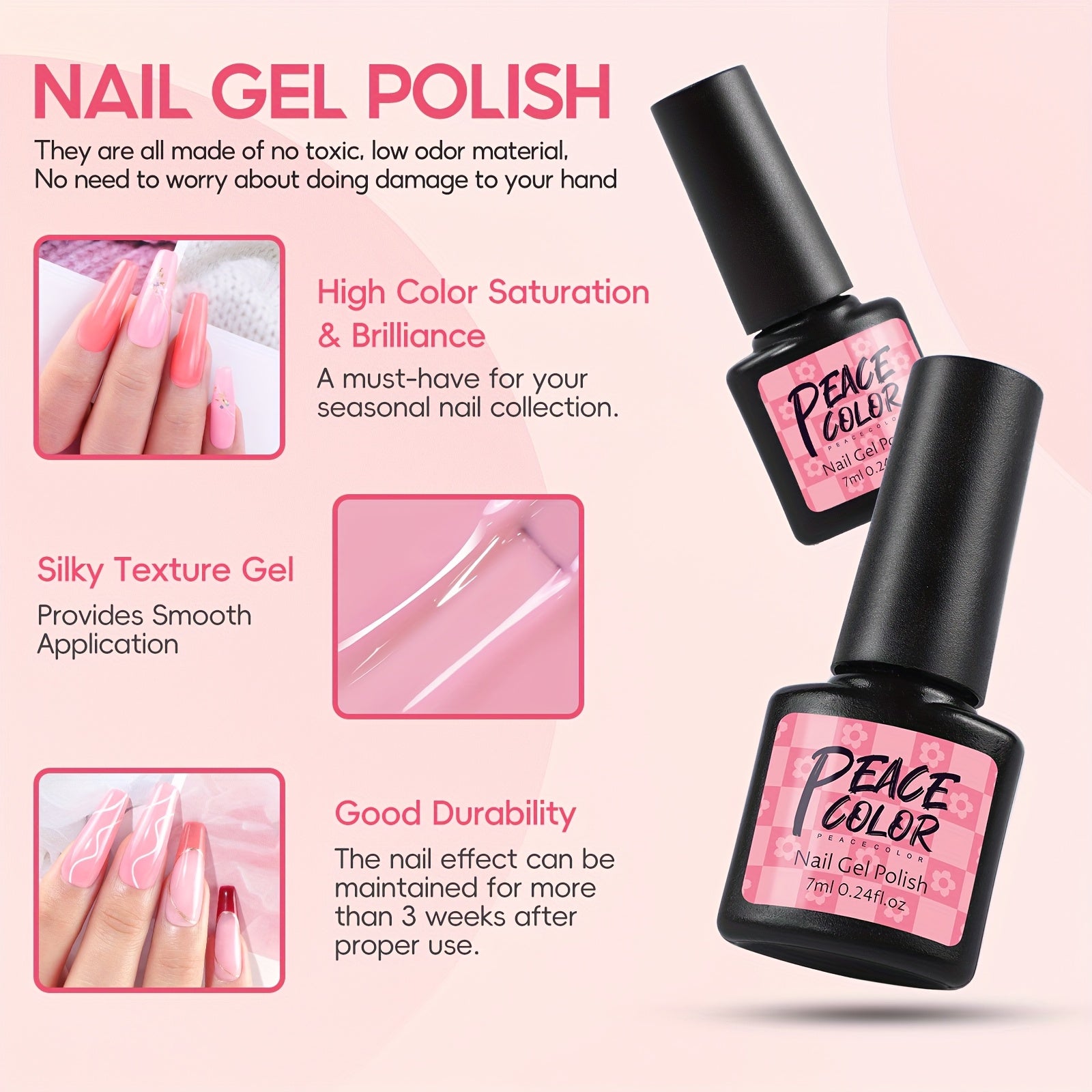 Peacecolor 20 Colors Gel Nail Polish Set With Base Top Coat Matte Coat Nail Lamp Pink Red Green Holiday Gift Salon DIY