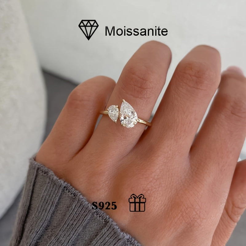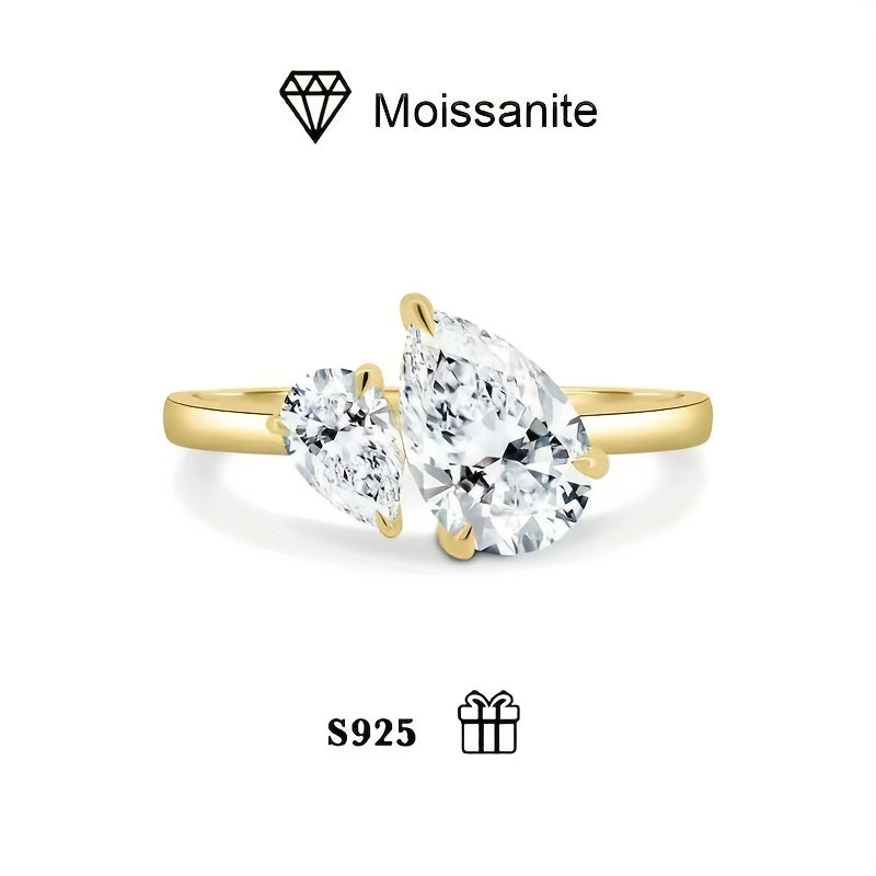 [Pear-Shaped Moissanite | 925 Silver] 2-Carat Stylish Pear-Shaped Moissanite 925 Silver Ring | Low-Allergy, 3.4G | Perfect Gift for Women on Anniversaries or for Men to Give to Their Wives