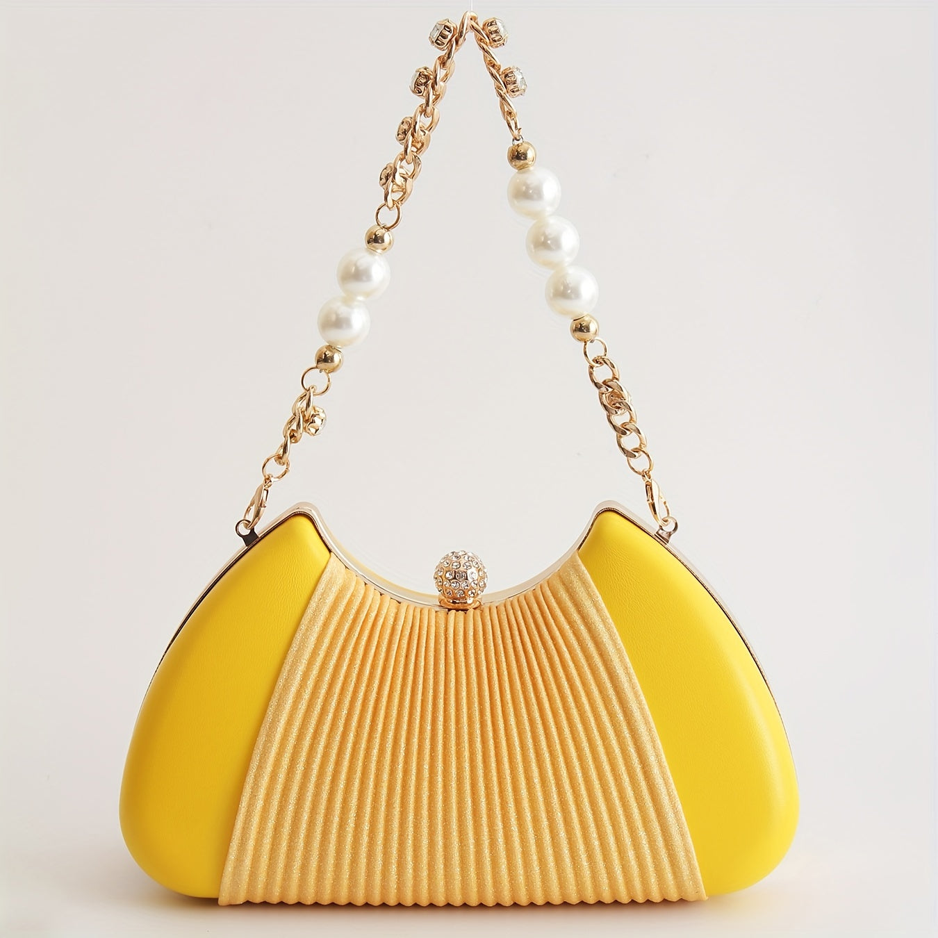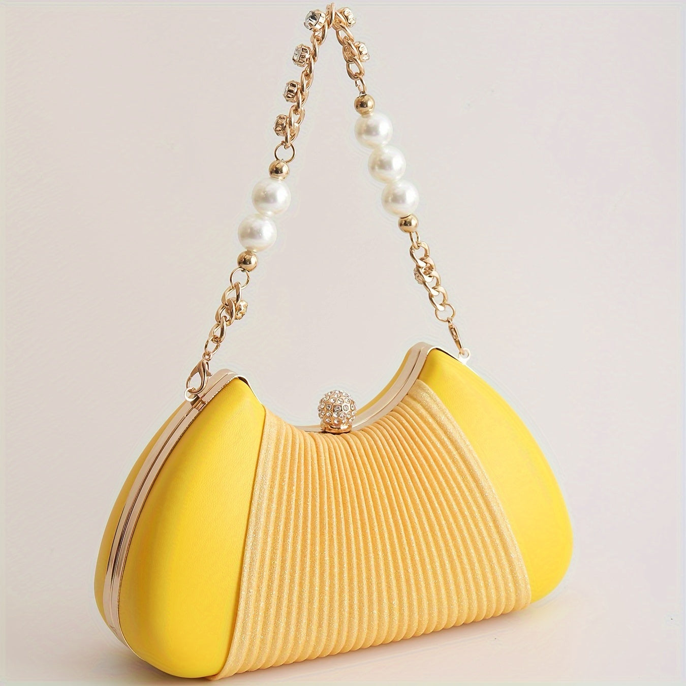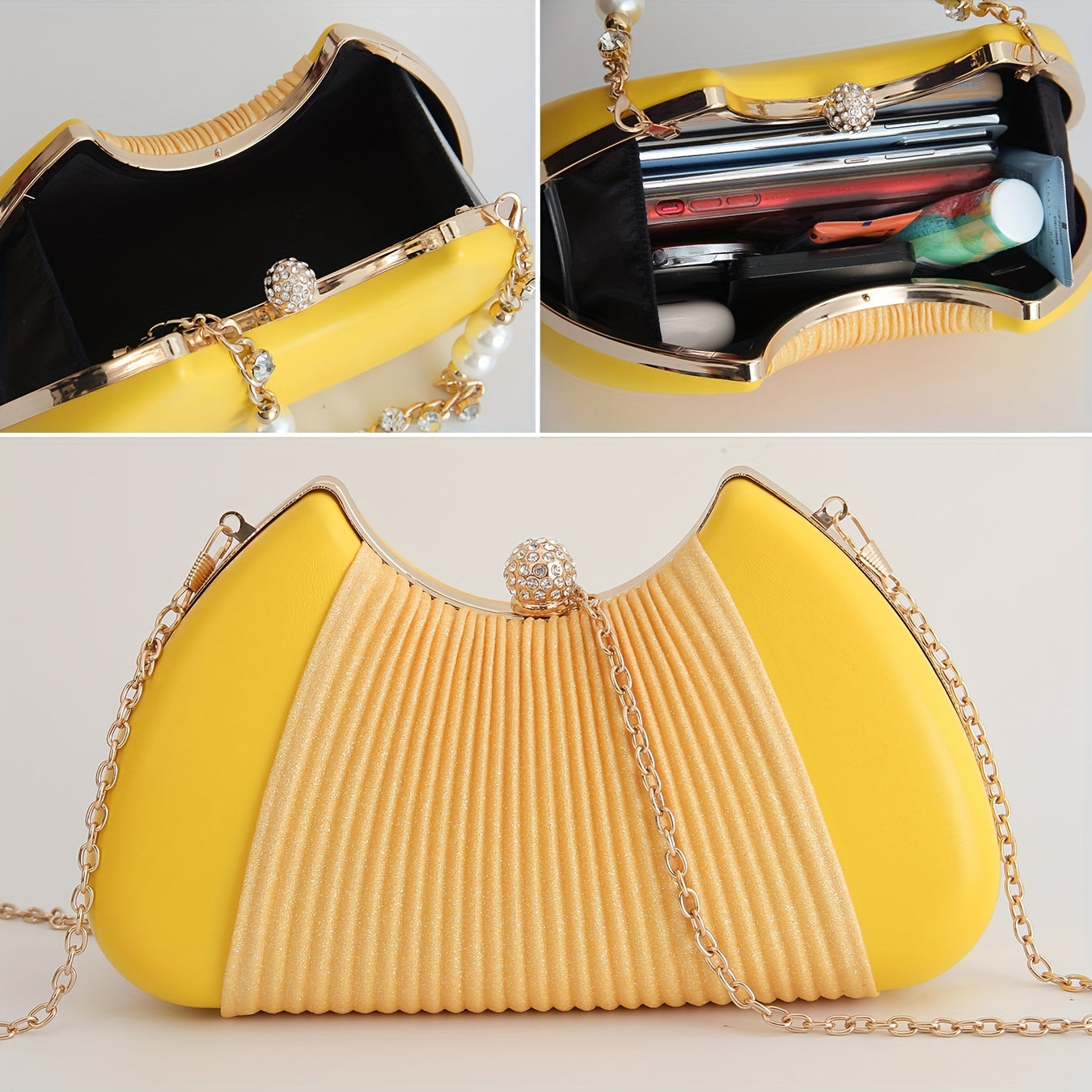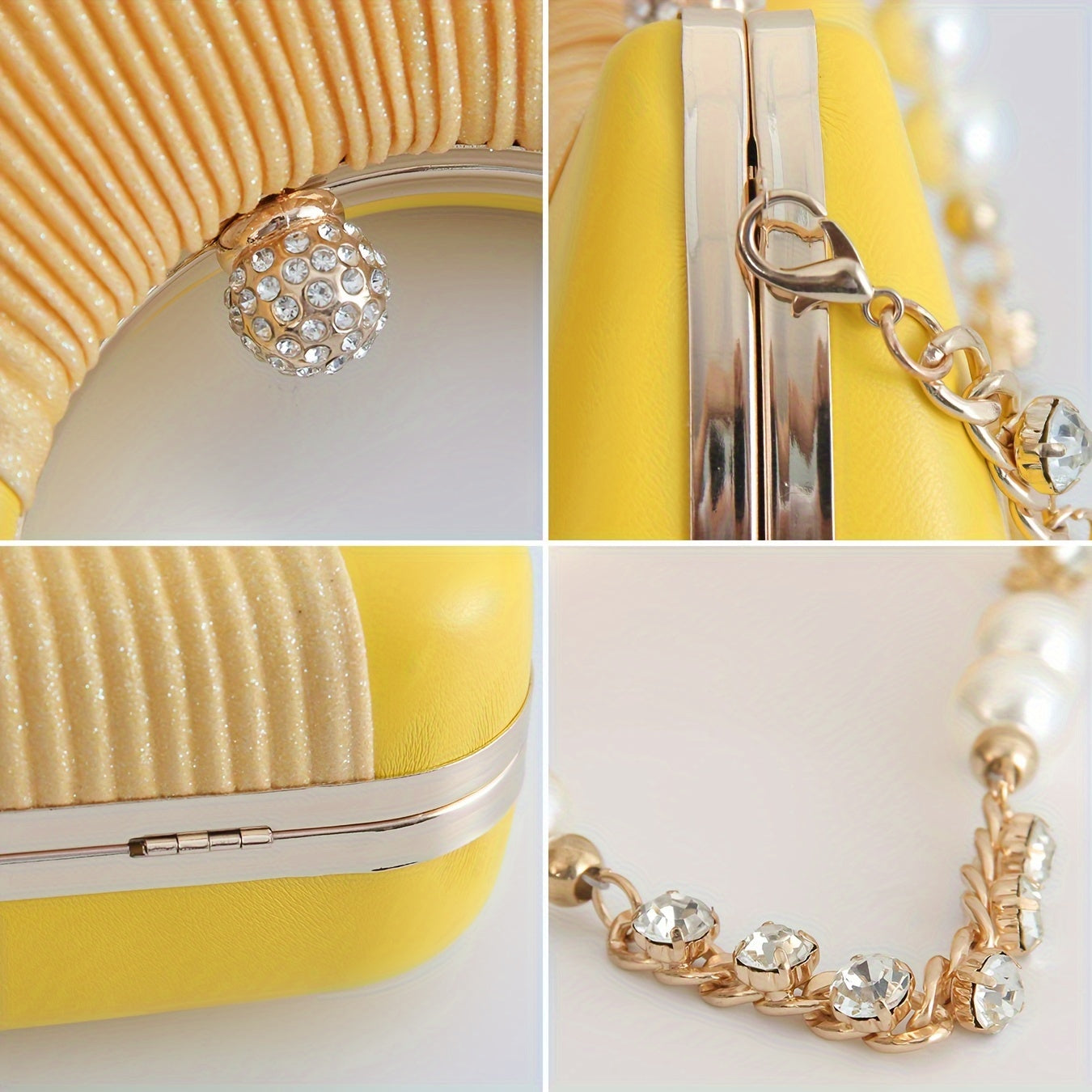 [Pearl Clutch Bag] Pearl And Rhinestone Lady's Evening Clutch Bag - Wrinkled, Suitable for Weddings And Parties, Can Be Used As a Shoulder Or Crossbody Bag