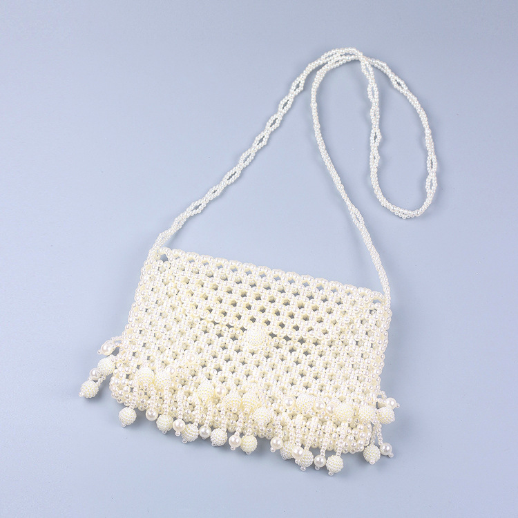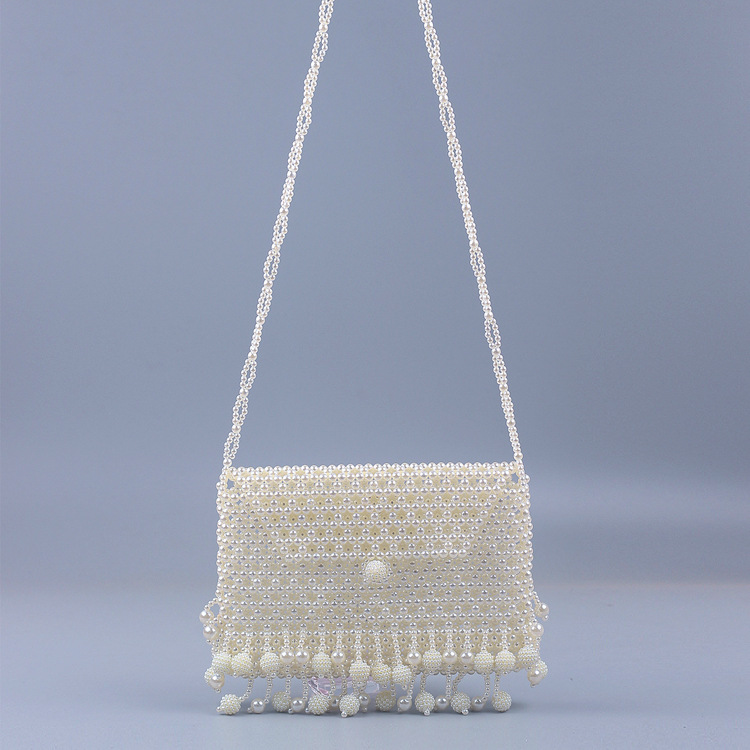 Pearl Hollowed out Small Bayberry Tassel Messenger Bag DIY Beaded Women Shoulder Bag Dinner Party Bridal Bag
