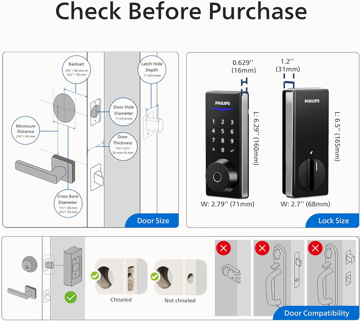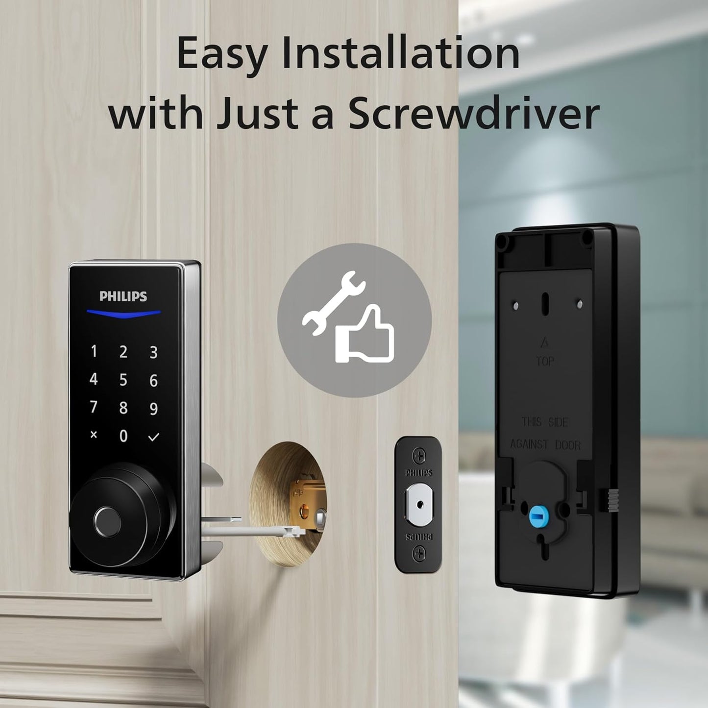 Unlock and let in from anywhere:Philips Wi-Fi deadbolt smart locks offers peace of mind from anywhere by allowing you to remotely manage your lock via using the Philips Home Access app.Enjoy easy setup, access management, real-time notifications, and event history.