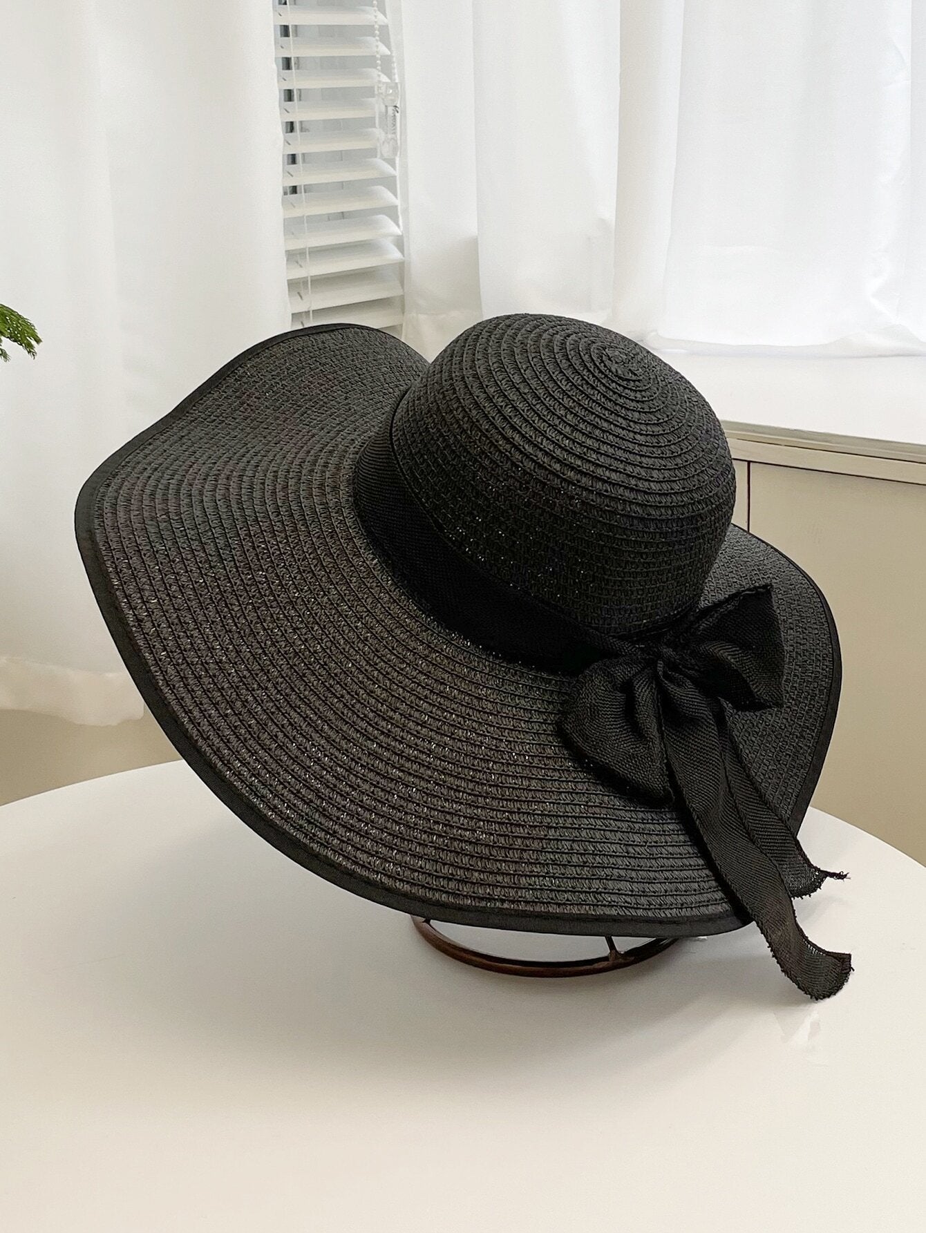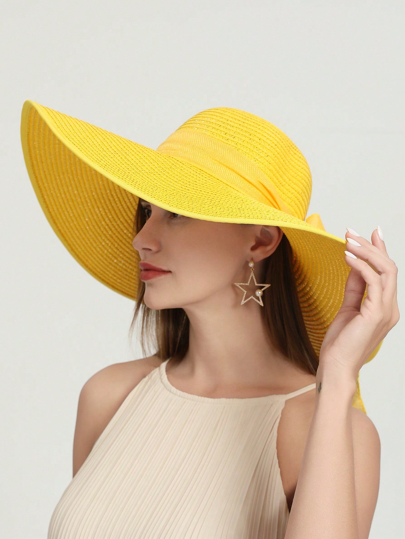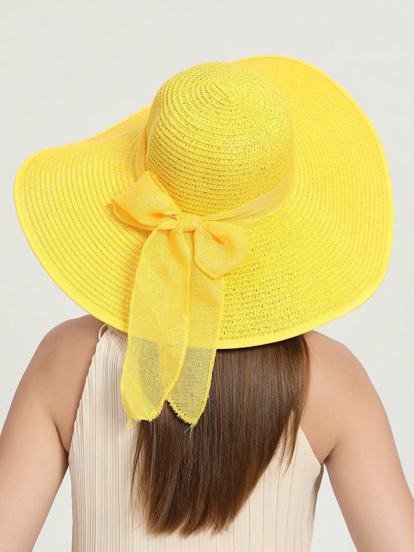 Plain Color Wide Brim Straw Hat, Suitable For Outdoor Travel, Beach, Sun Protection