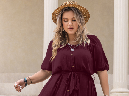 Plus Size All Matching Waist Half Open round Neck Retro Women Dress