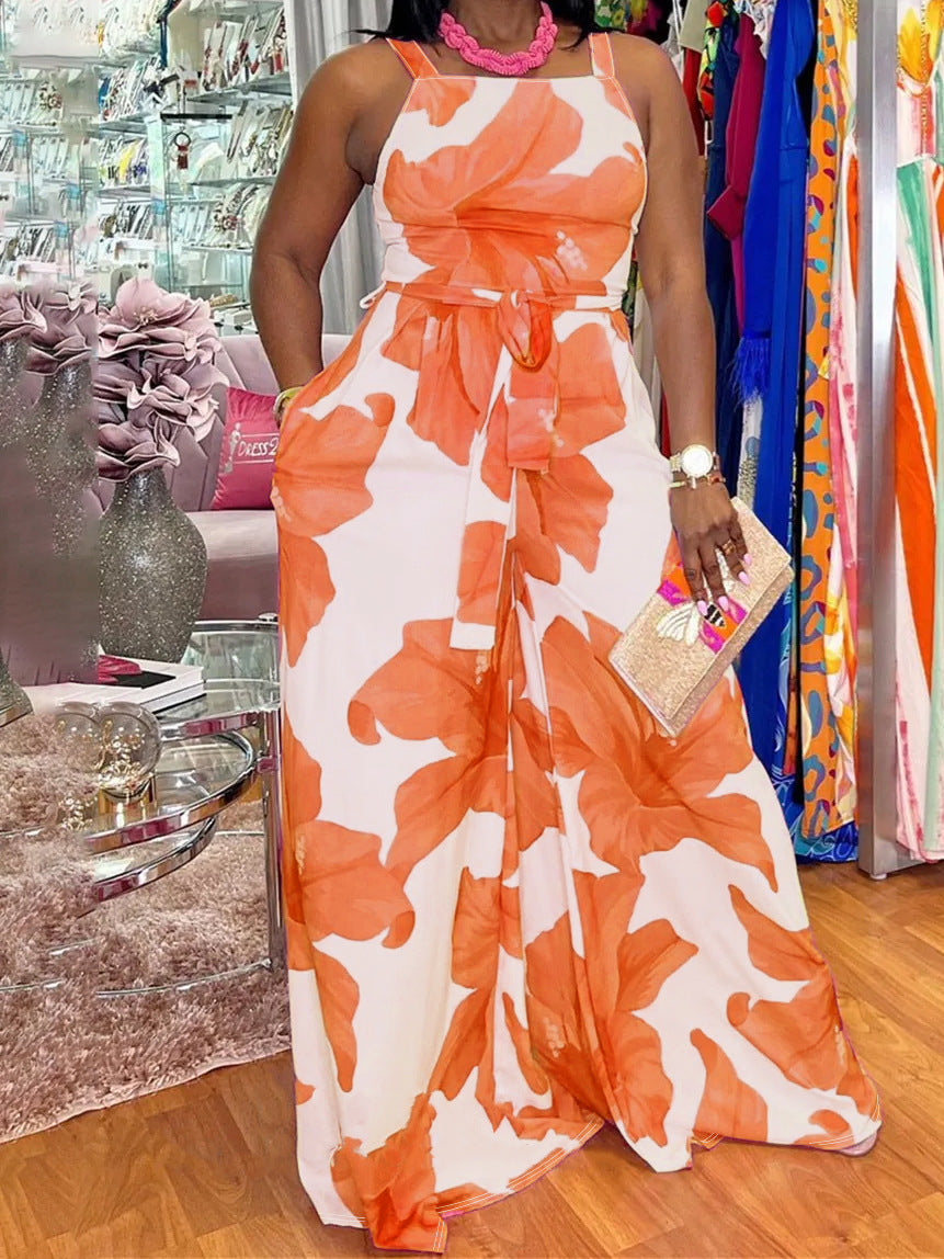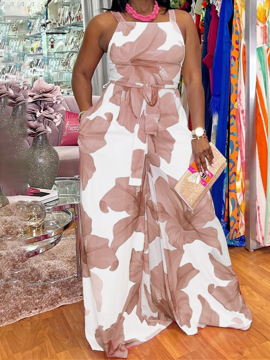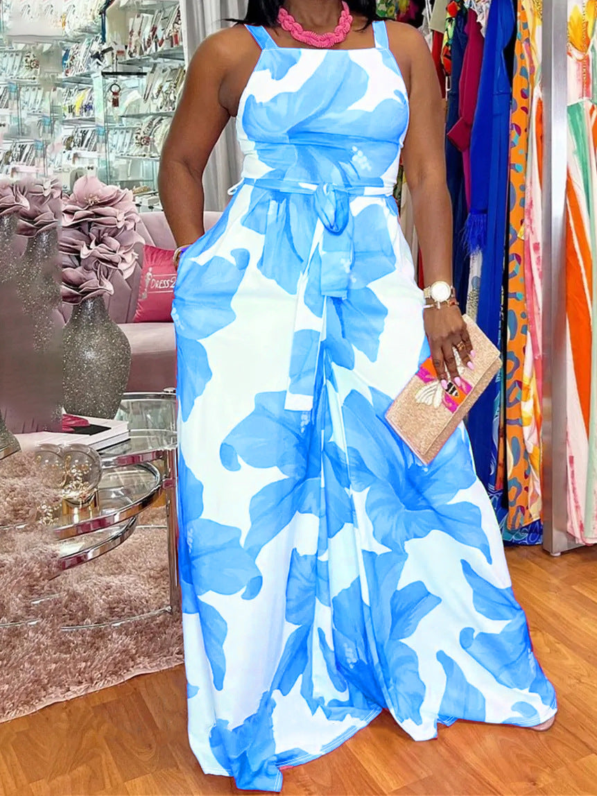 Plus Size Casual Personality Printed Sleeveless Jumpsuit