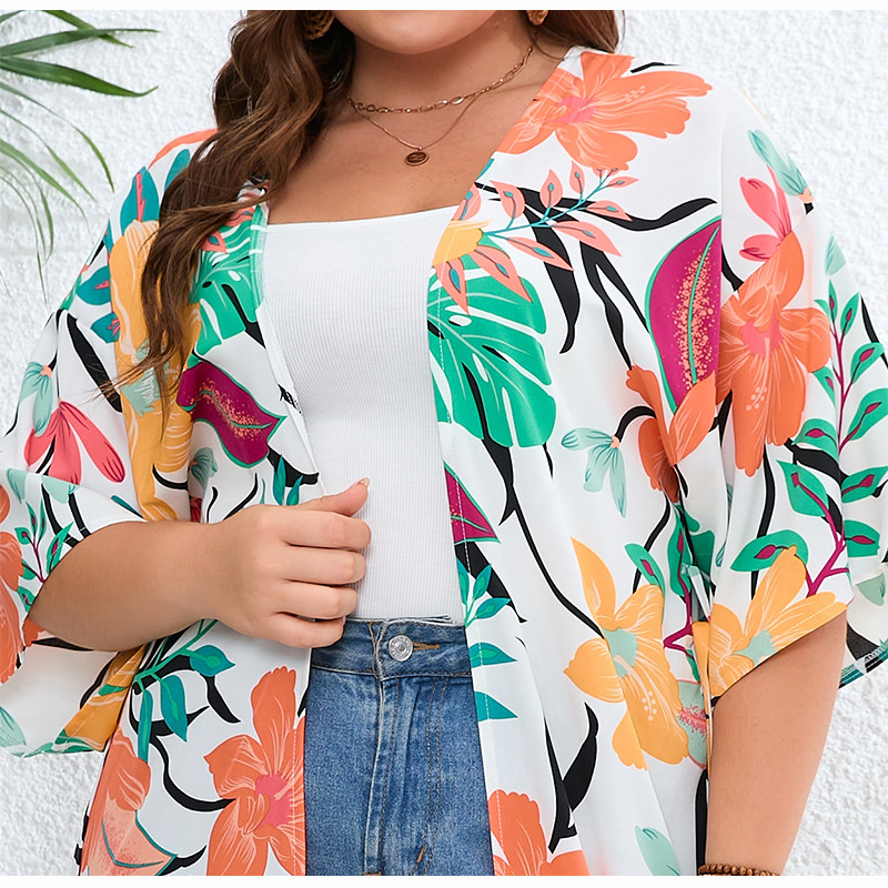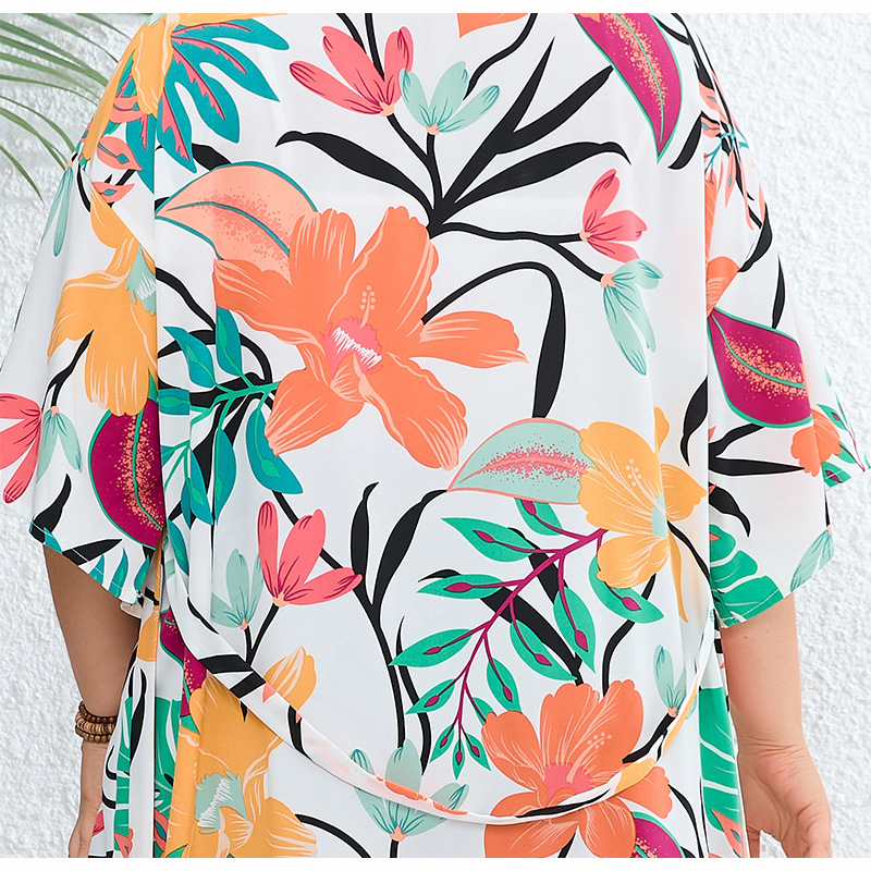 Plus Size Casual Vacation Sun Protection Clothing Bohemian Loose Printed Beach Shawl