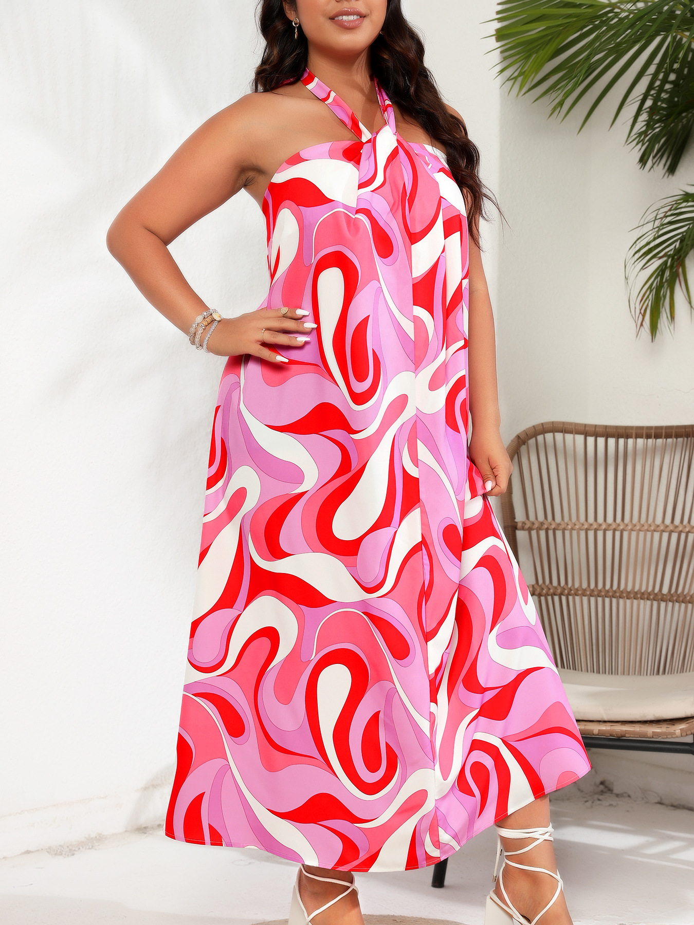 Plus Size Color Drawing Printing Long Halter Chest-Wrapped Dress