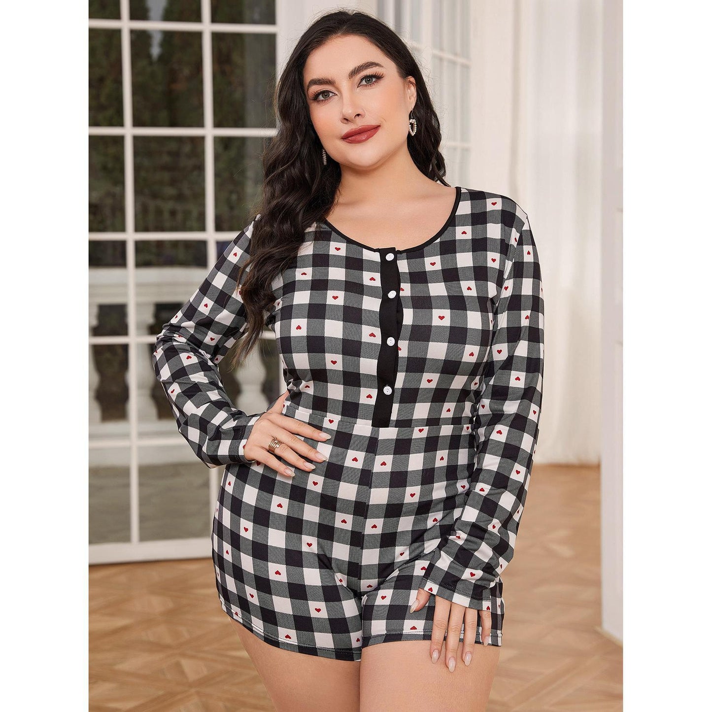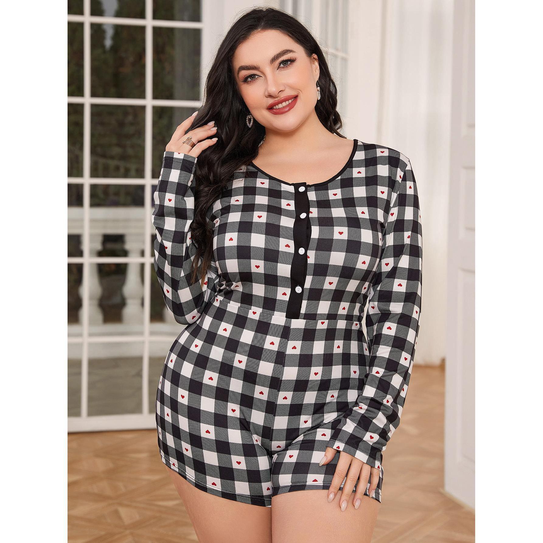 Plus Size Pajamas Women Spring Autumn Long Sleeve Siamese Home Wear Meike