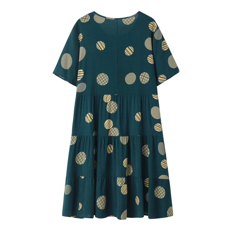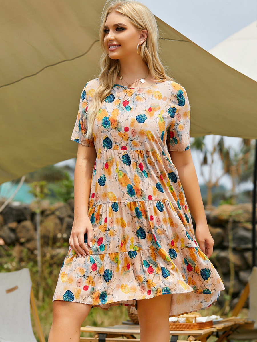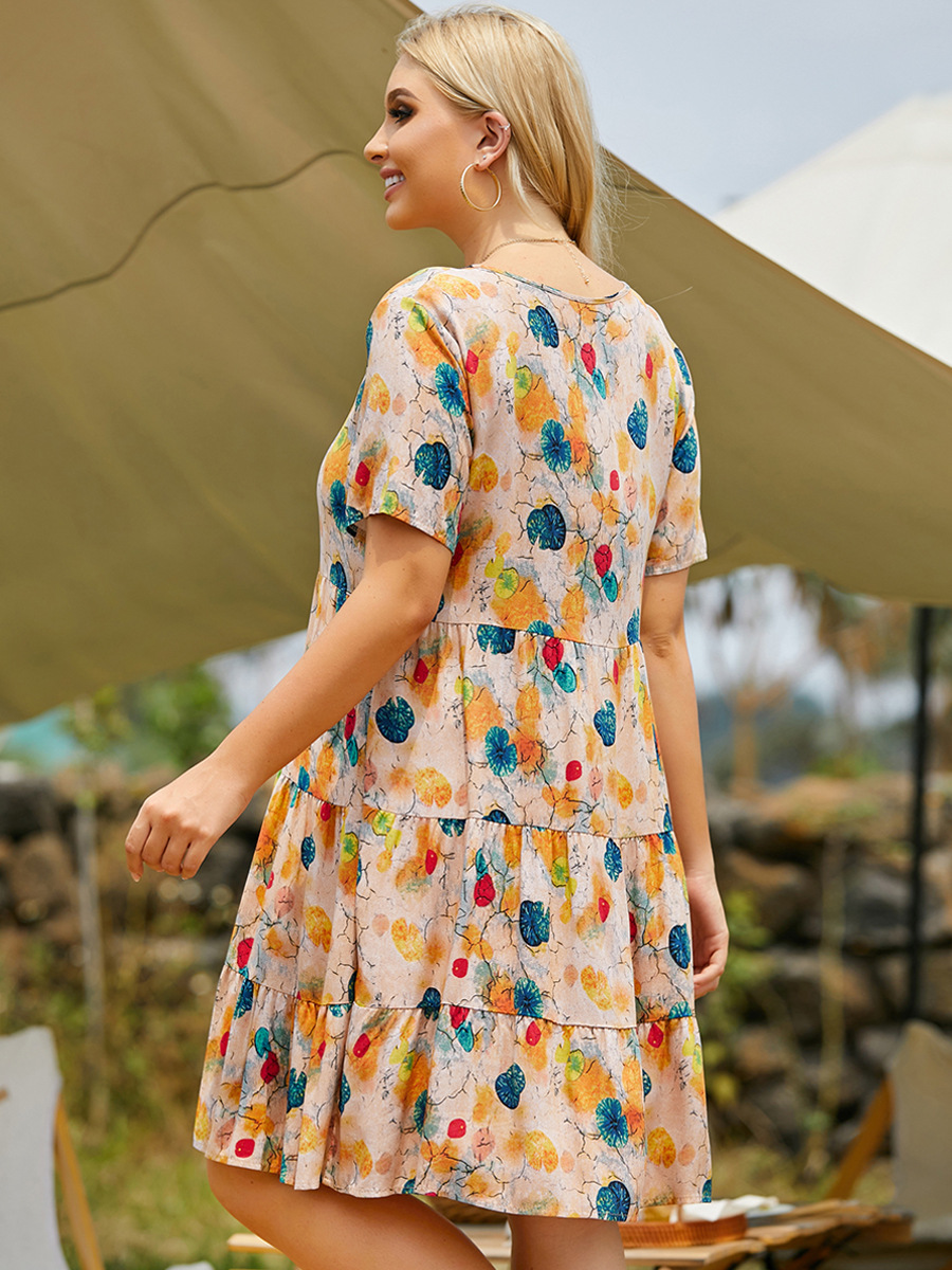 Plus Size Summer Casual round Neck Short Sleeves Printed Multi-Layer Stitching Big Swing Dress Dress