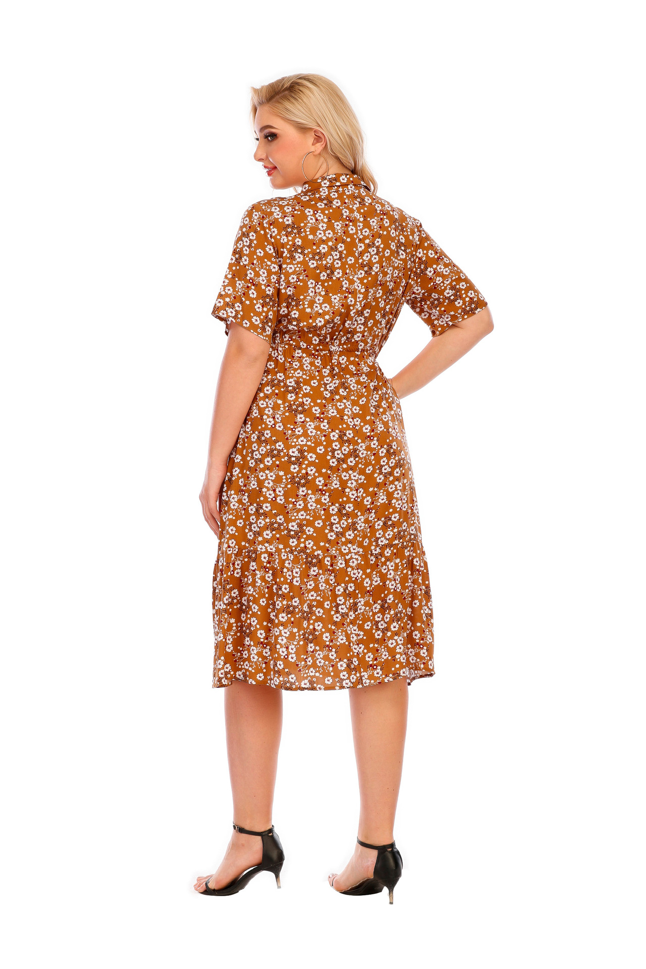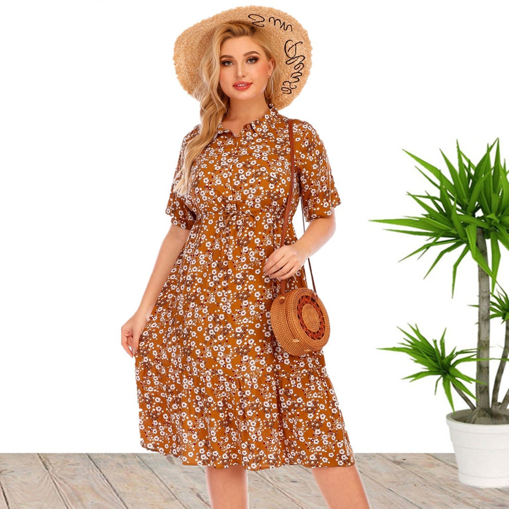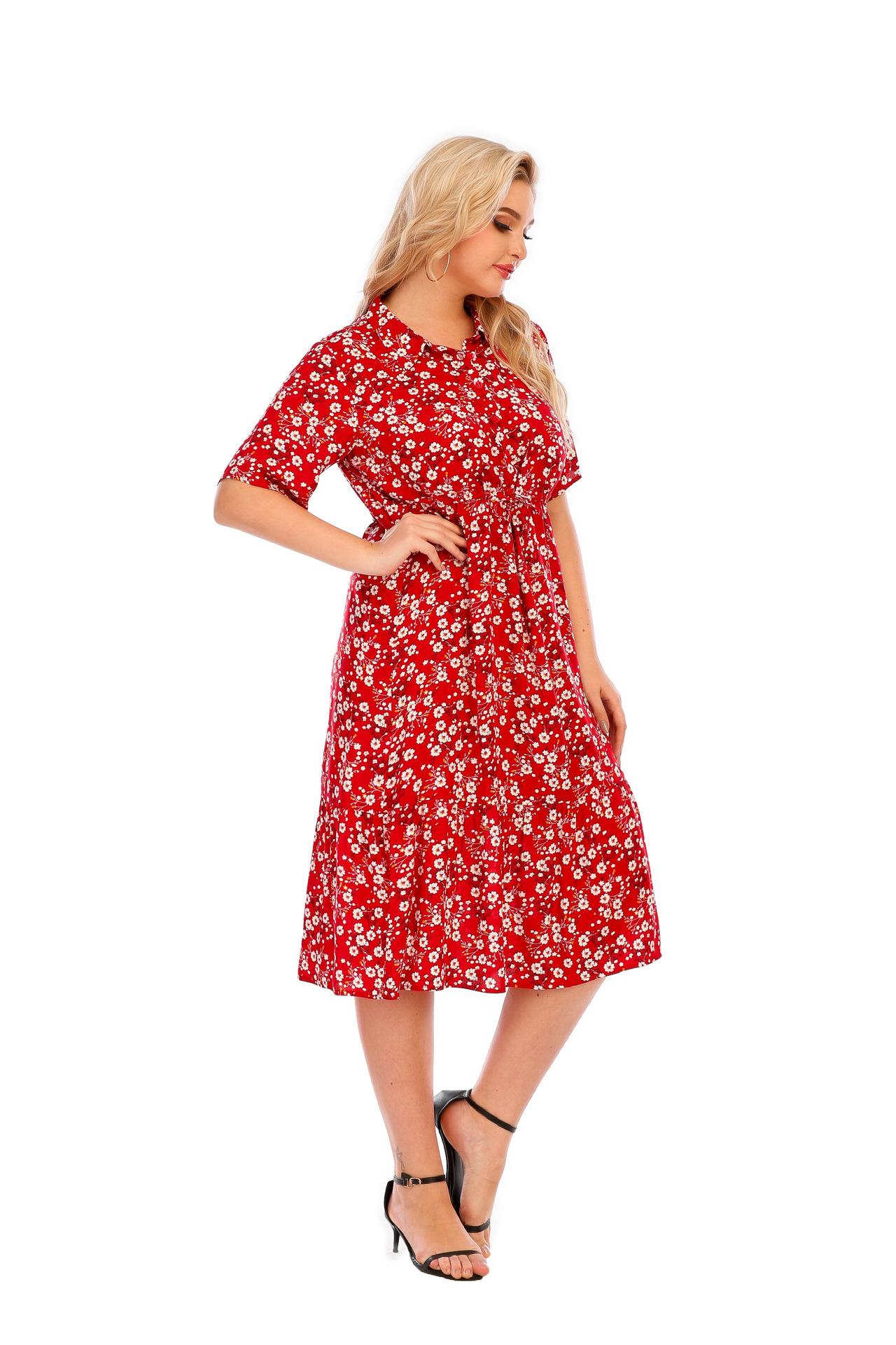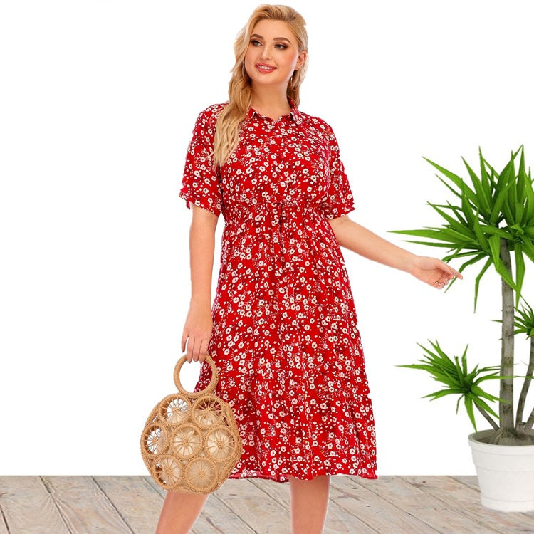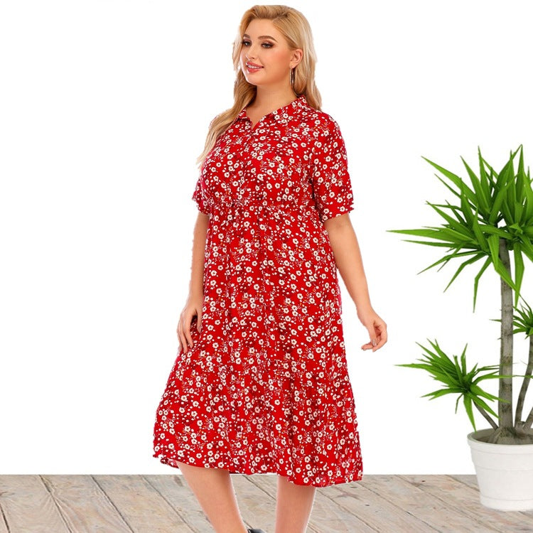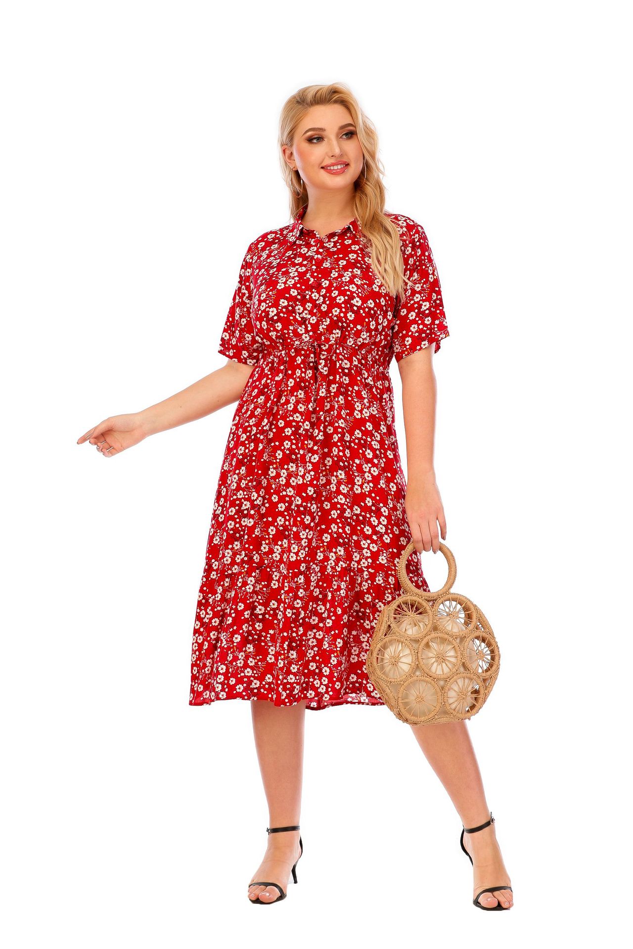 Plus Size Summer Women Clothes Short Sleeve Blouse Collar Printing Rayon Dress