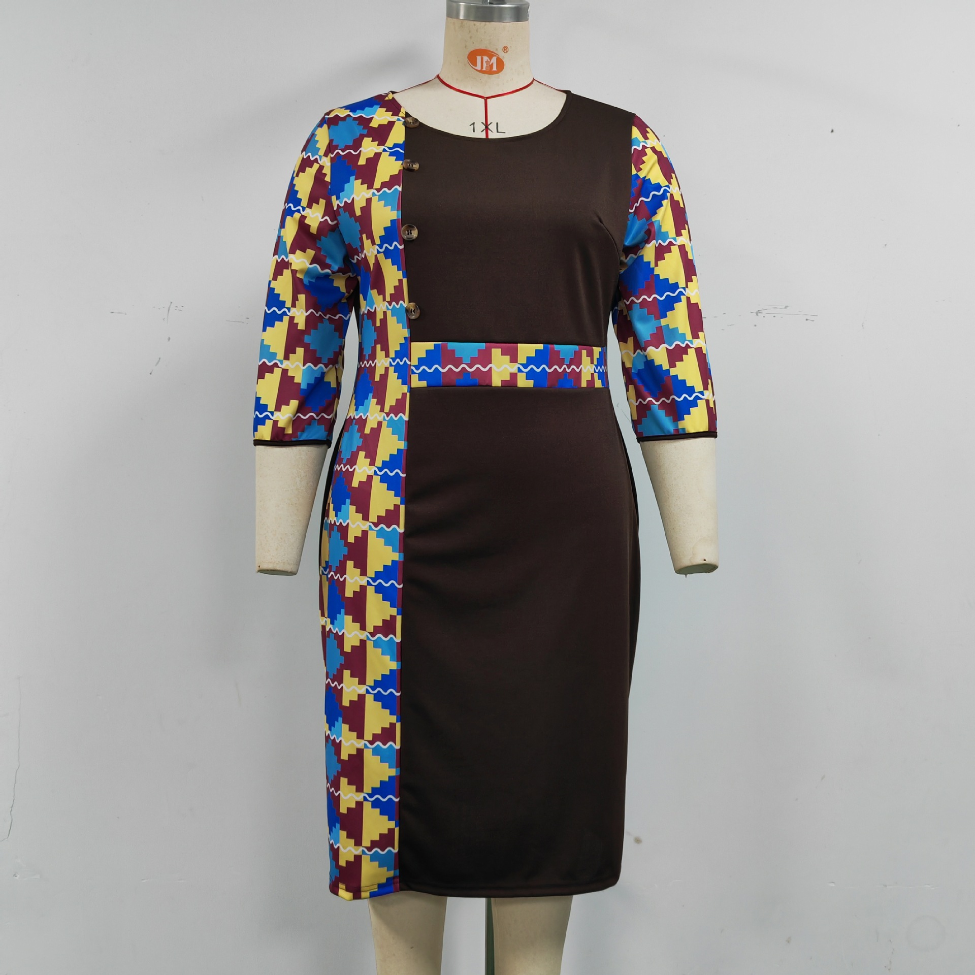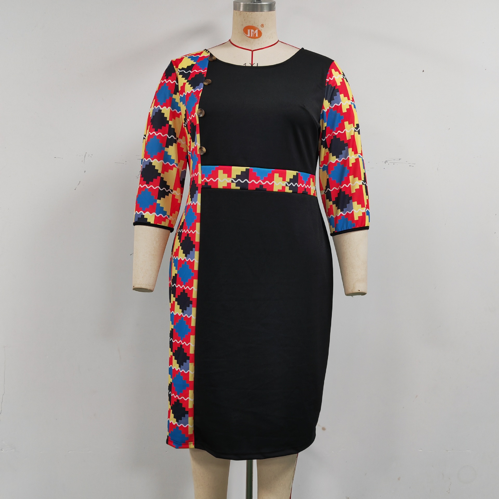 Plus Size Women Clothing Round Neck Sleeves Dress