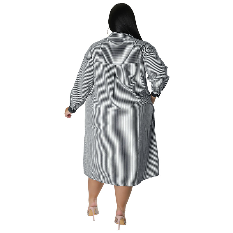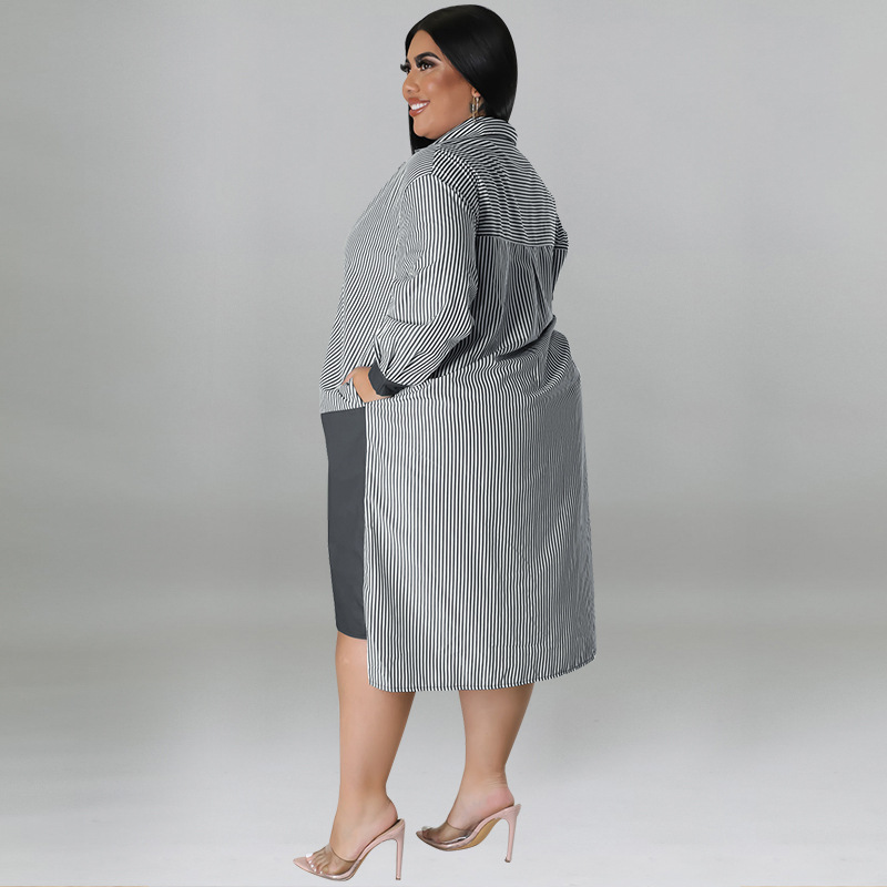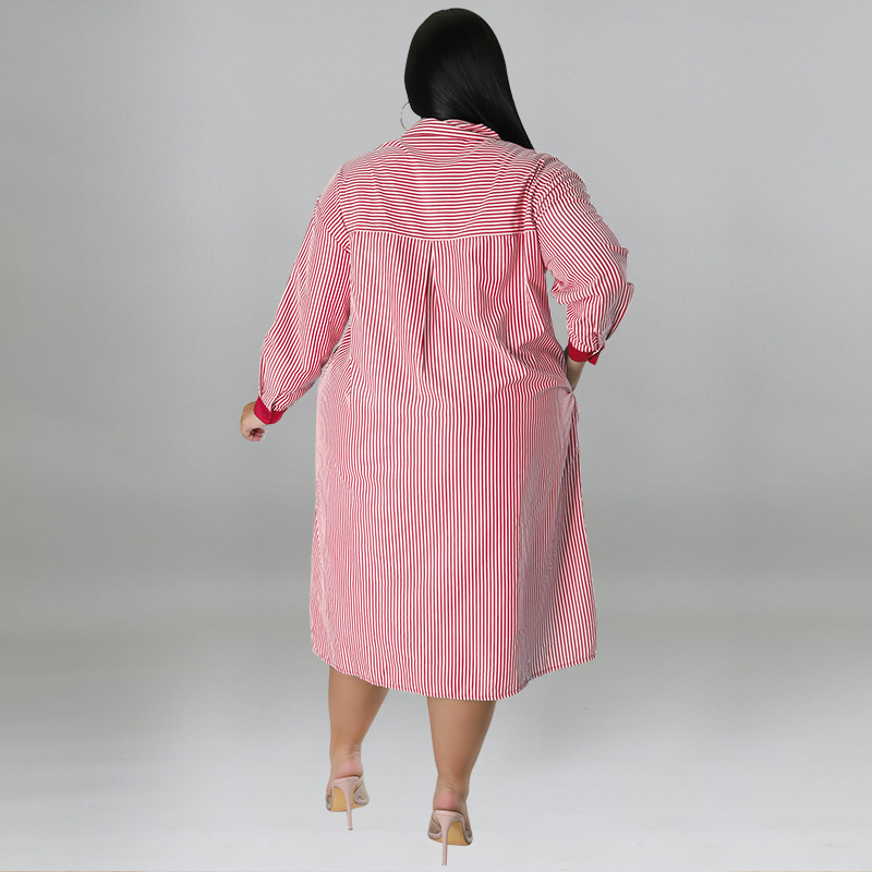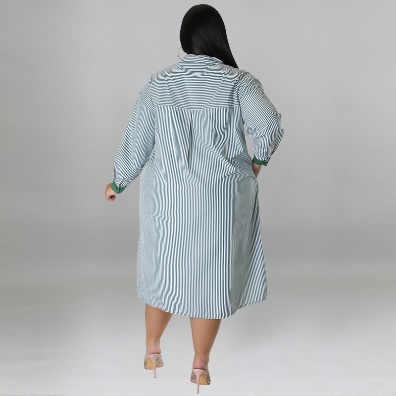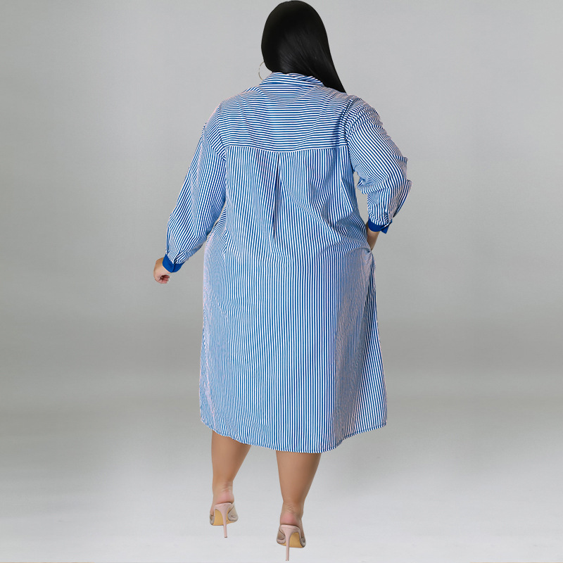 Plus Size Women Clothing Striped Long Sleeved Shirt Dresses