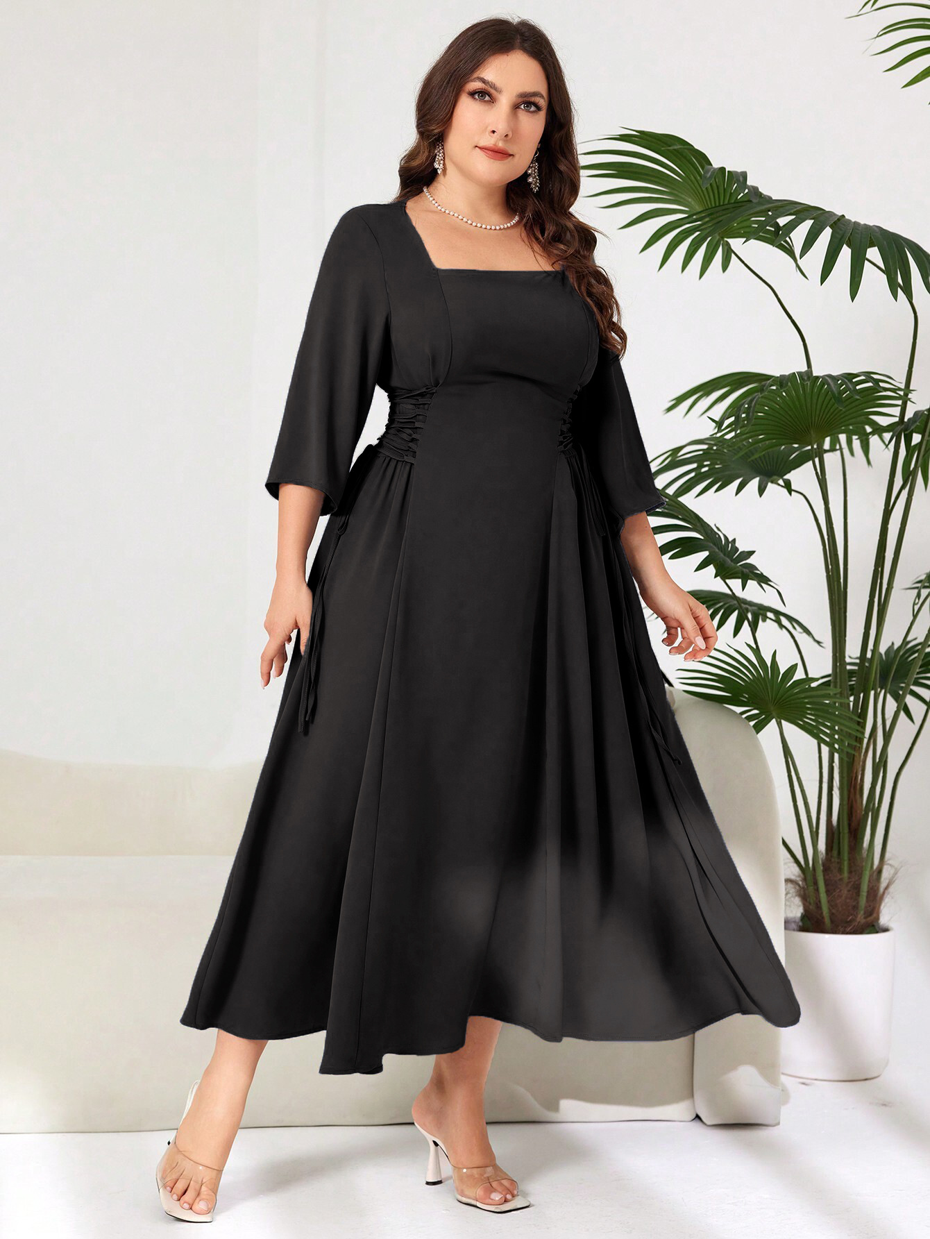 Plus Size Women Elegant Square Collar Dress Autumn Winter High Grade Age Reducing Design Mid Length Dress