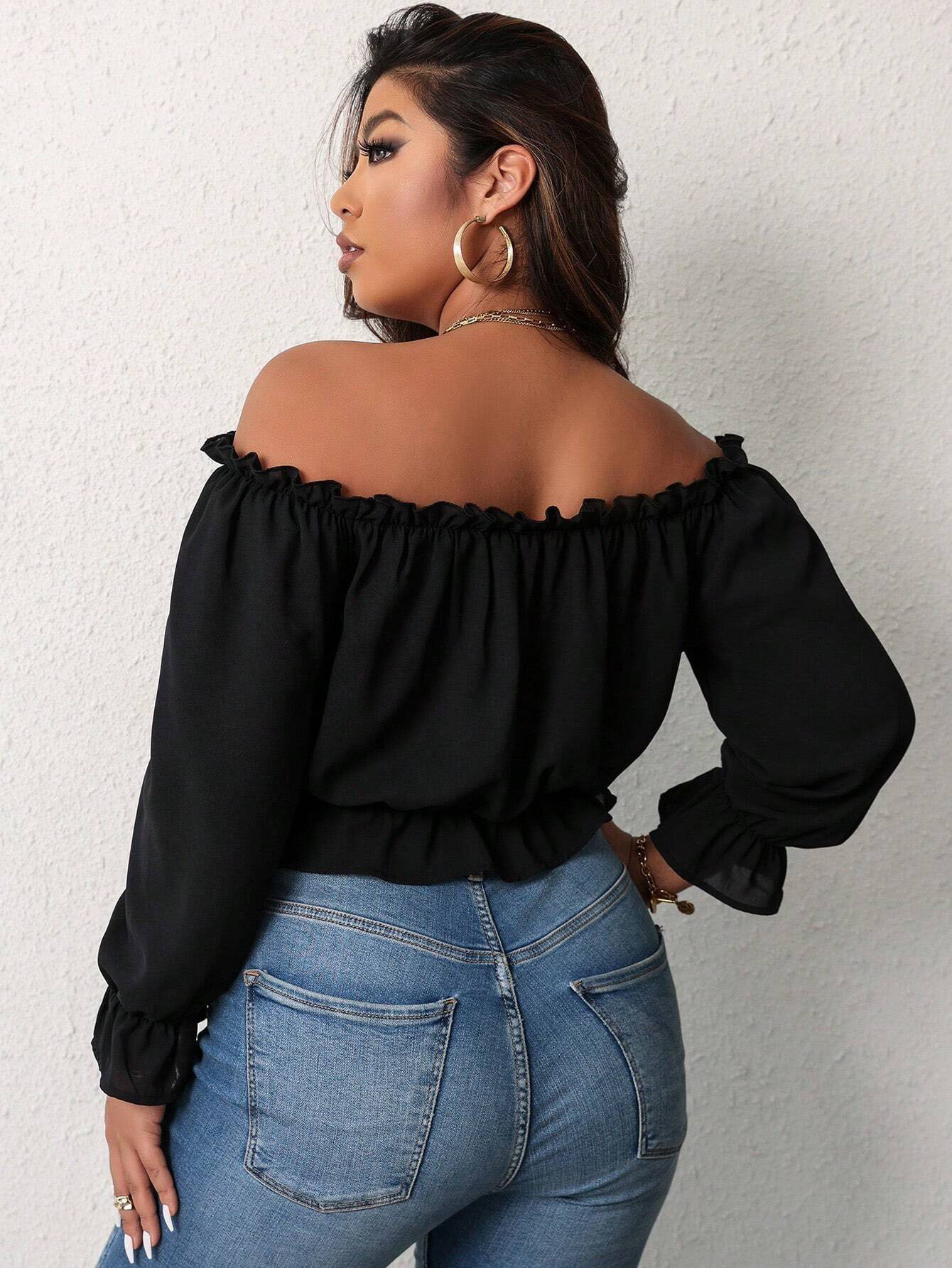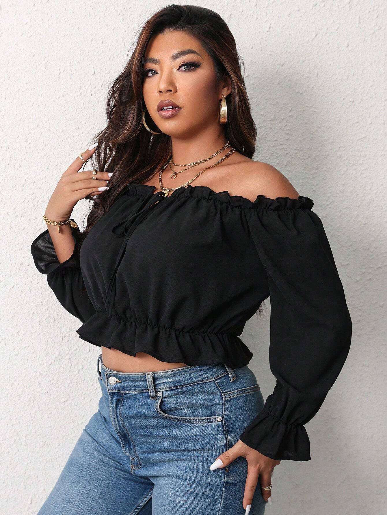 Plus Size Women High Cold Adult Lady like Woman T shirt Autumn Winter Boat Collar off Shoulder Slim Fit Crop Top