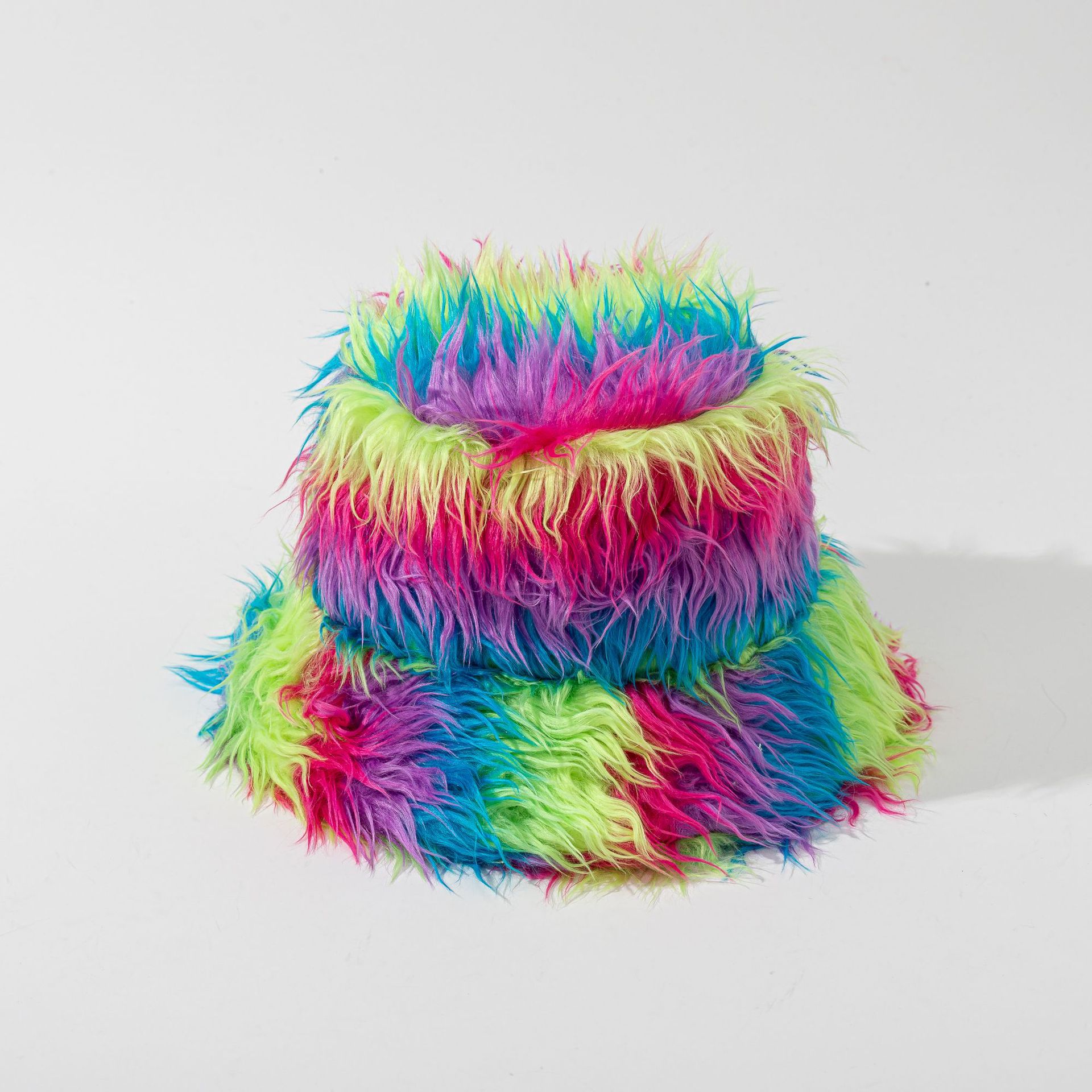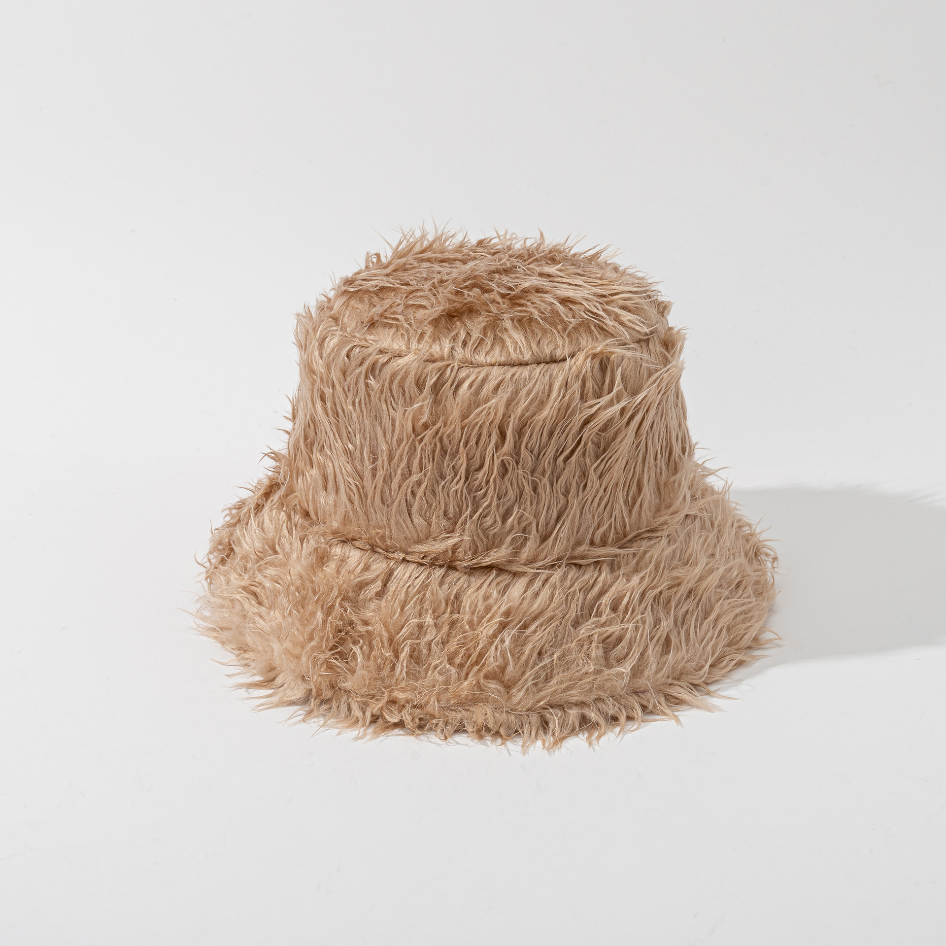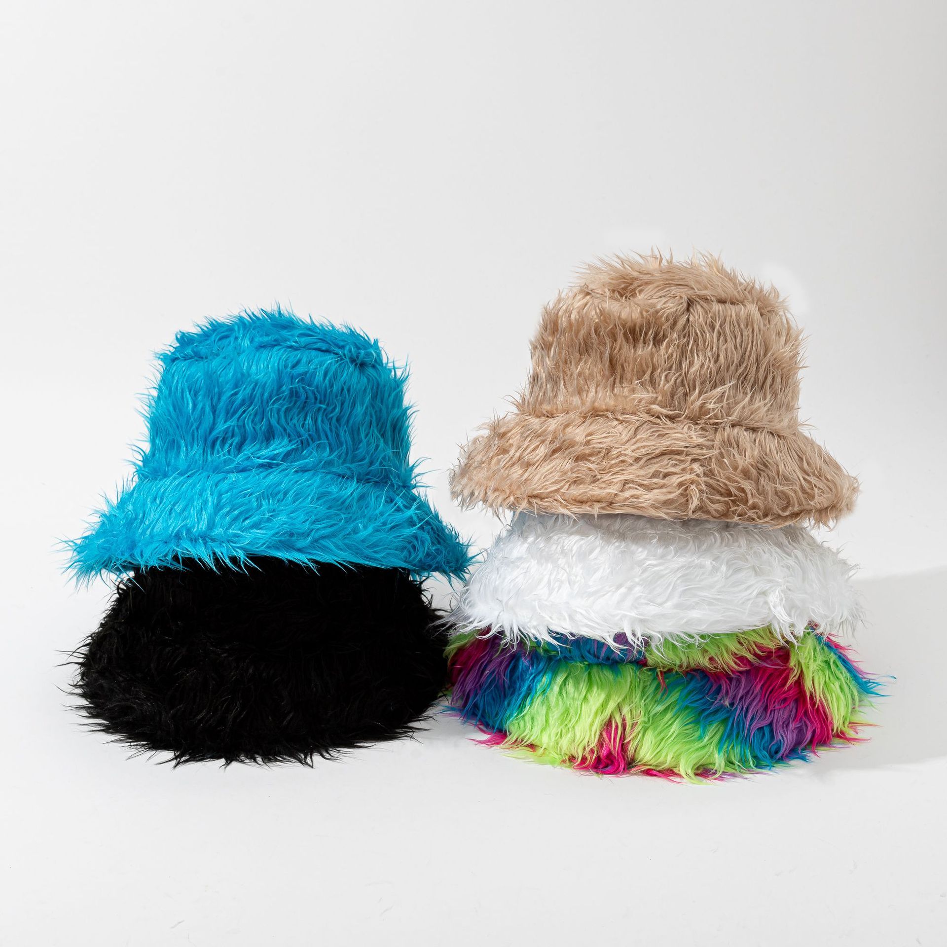 Plush Solid Color Fisherman Hat Long Hair Keep Warm Bucket Hat Personality Trend Bucket Hat