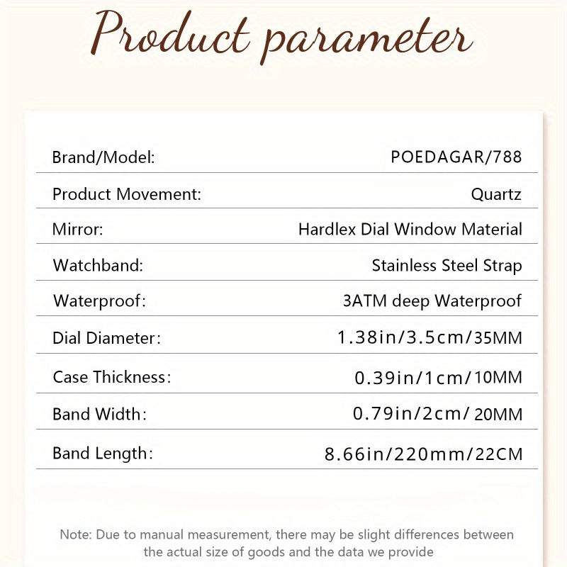 POEDAGAR Luxury High Quality Women's Watch Night Light Waterproof Women's Watch Stainless Steel Square Quartz Watch