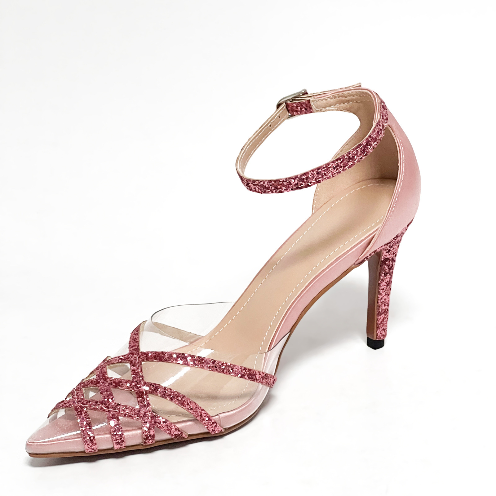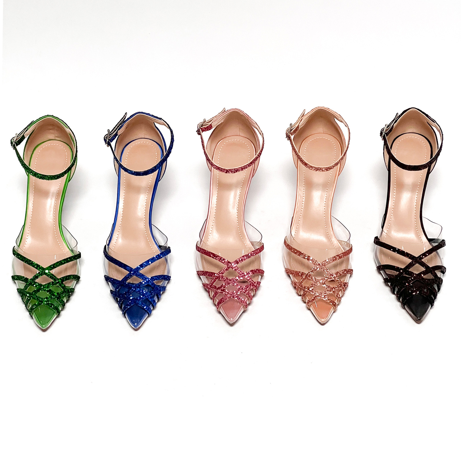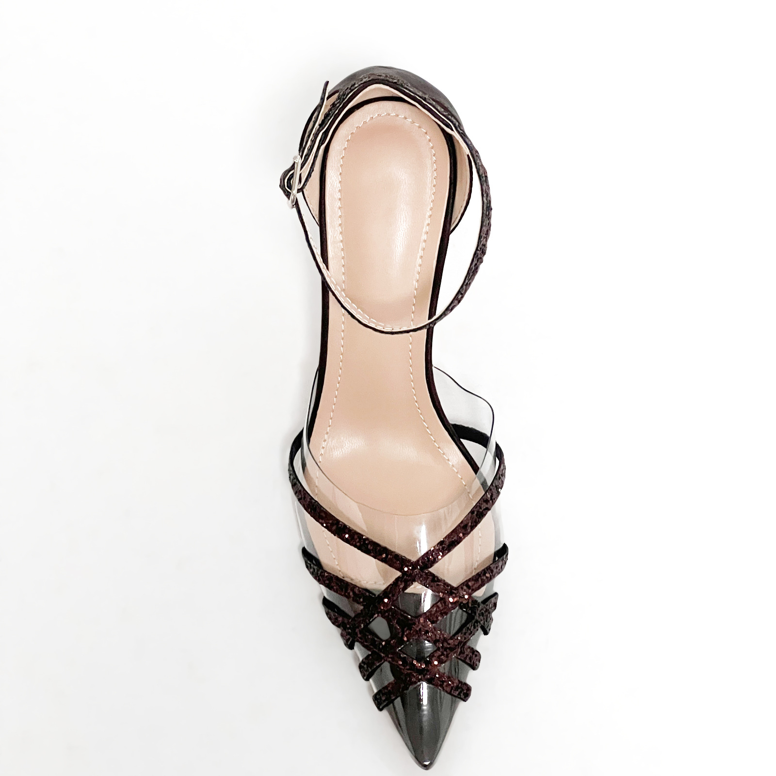 Pointed Toe Stiletto Color Block Transparent Upper Pumps 8.5cm Party Heels Women Shoes