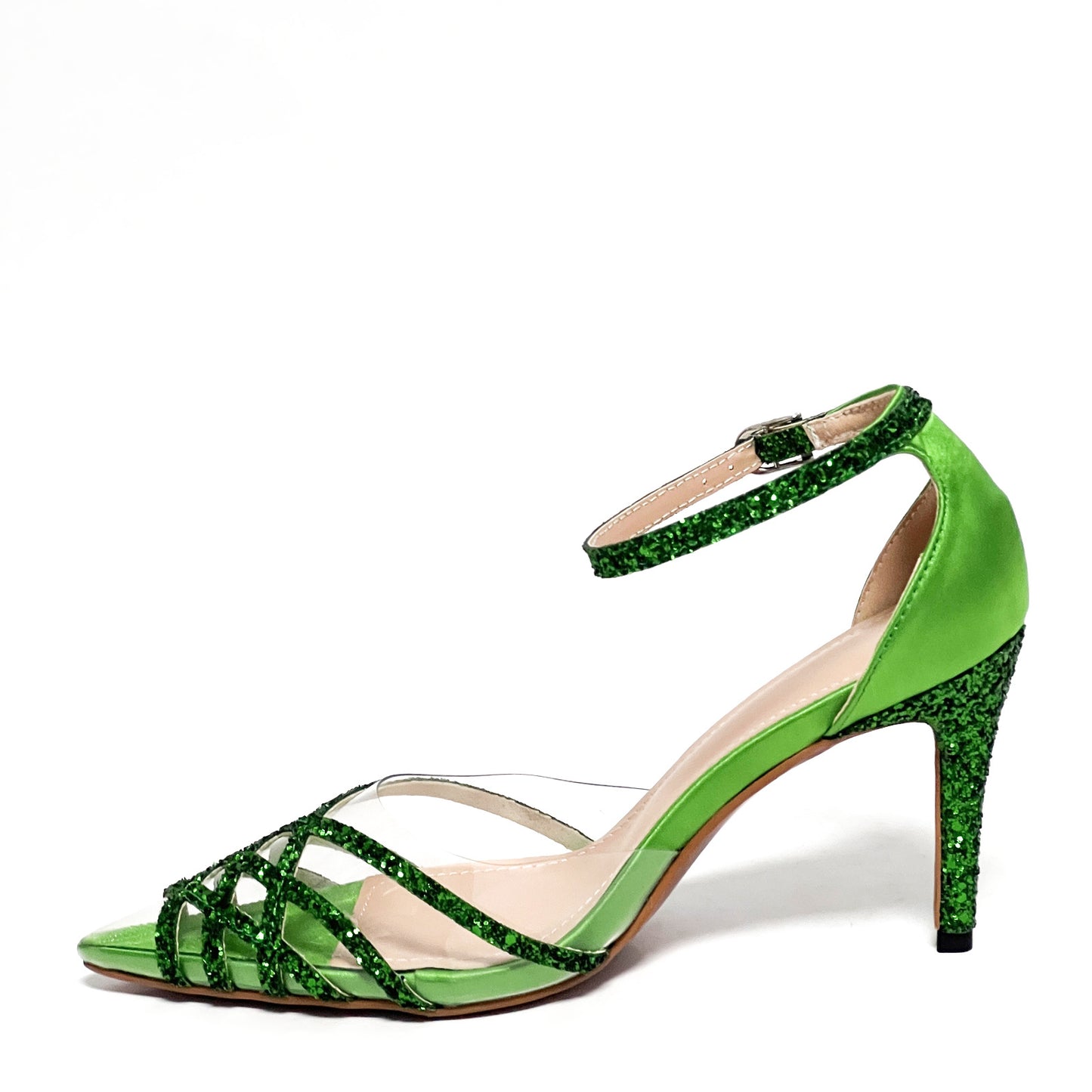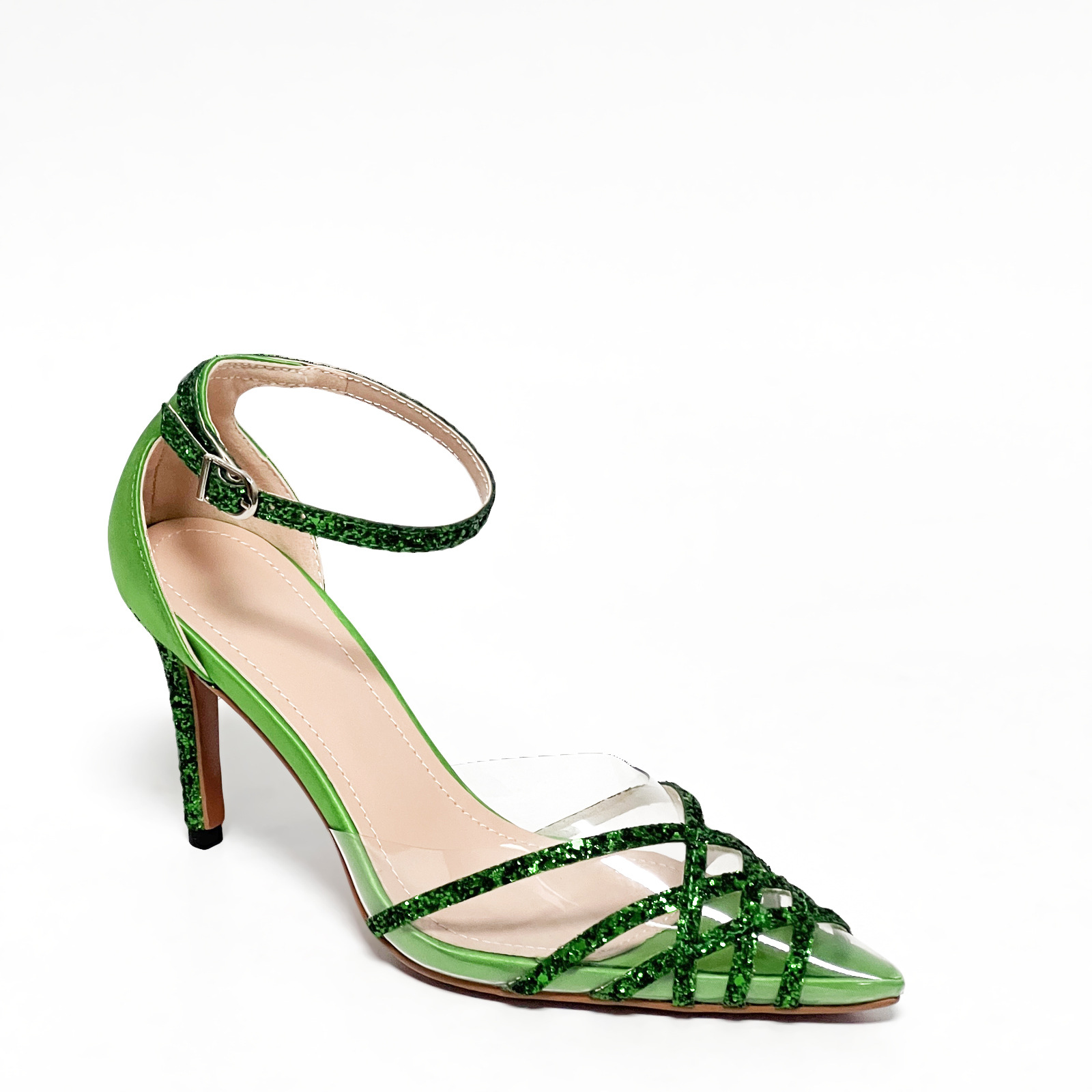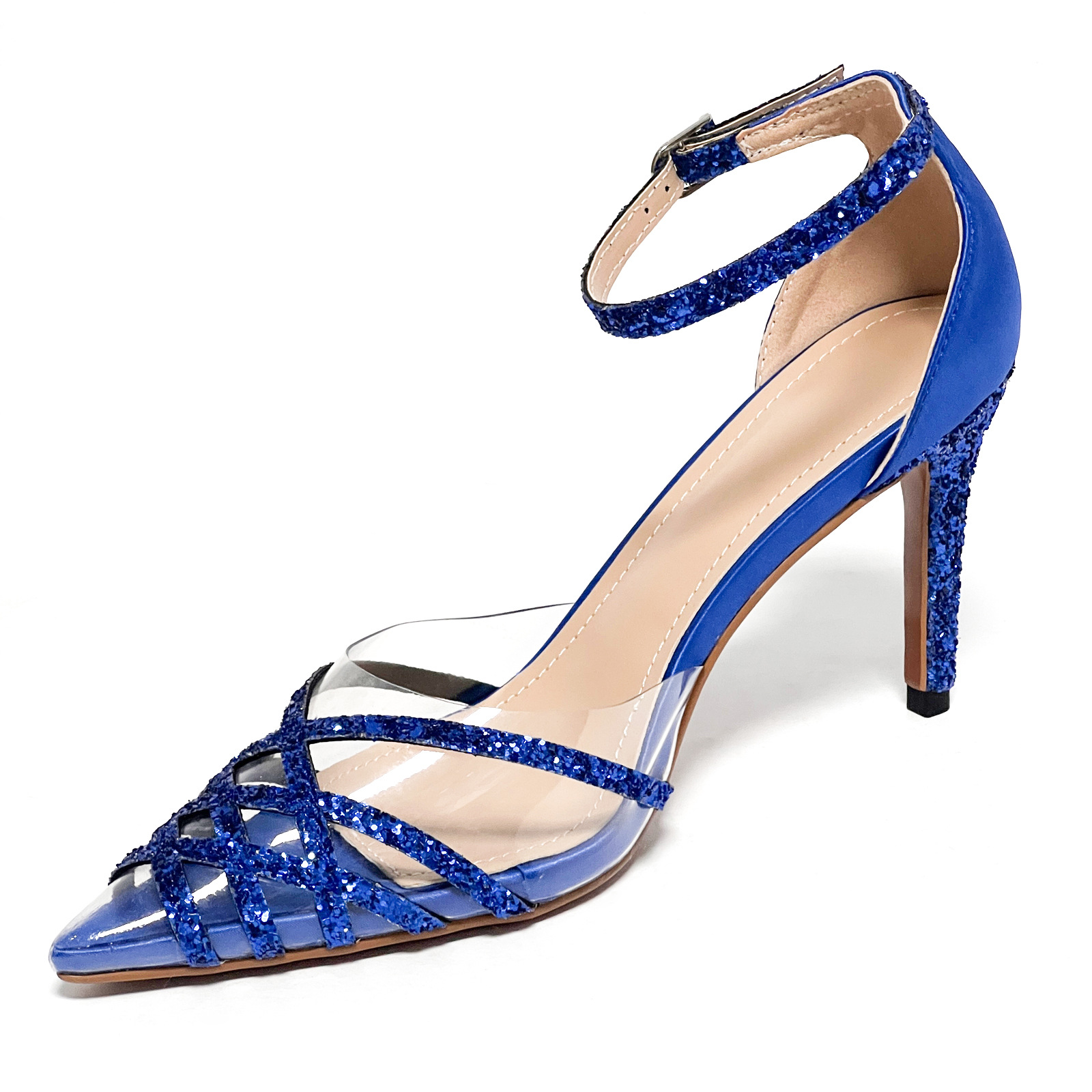 Pointed Toe Stiletto Color Block Transparent Upper Pumps 8.5cm Party Heels Women Shoes