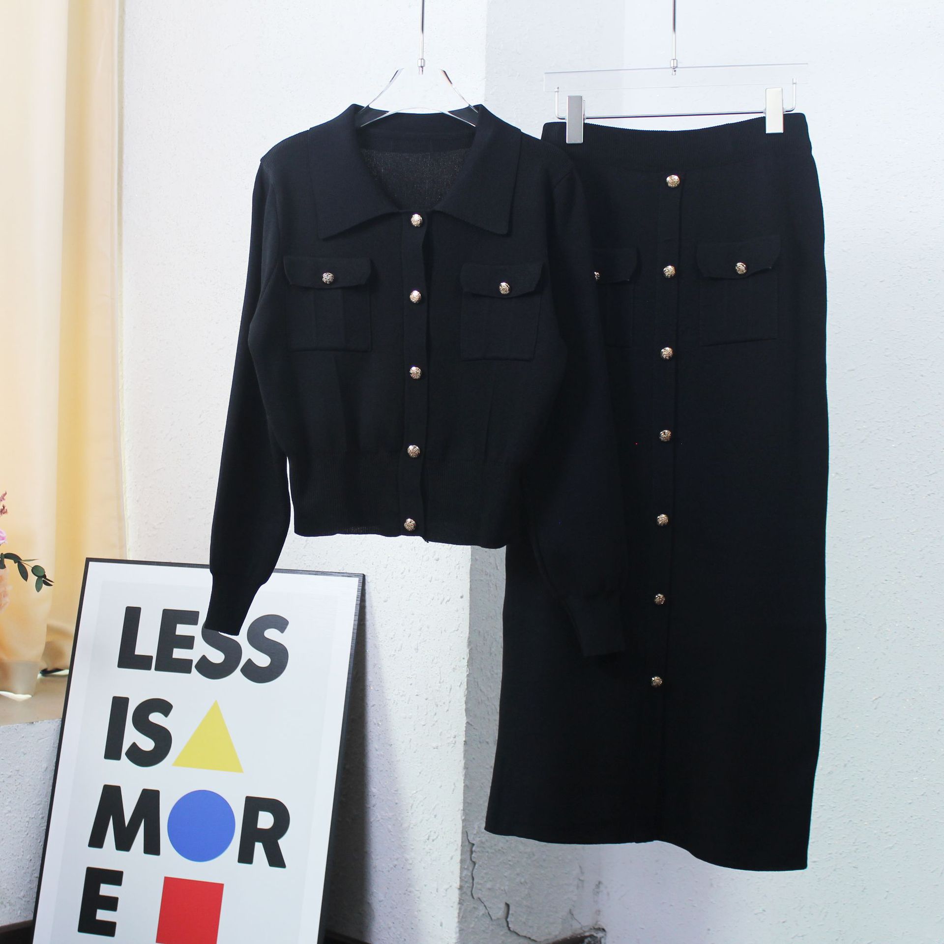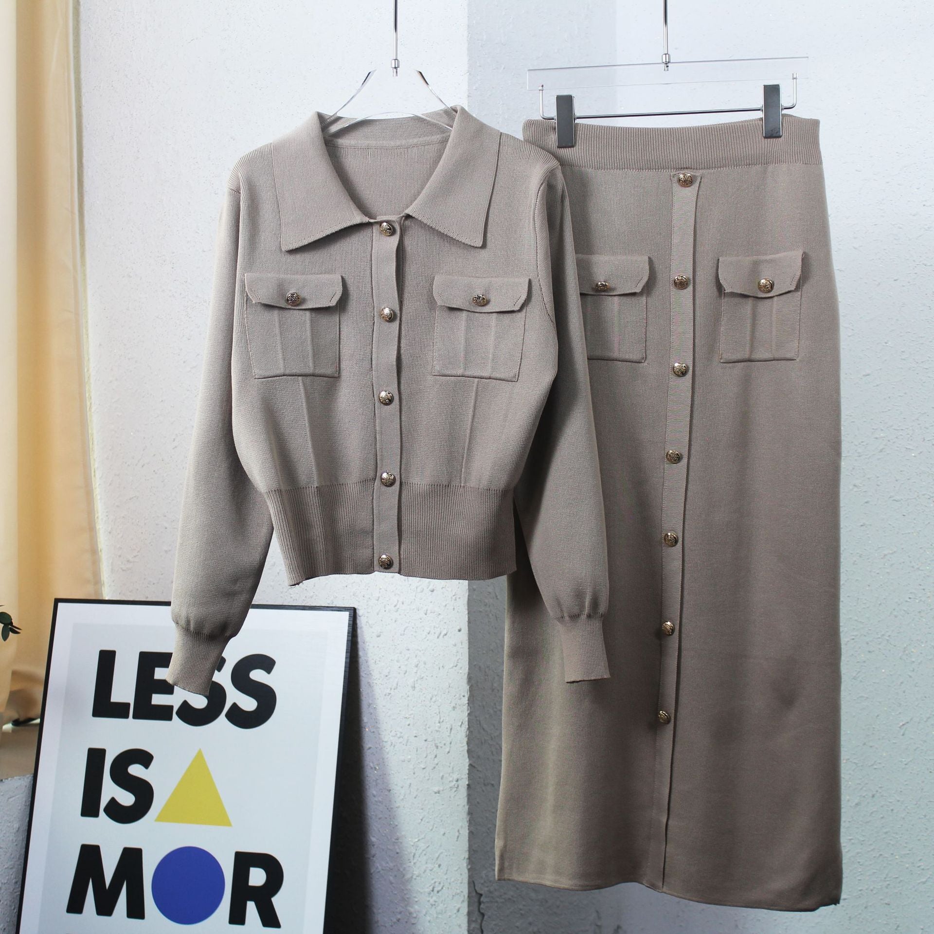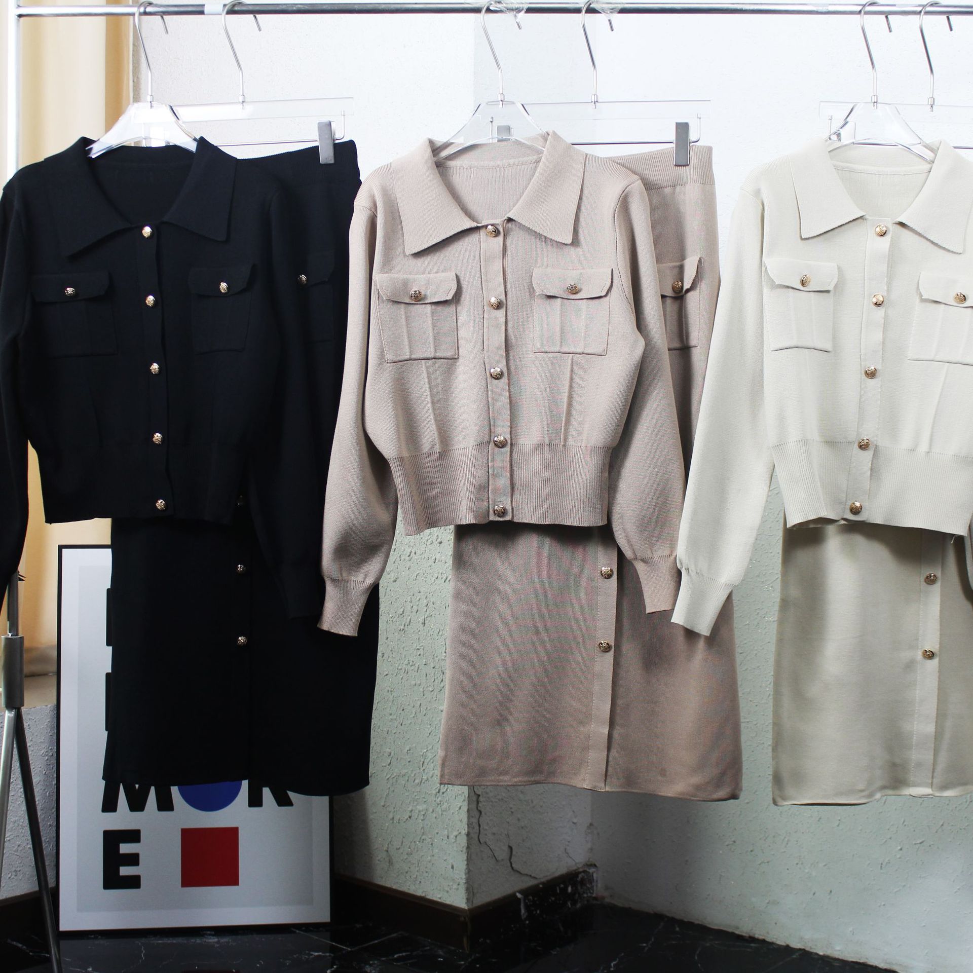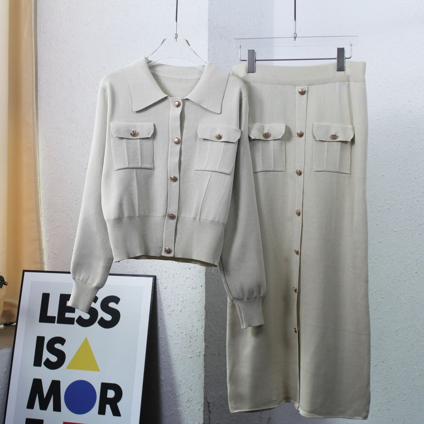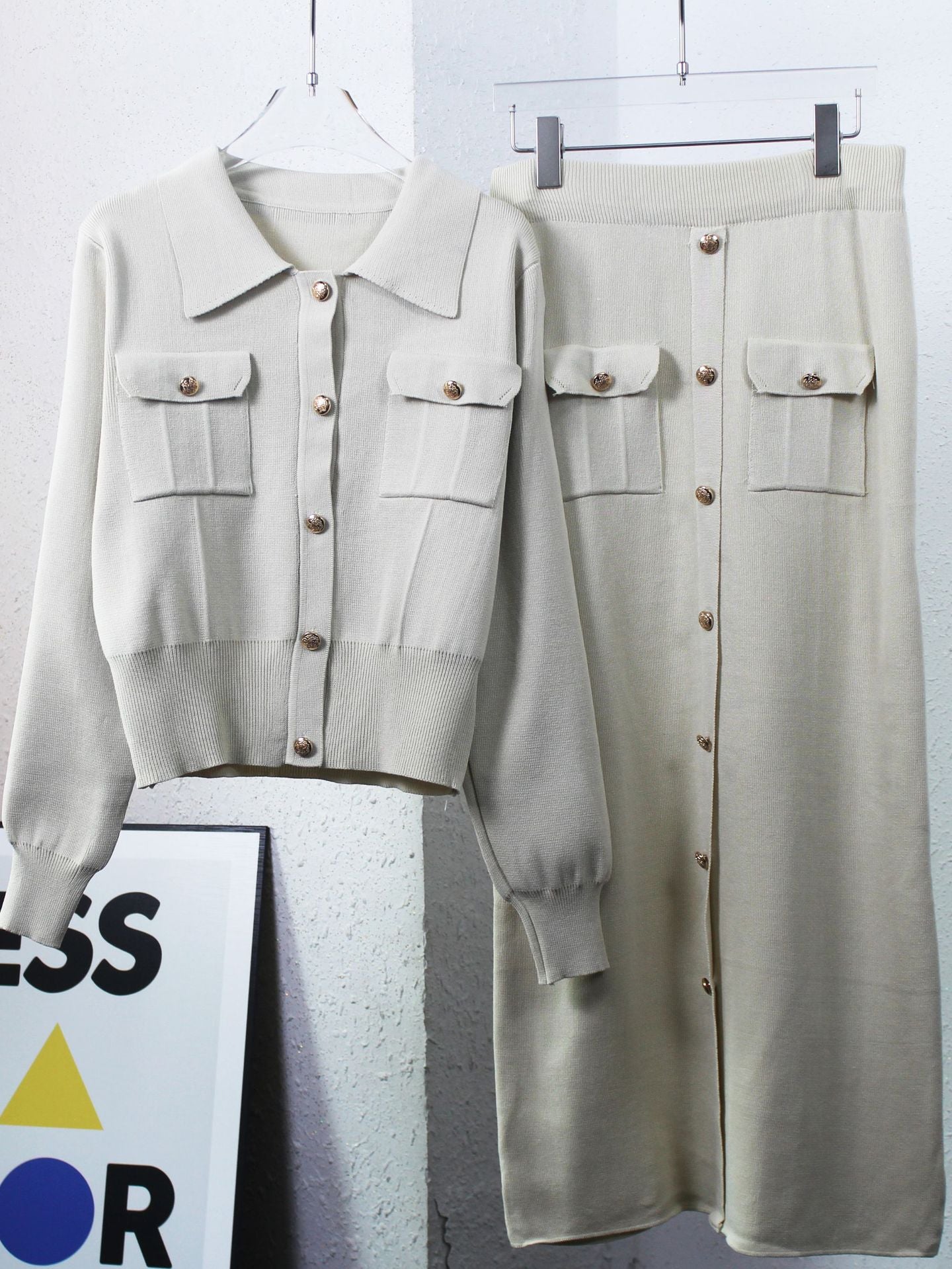Polo Collar Skirt Set Skirt Set Comfort Casual Knitted Two Piece