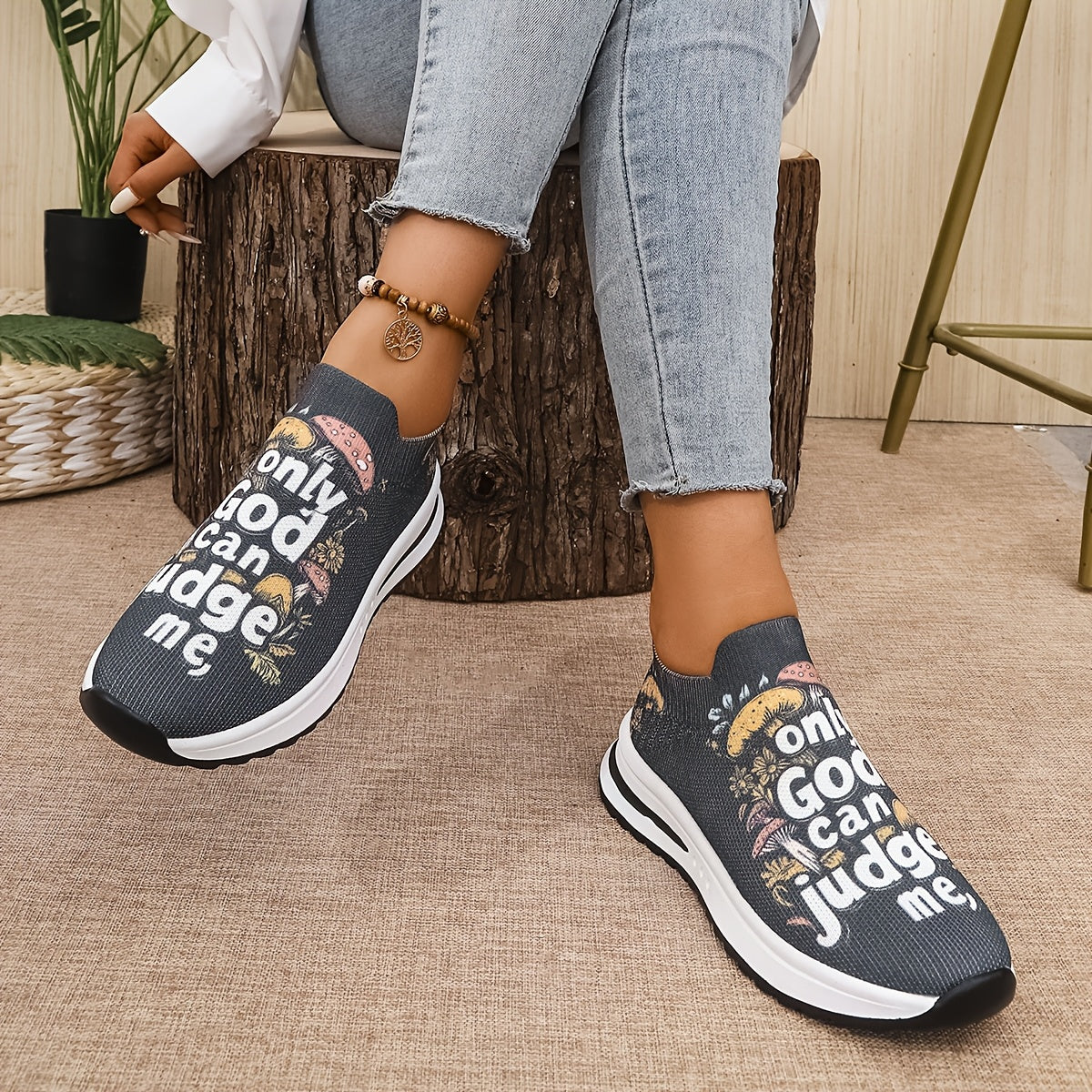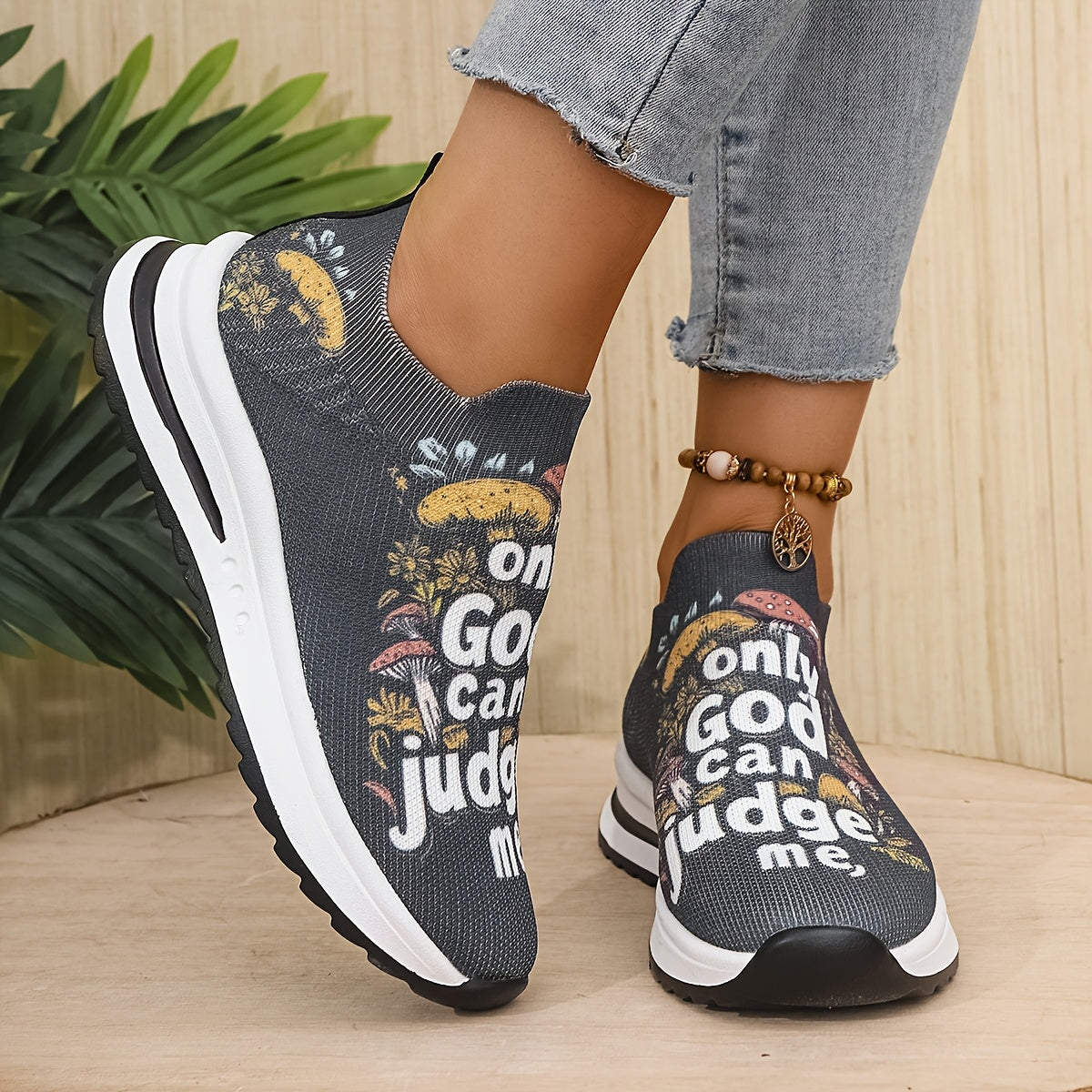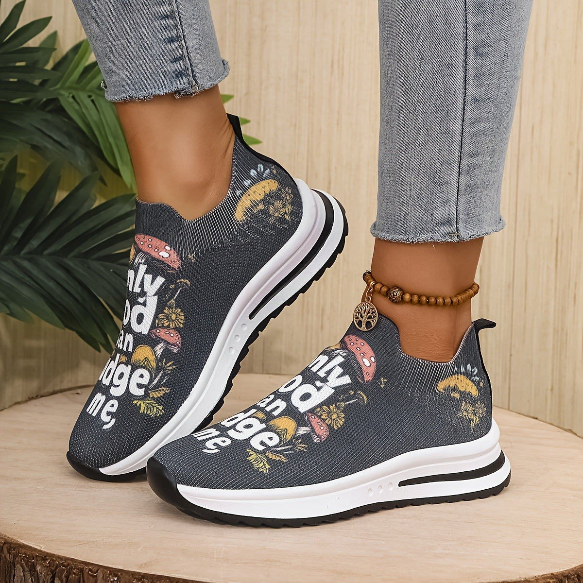 Popular Recommendation Letter Pattern Knit Casual Sneakers for Women, Sweat-Absorbent and Breathable, Eye-Catching Streetwear Unique Design