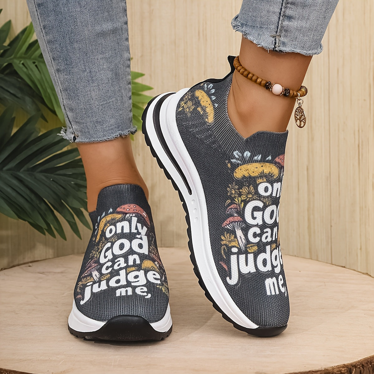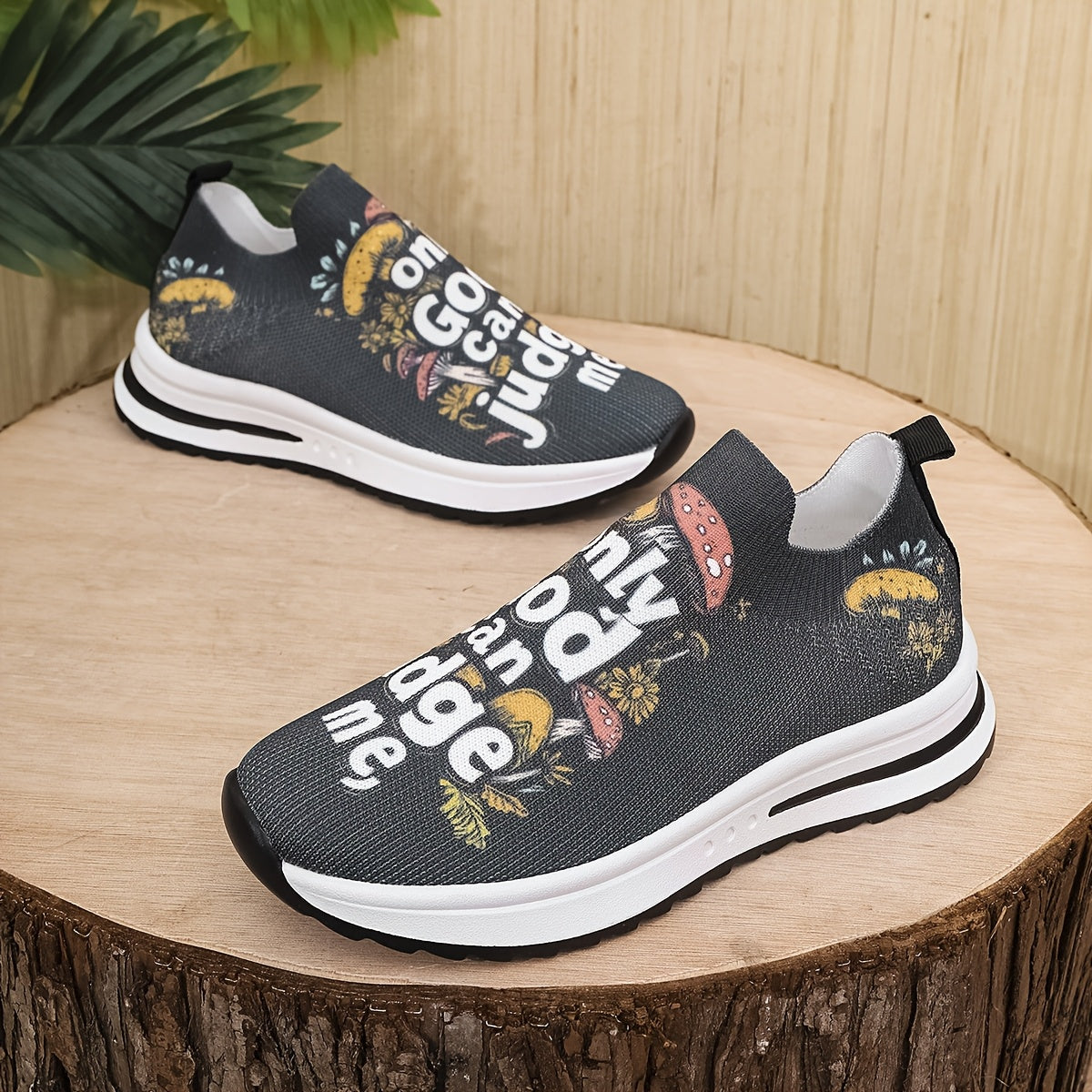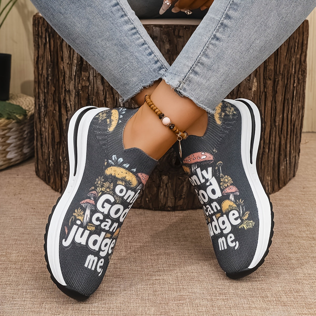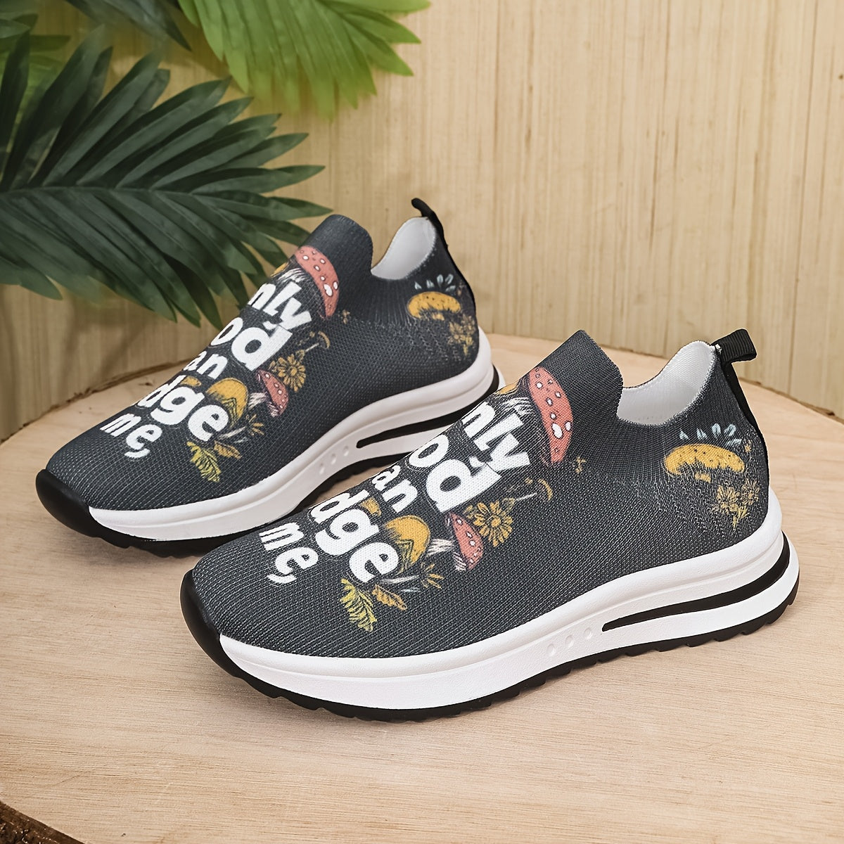 Popular Recommendation Letter Pattern Knit Casual Sneakers for Women, Sweat-Absorbent and Breathable, Eye-Catching Streetwear Unique Design