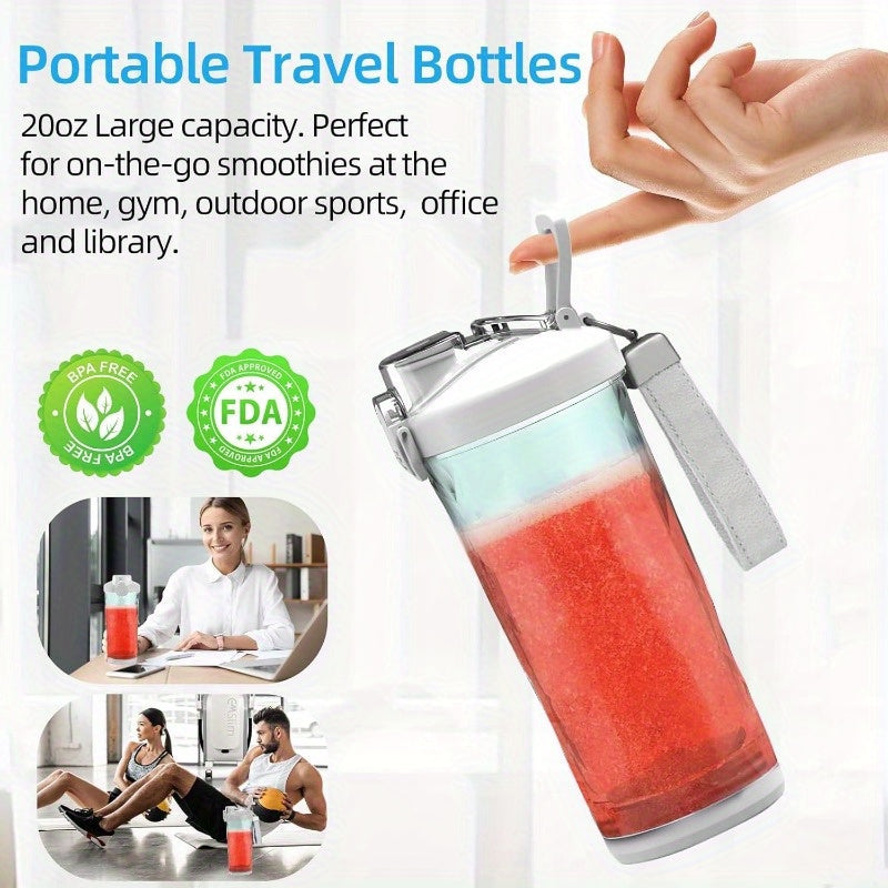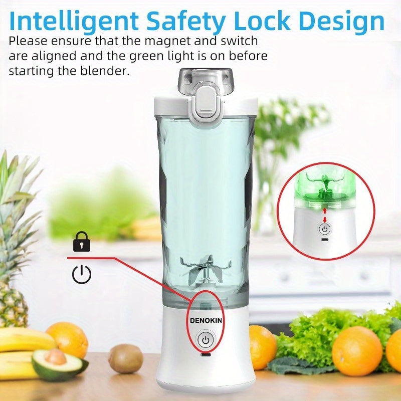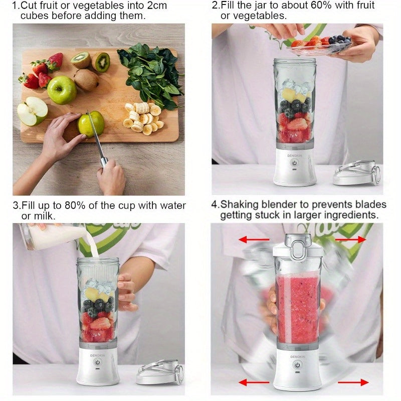 Portable Cordless Blender with 6 Blades - Powerful Personal Blender for Smoothies, Shakes, Ice, Travel & Home Use - Compact Design, No Outlet Needed - Ideal for Gym, Office, Camping, Dorm - Easy-Clean Blades - White/Gray, Gym Smoothie Maker, Stylish Appli