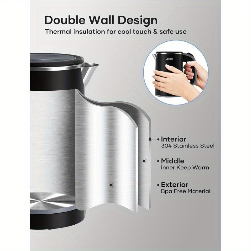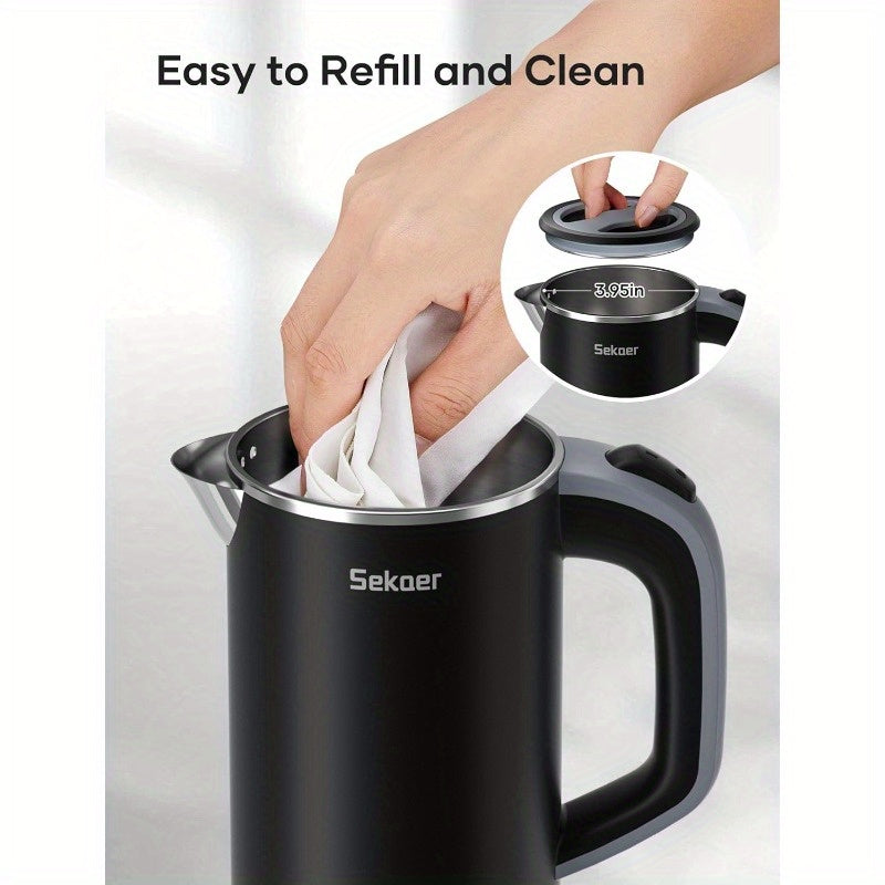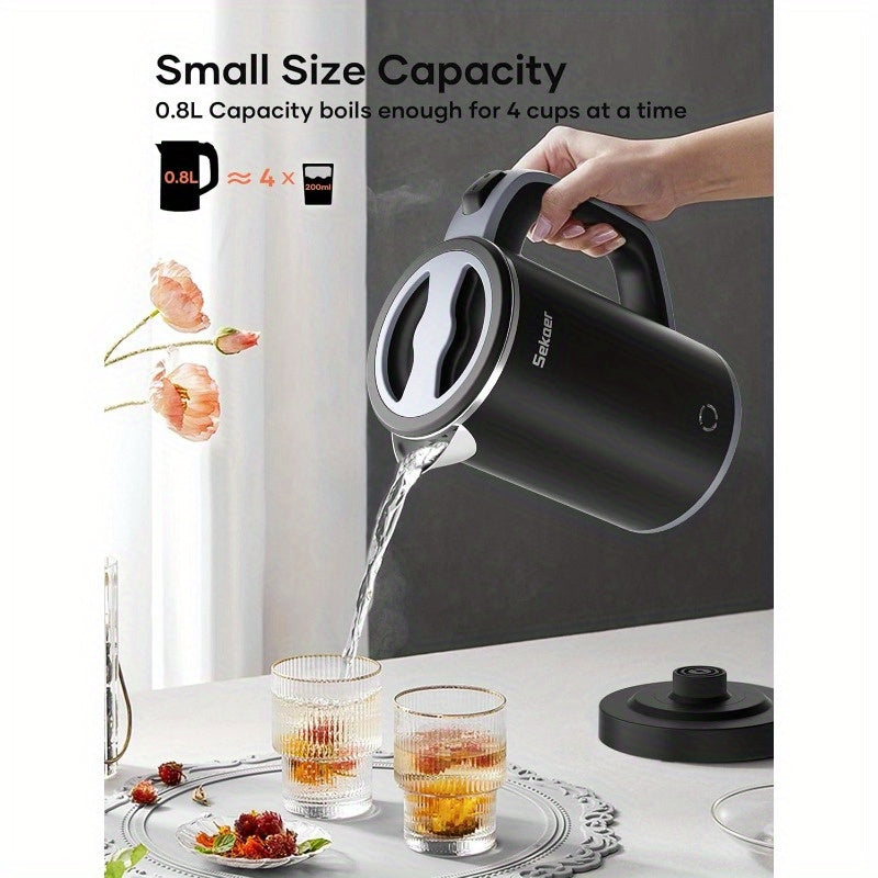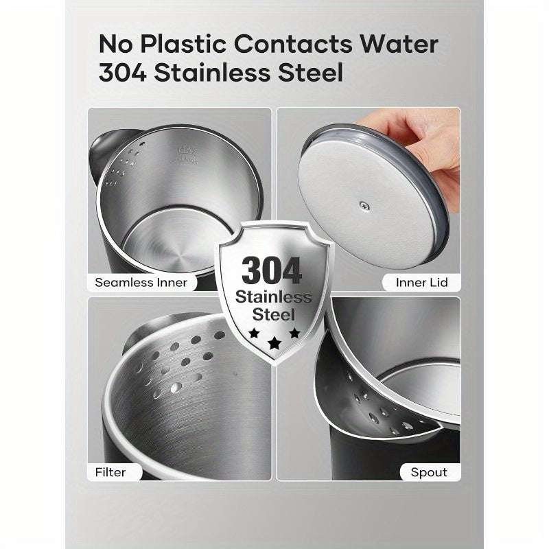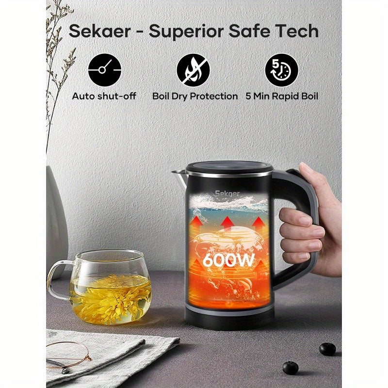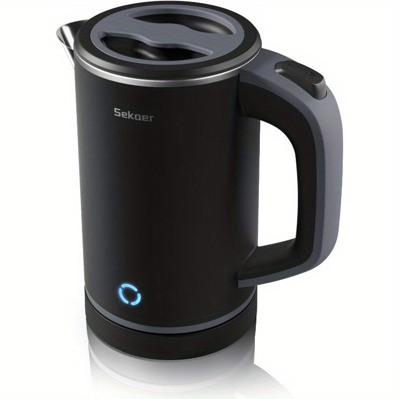 Portable Electric Tea Kettle with Auto Shut-Off & Boil-Dry Protection, Cordless Base, LED Indicator, Stainless Steel Construction - Compact Travel Kettle for Home, Office, Camping, Dorm - Safe, Energy-Efficient Electric Hot Water Boiler, Office Essentials