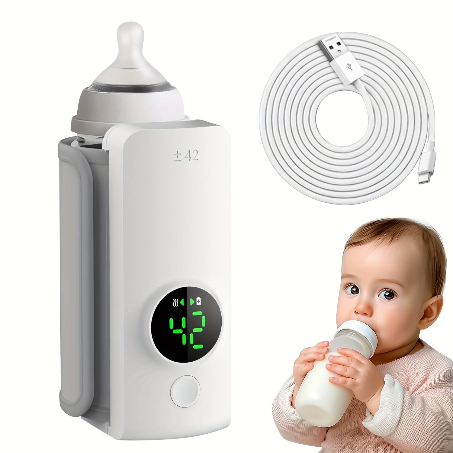 Portable USB Rechargeable Baby Milk Warmer - Moclever 6-Level Adjustable Temperature, Digital Display, Compact Design for Breastmilk Heating in Travel, On-the-Go Feeding, Easy-Use Button, Durable Plastic Body
