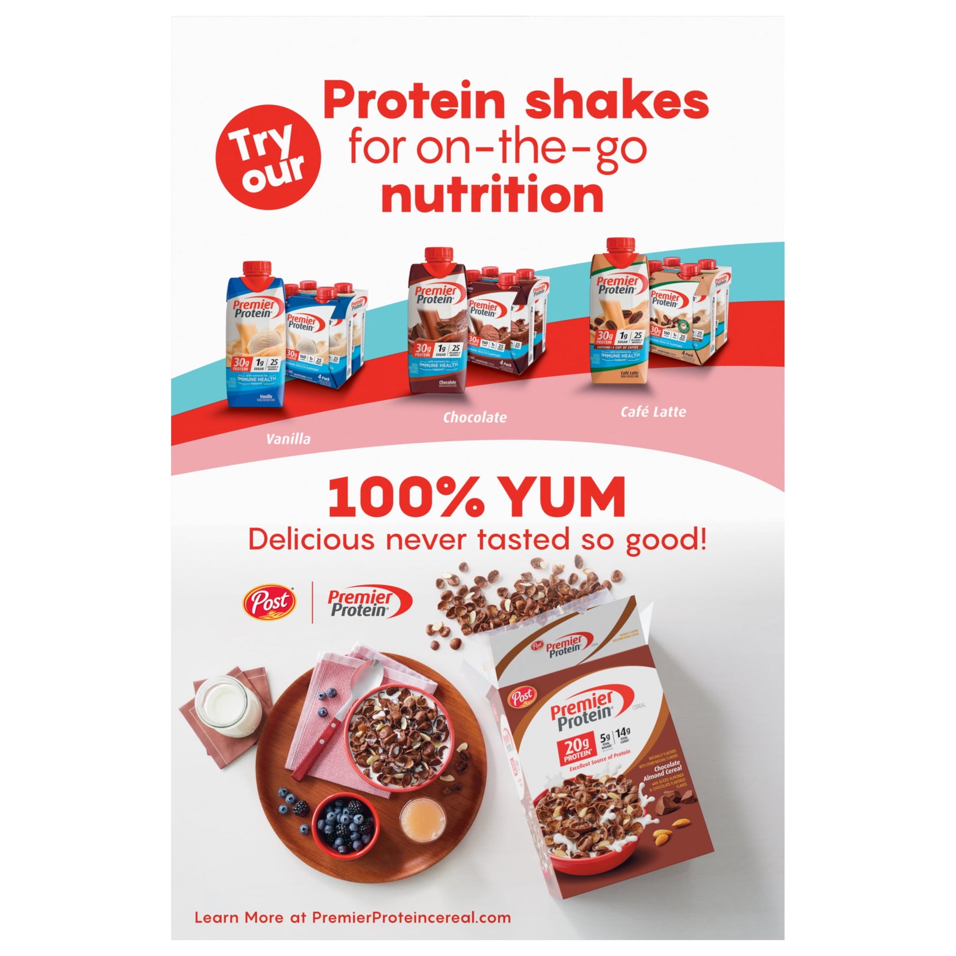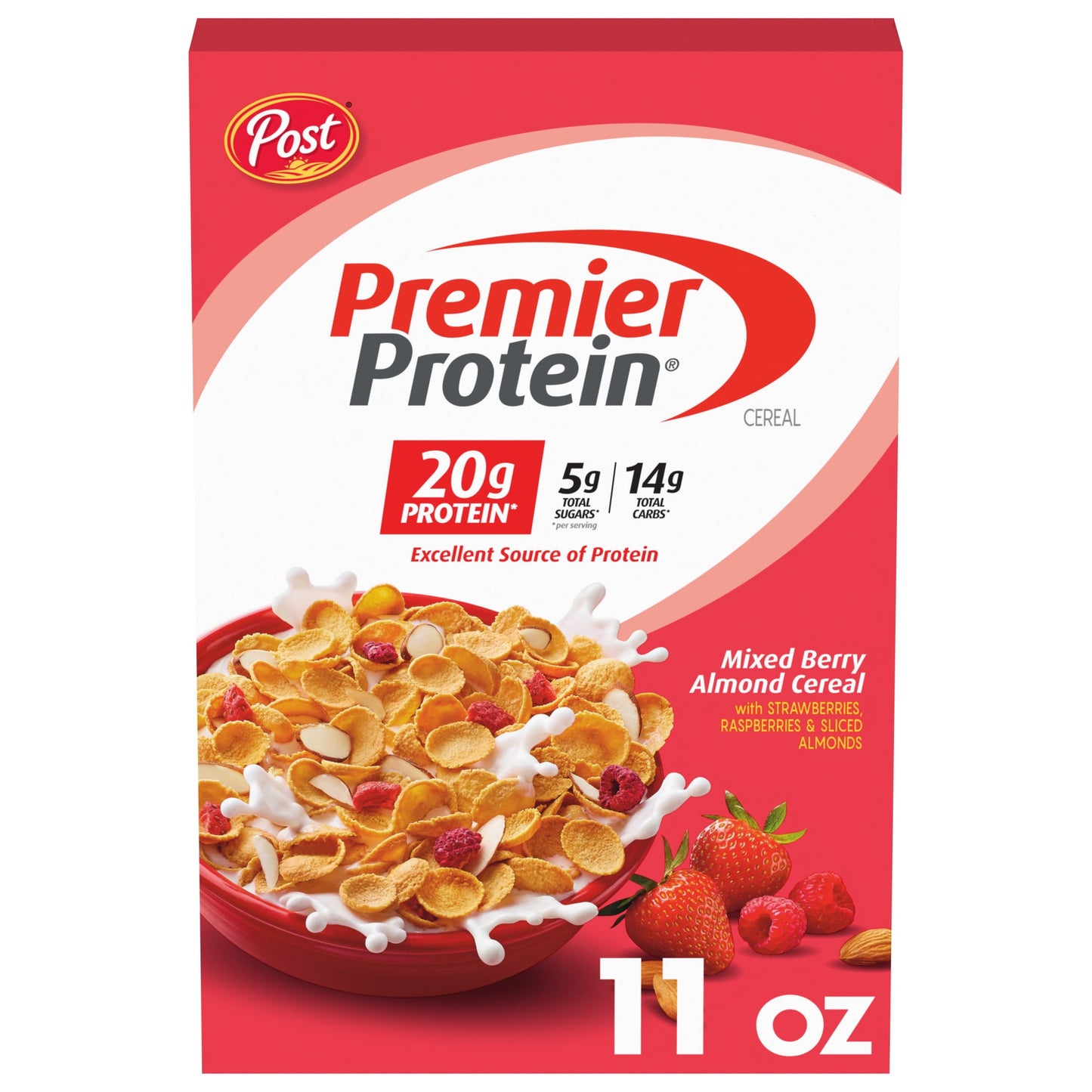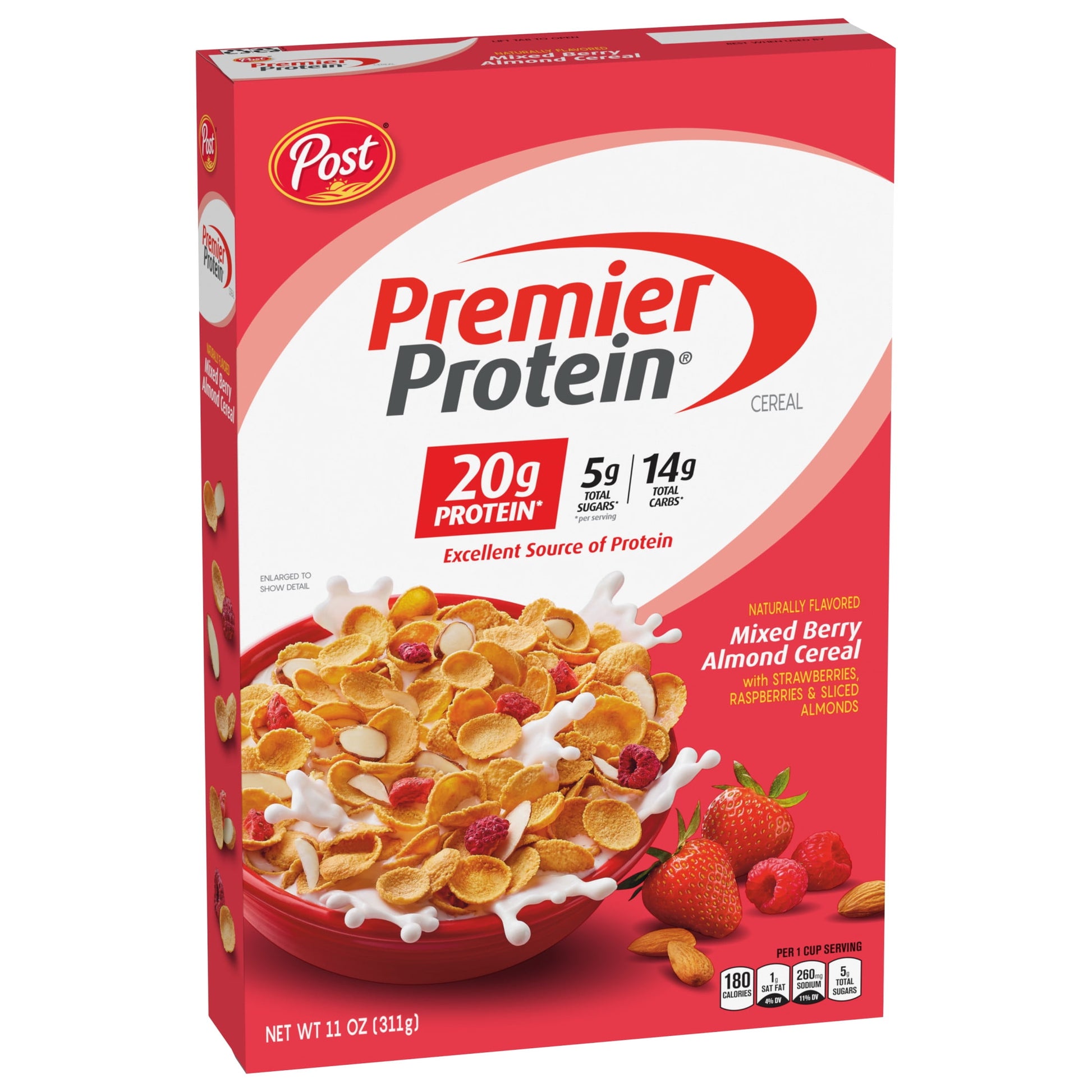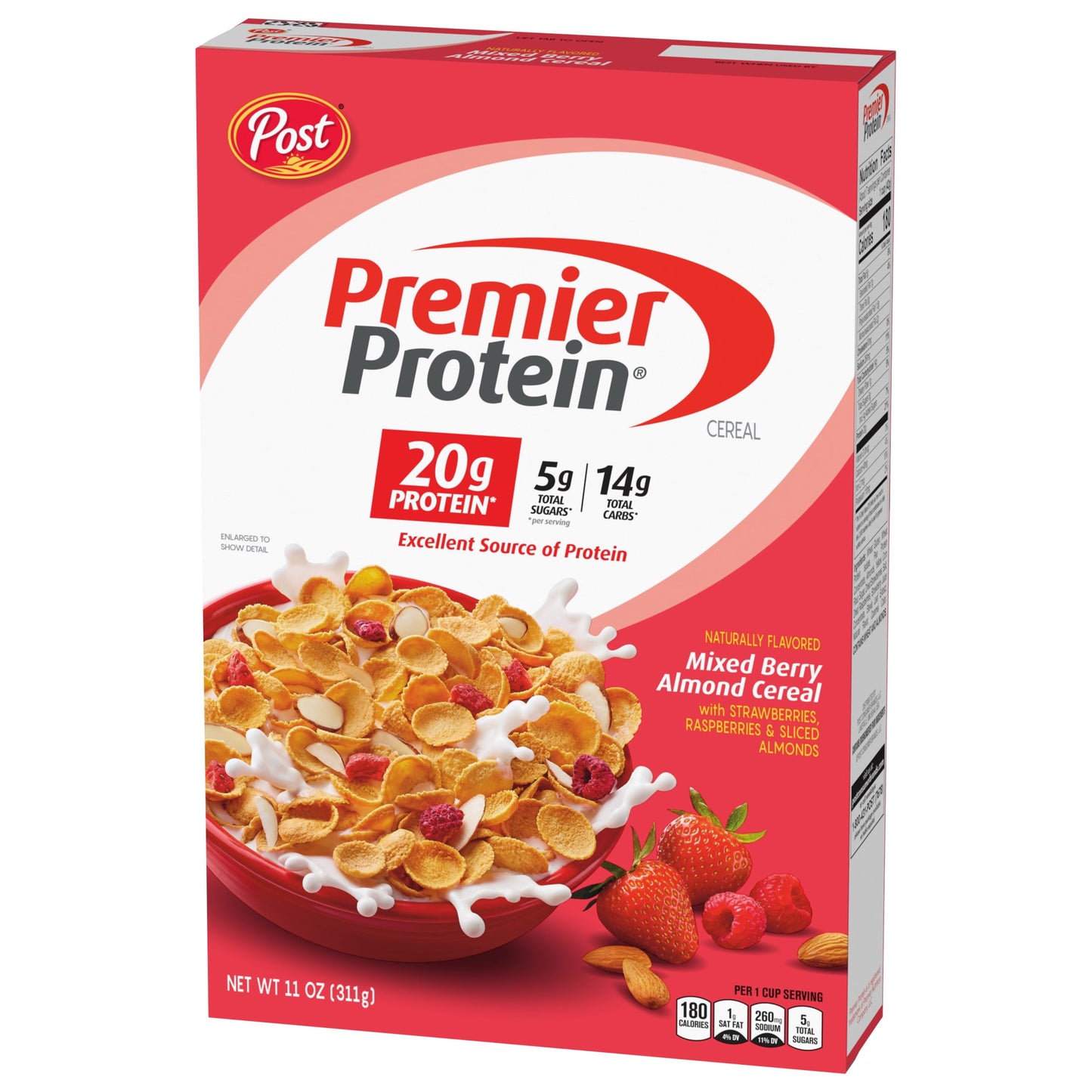 - Start your morning strong with Post Premier Protein Mixed Berry Almond Cereal