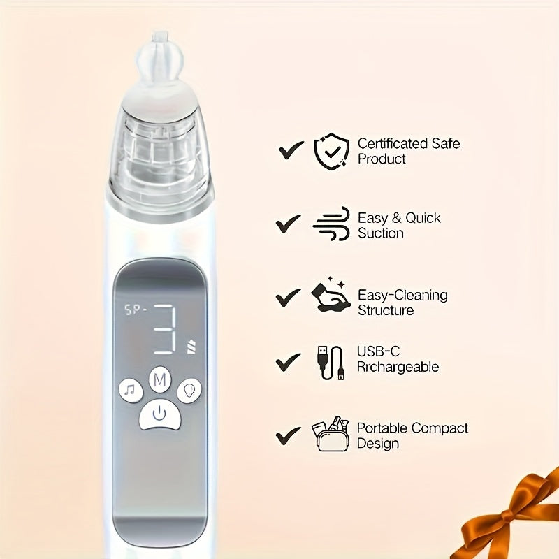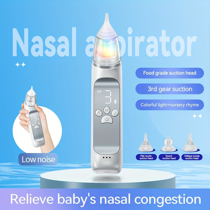 [Pre-sale]Baby Nasal Aspirator - Electric Nasal Aspirator with 3 Silicone Tips, 3-Level Adjustable Suction, Music & Light Features, USB Rechargeable Lithium Battery, 700mAh Capacity, Plastic Material - Nose Cleaner for Quick Mucus Removal