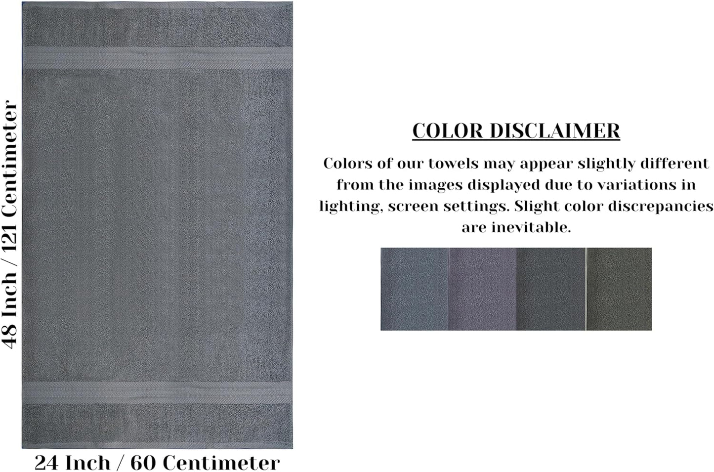 ๐ฆ๐ฒ๐ ๐ผ๐ณ ๏ผ: Cotton towels Set of 6 pcs in Charcoal Grey Color measuring 24 x 48 Inch, with double stitched hems, thick and plush terry makes our bath towel ultra-soft.