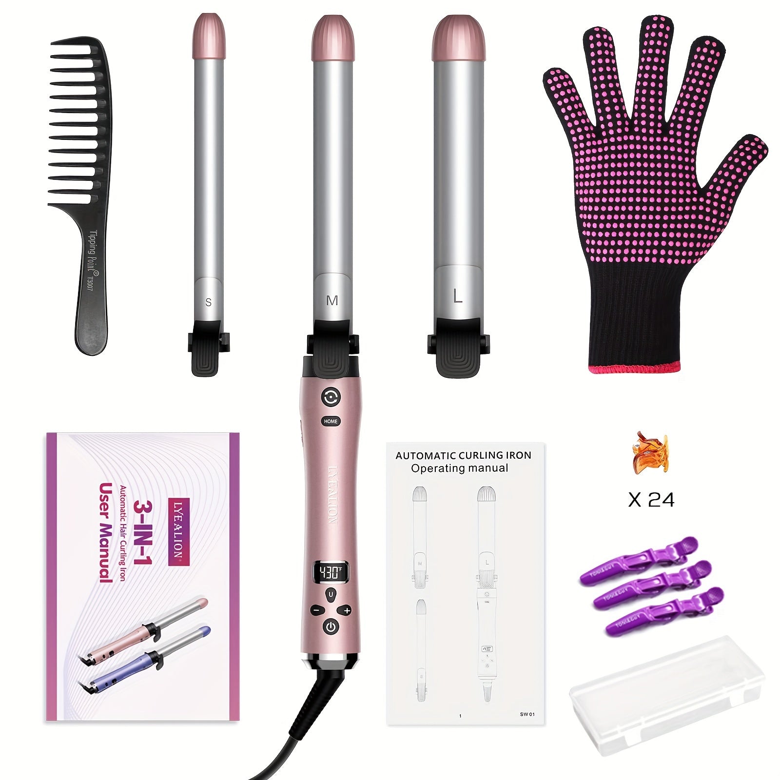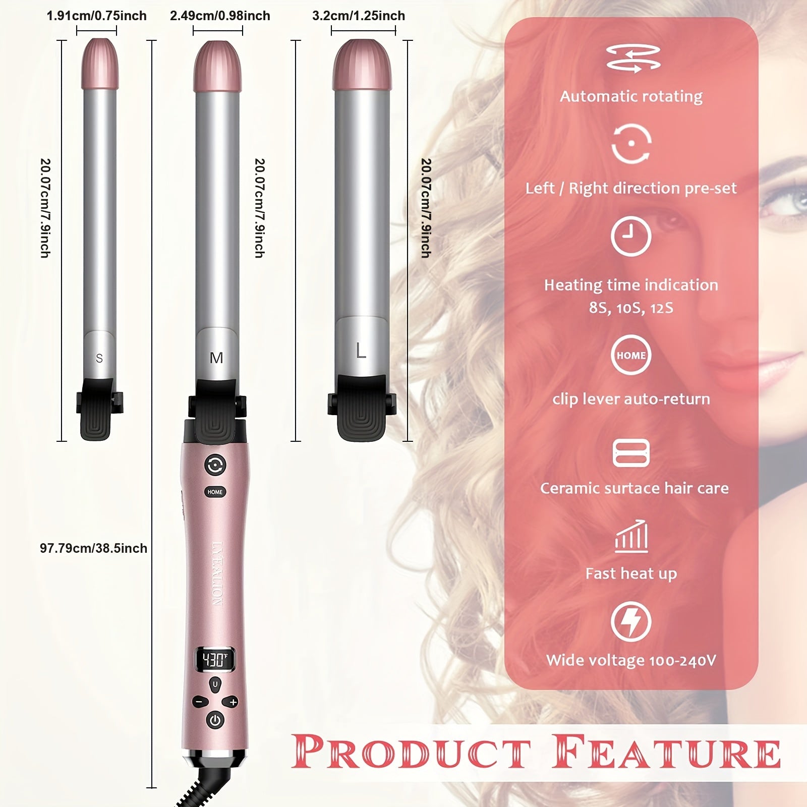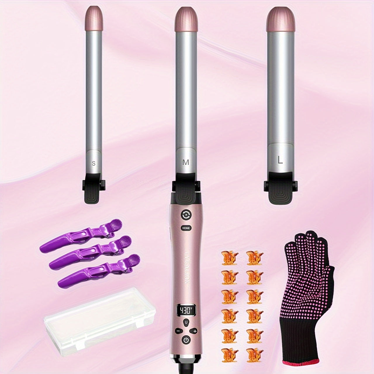 Professional Rotating Curling Iron with 3 Interchangeable Barrels (3/4", 1", 1 1/4") – Fast Heat-Up, Ceramic Coated for Smooth Curls, Includes Hair Clips & Anti-Heat Gloves, Ideal for All Hair Types