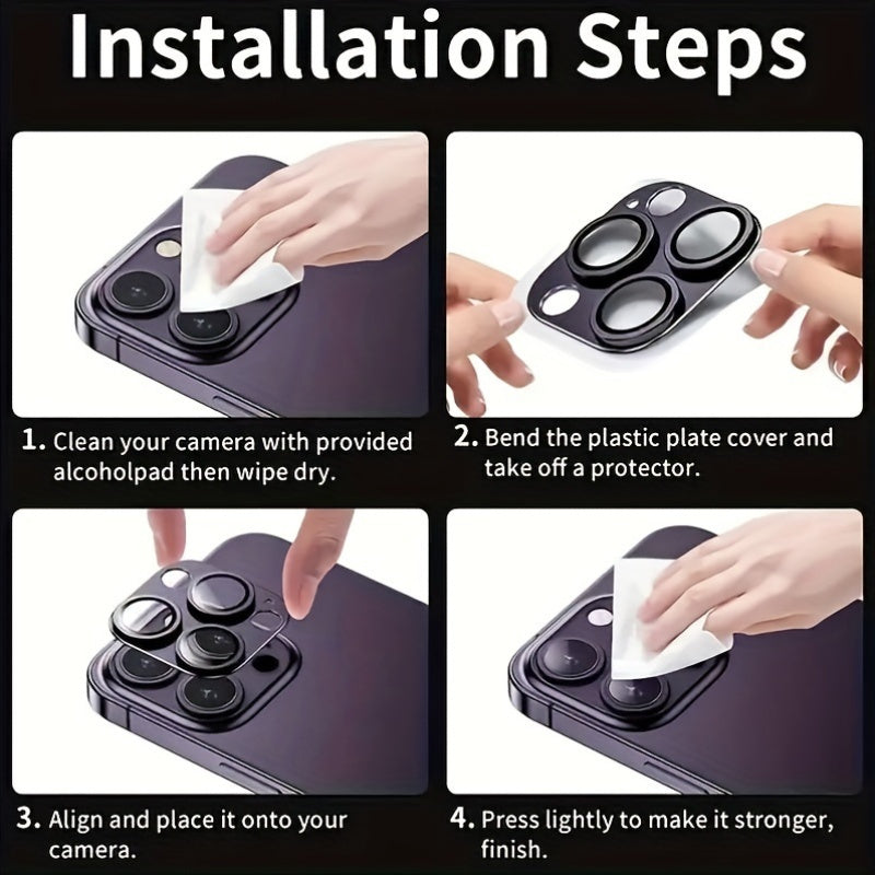 Protège-objectif de caméra en alliage d'aluminium avec verre HD et micro-tape 3M, film protecteur métallique mat facile à installer pour iPhone 15 14 13 12 11 Pro Max - Couverture complète, anti-reflet, résistant aux rayures
