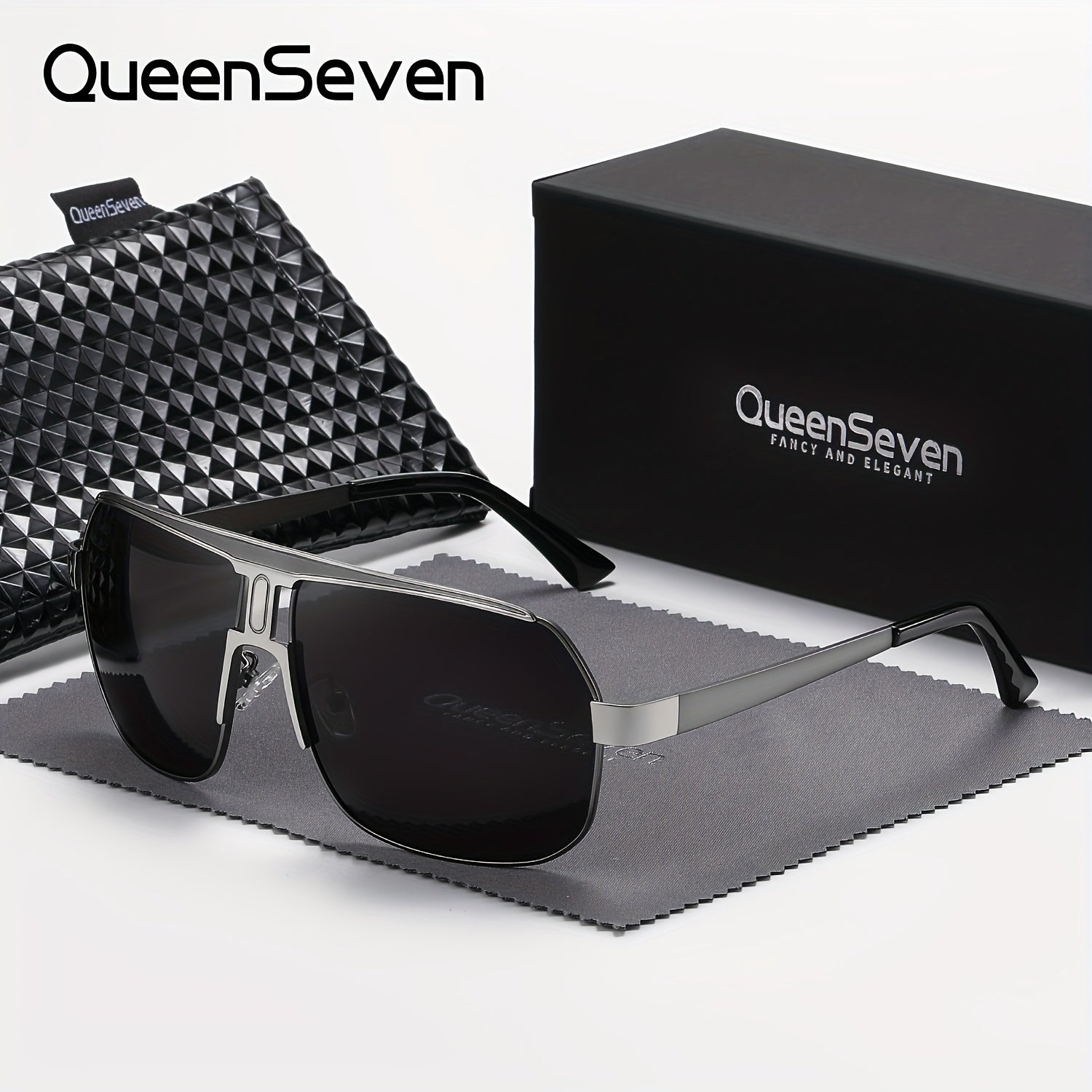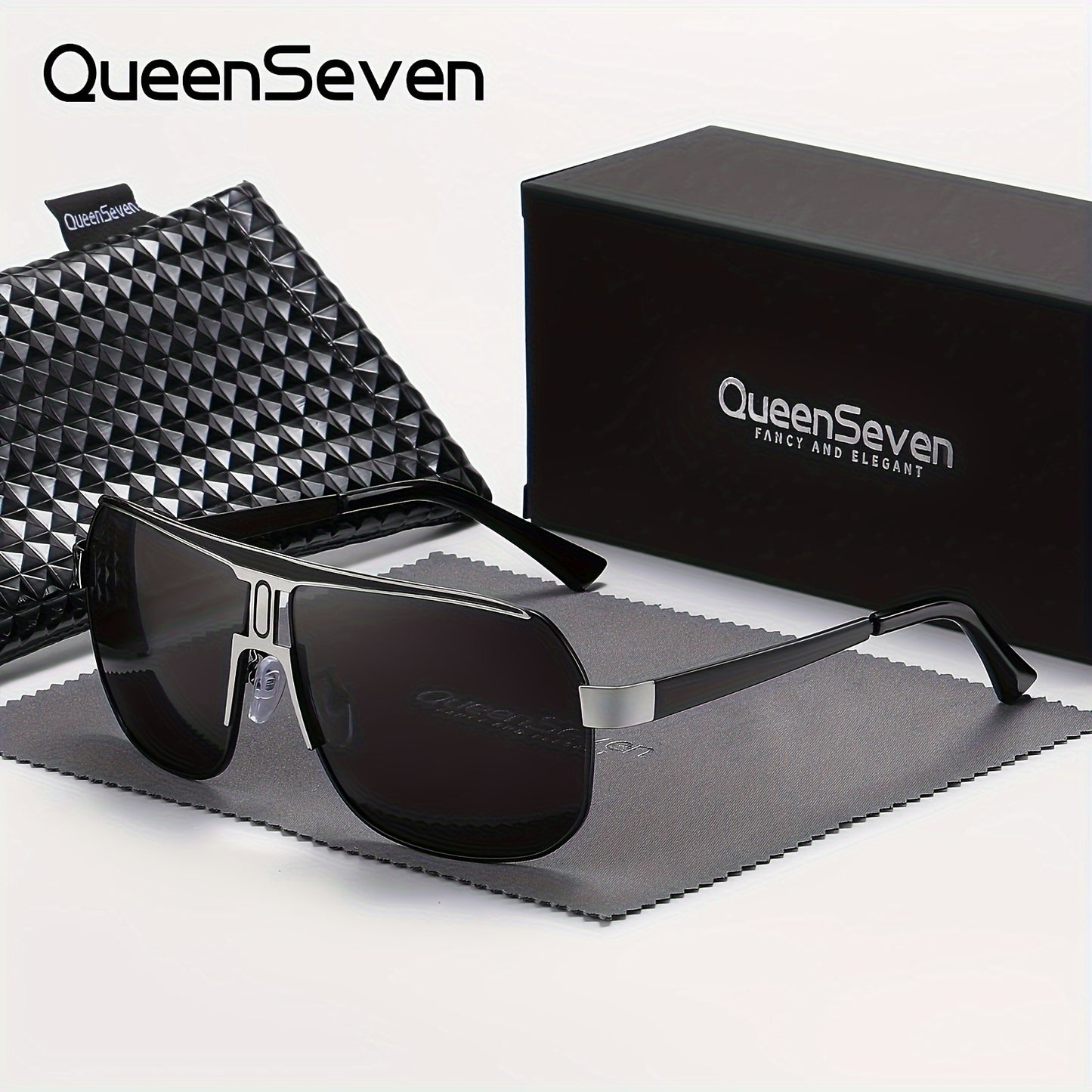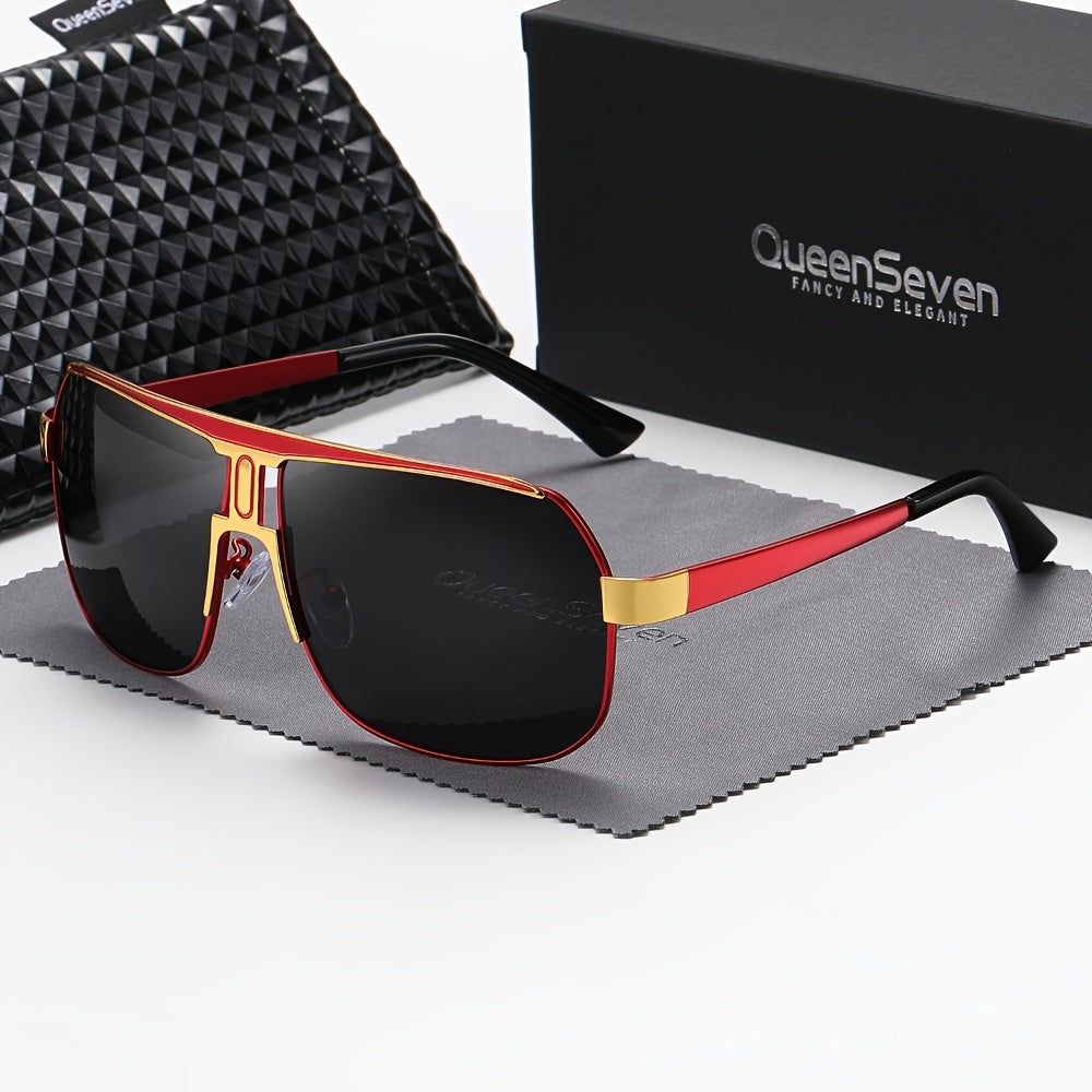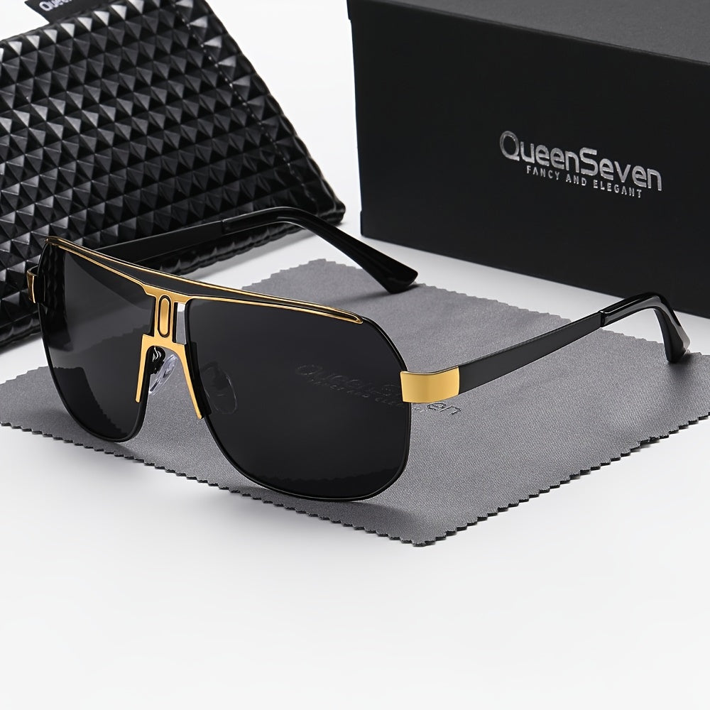 QueenSeven Unisex Polarized Alloy Square Oversized Frame Sunglasses Driving Sunglasses Shades